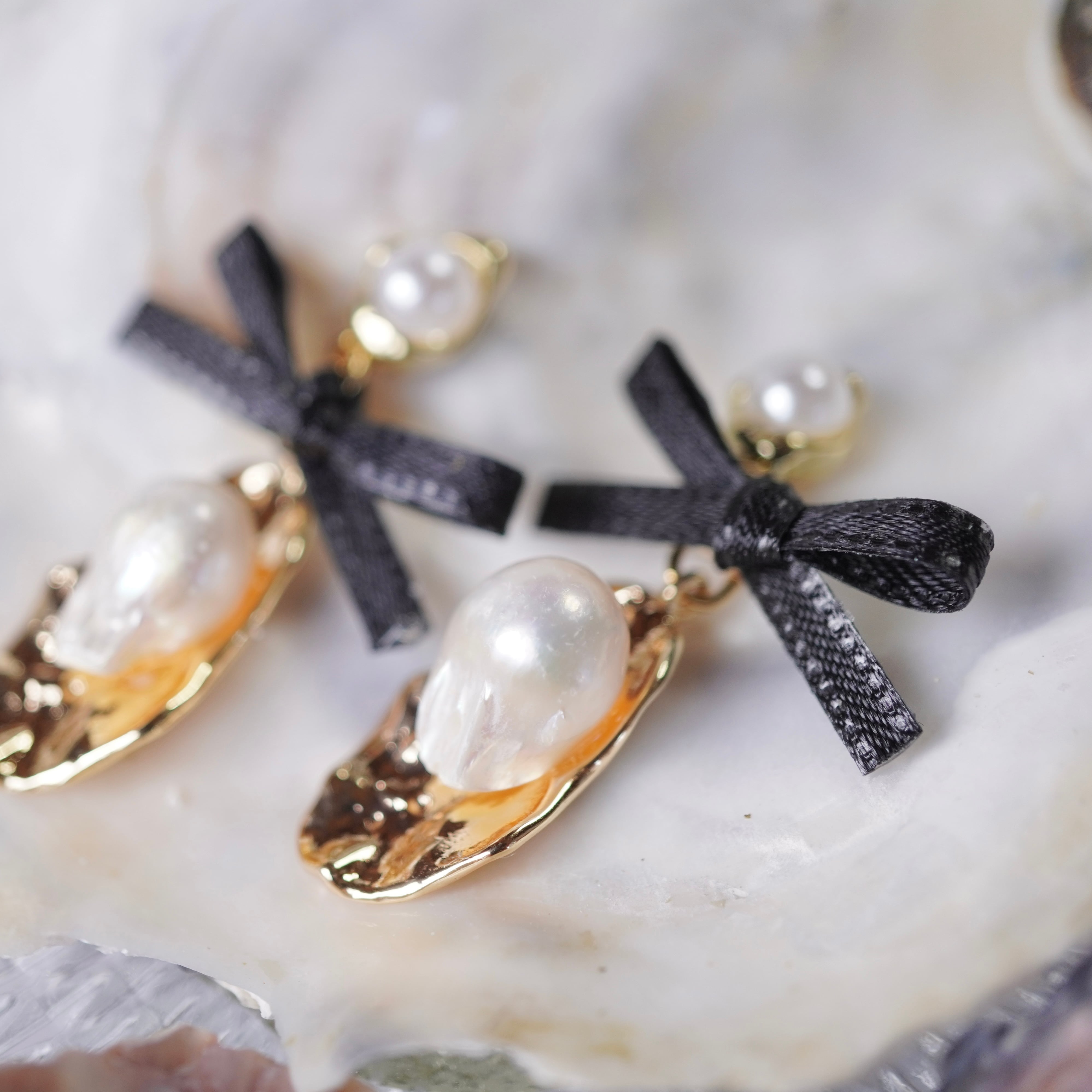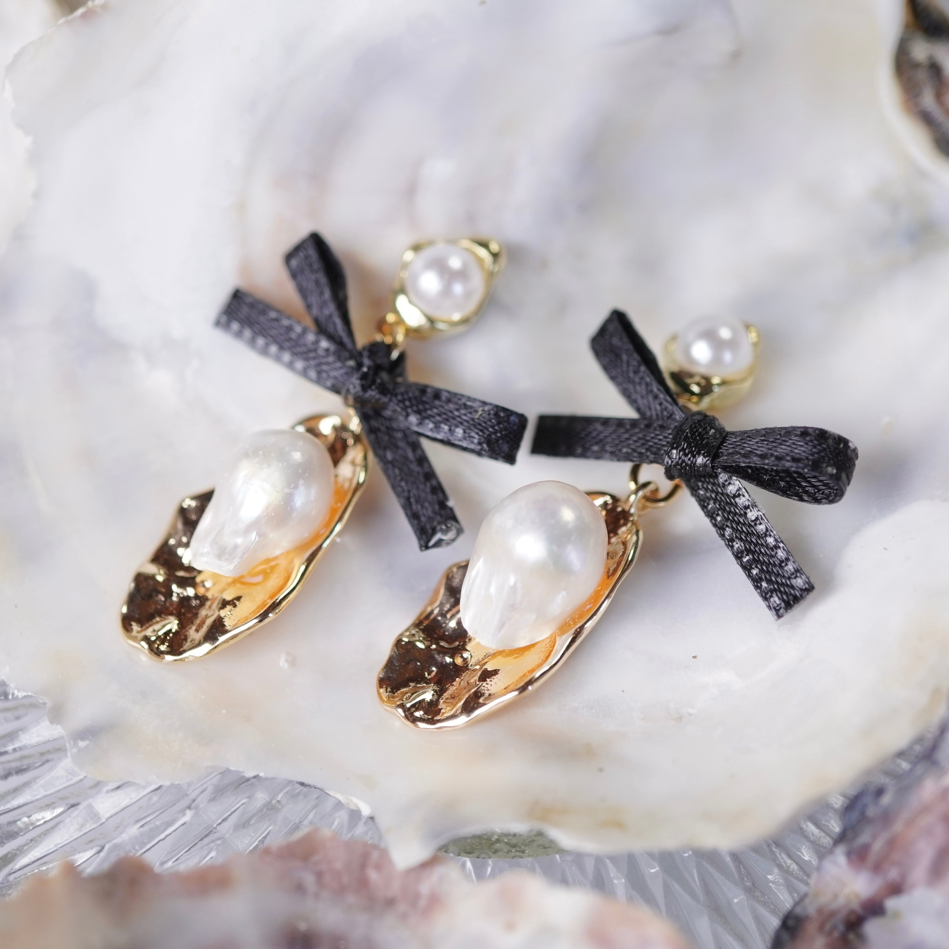 生牡蠣をイメージして制作した淡水パールのピアス/イヤリングです
