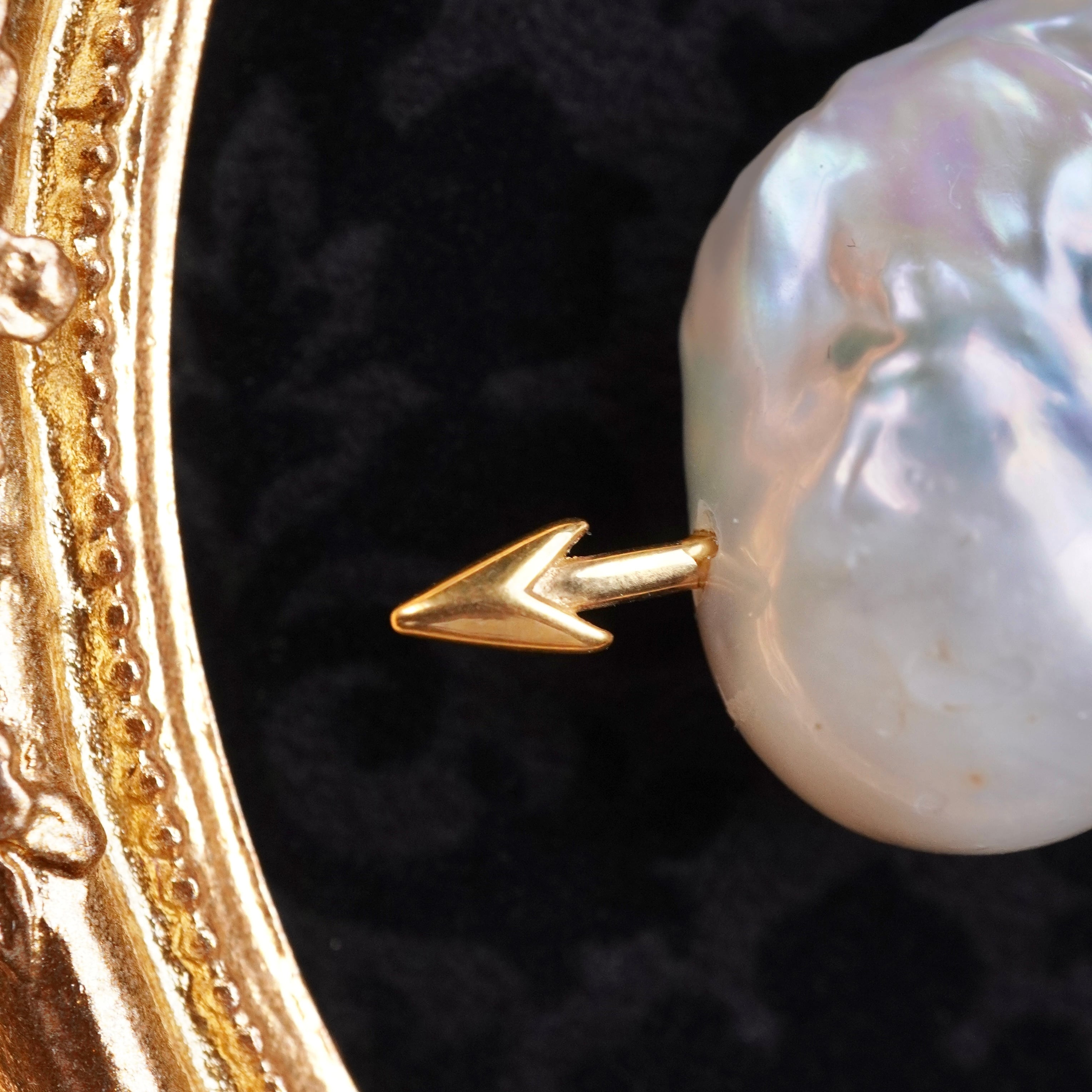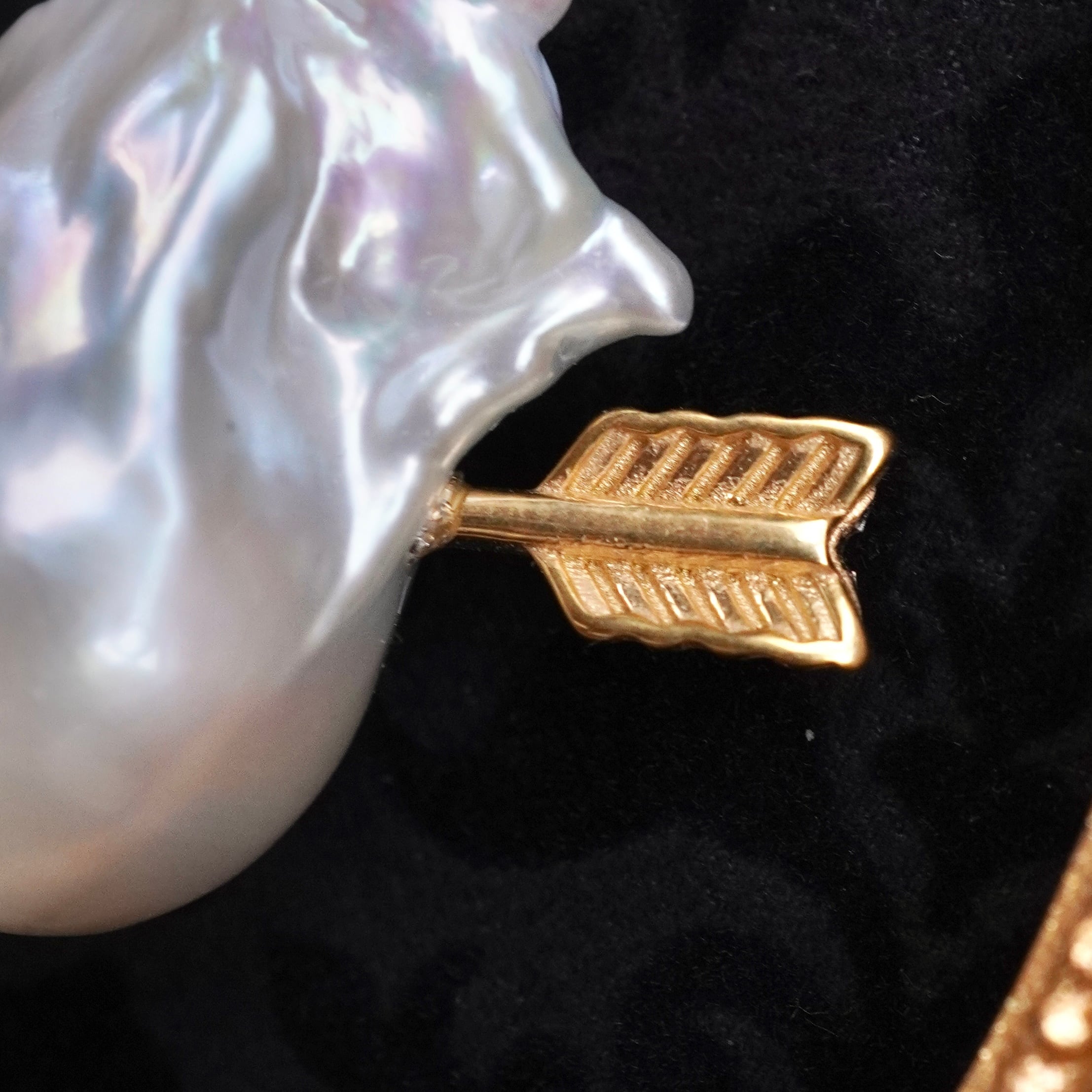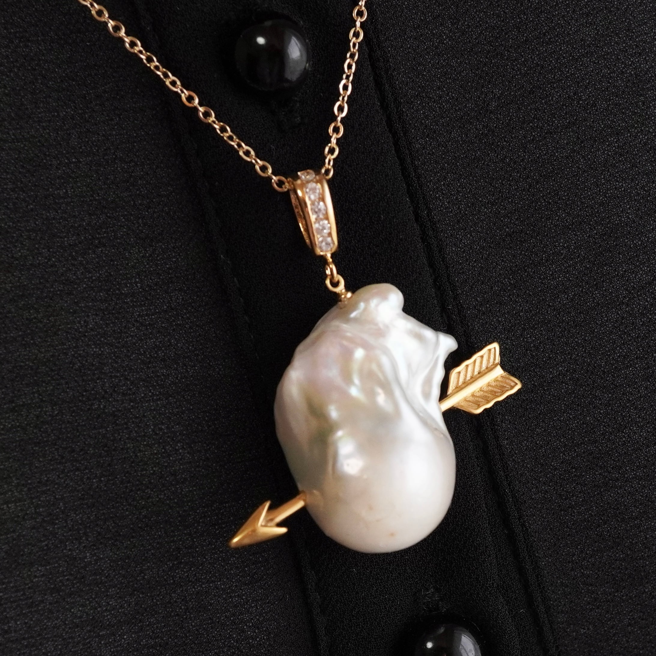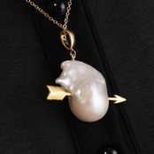バロックパールを心臓に見立てて、キューピットの矢を刺したネックレスです。