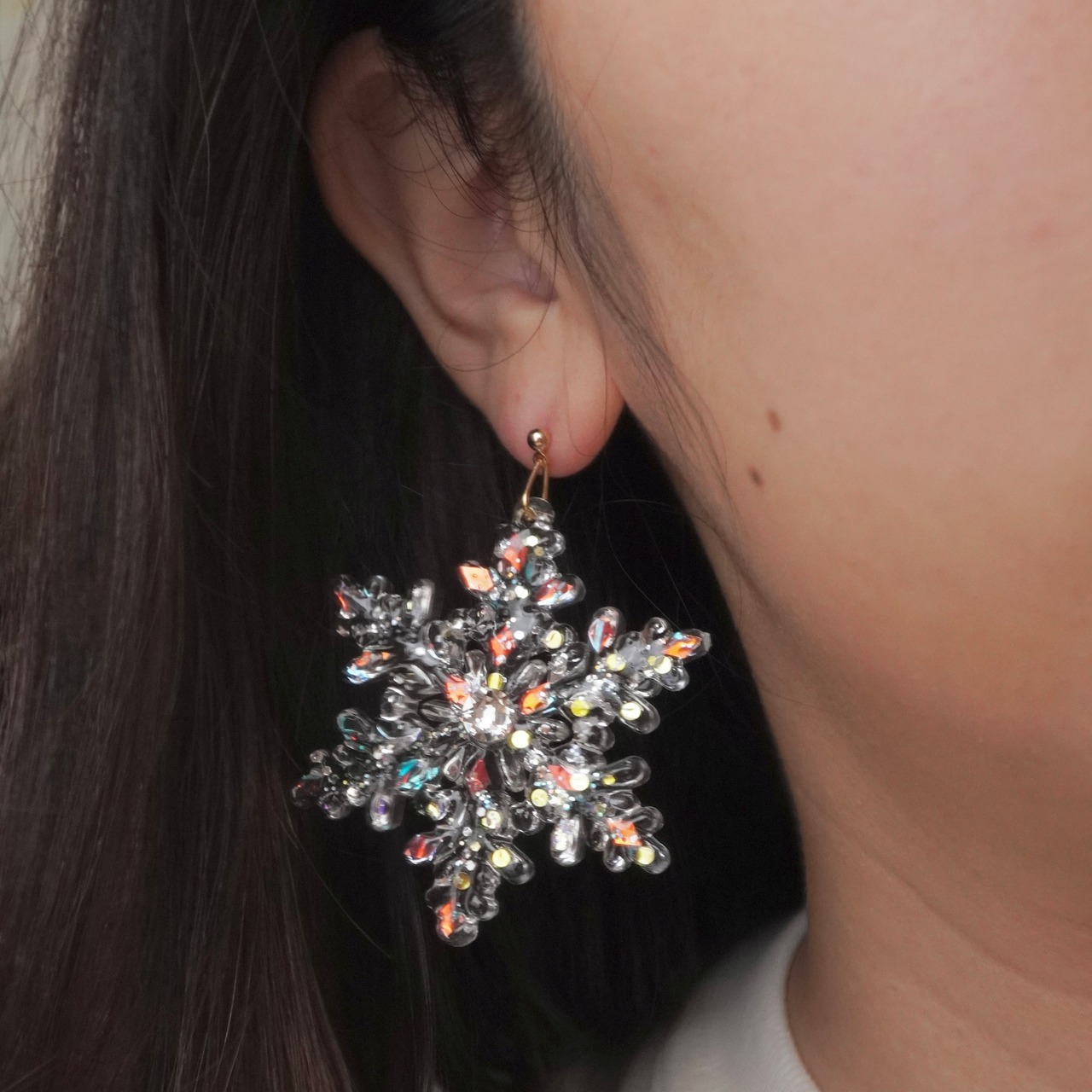 大きな雪の結晶の存在感抜群のピアス/イヤリングです!