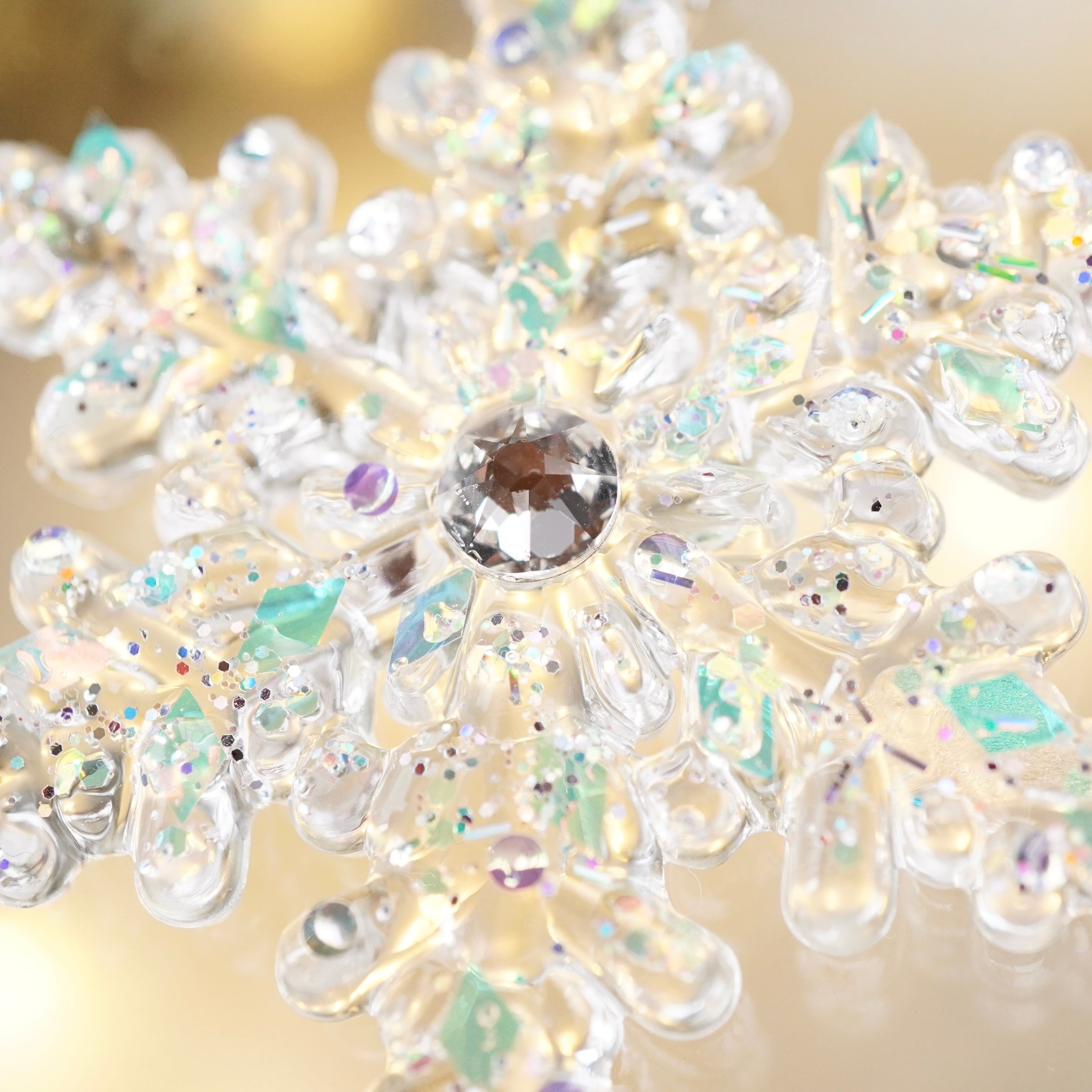 雪の結晶の表面には様々な形のラメをあしらい、キラキラに仕上げました