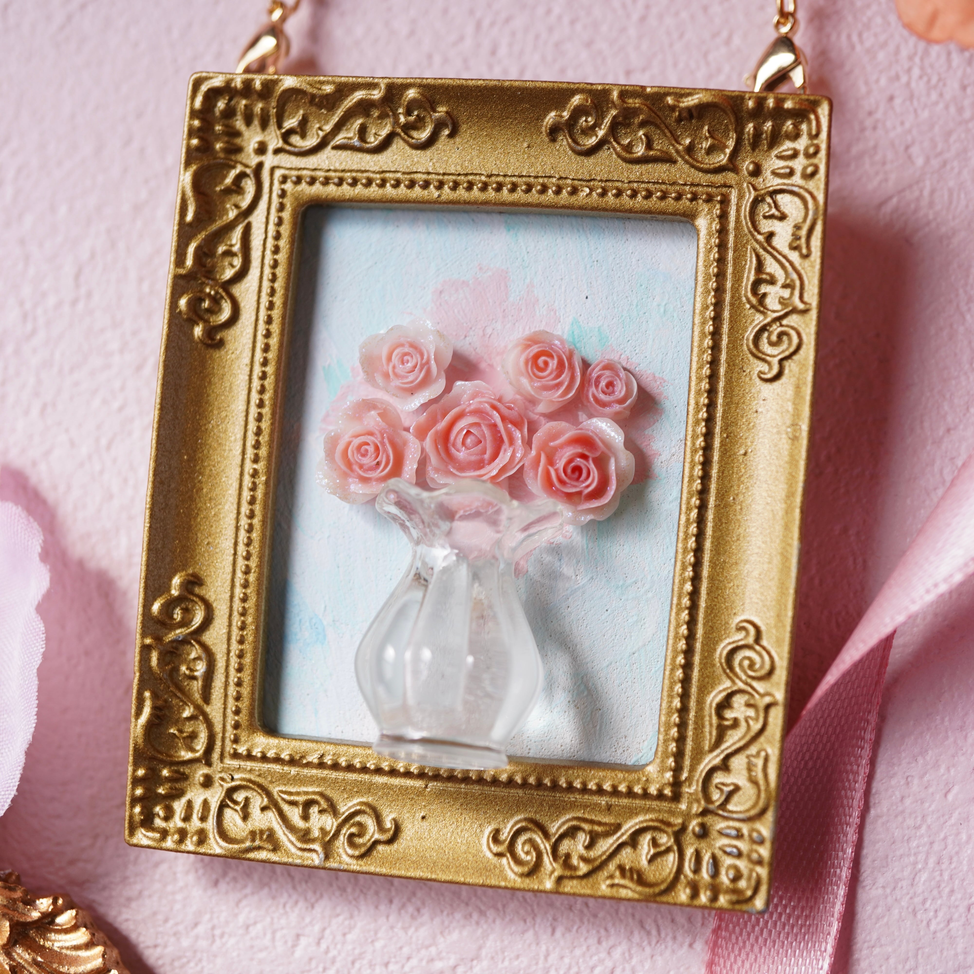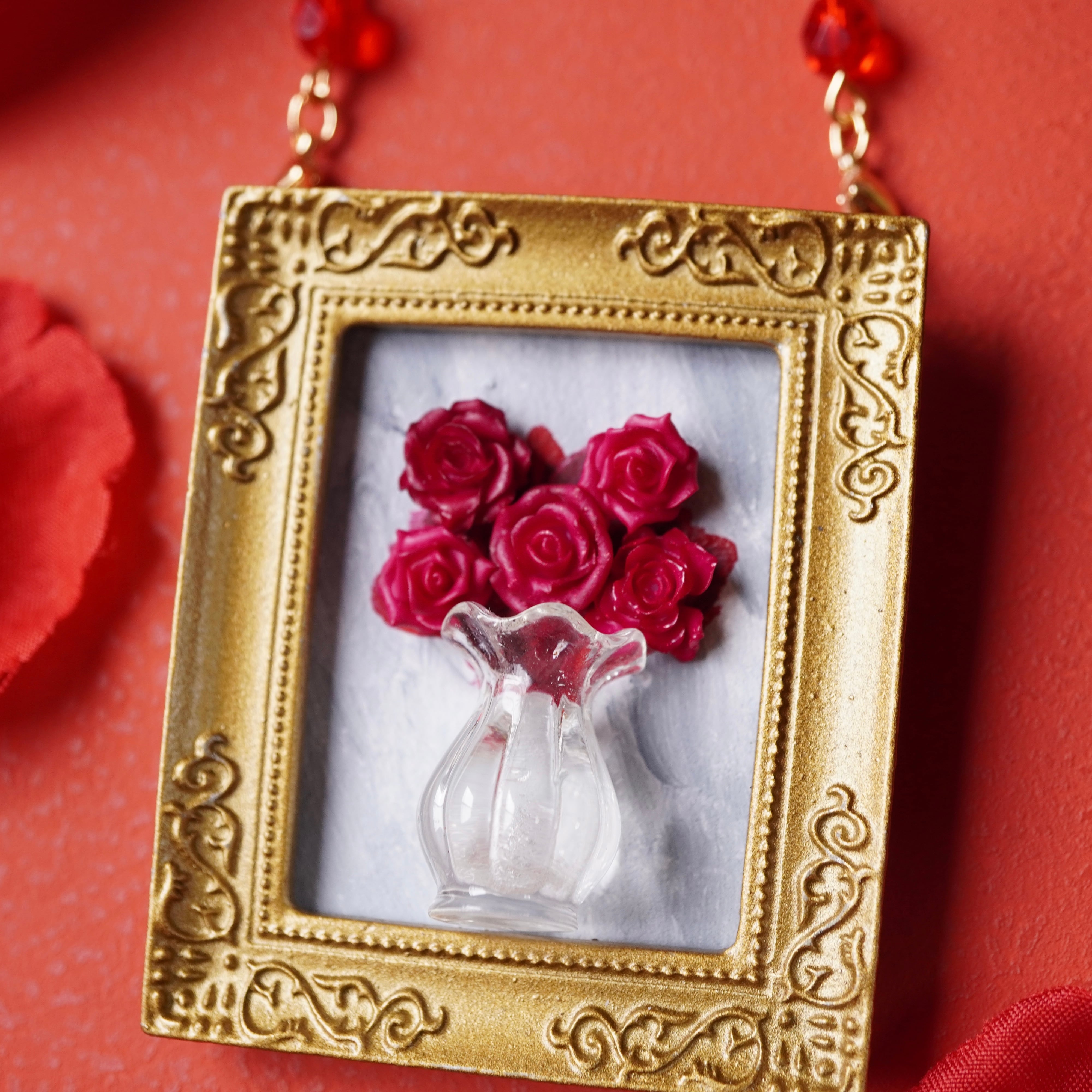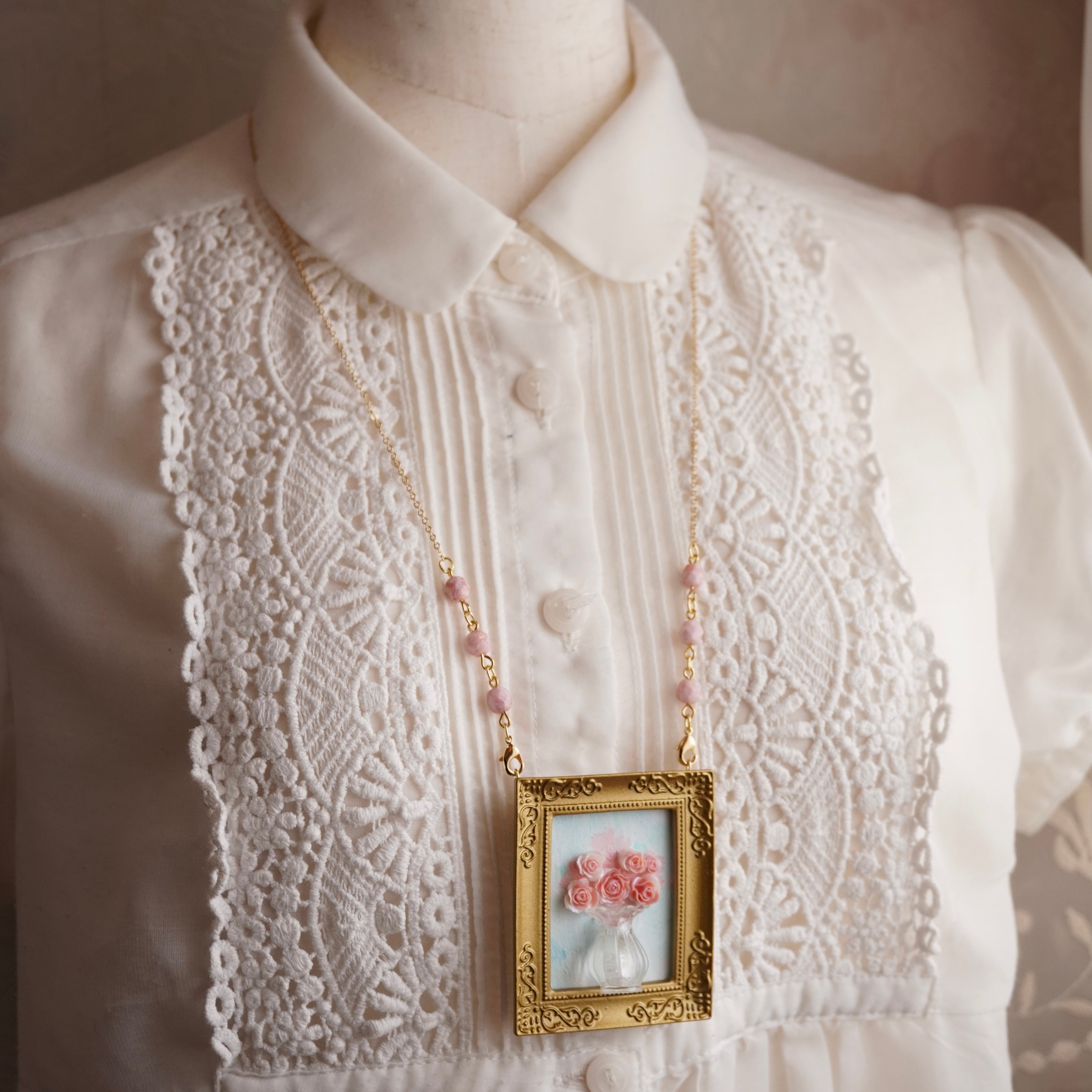 GLM限定 薔薇の絵画ネックレス/ブローチ