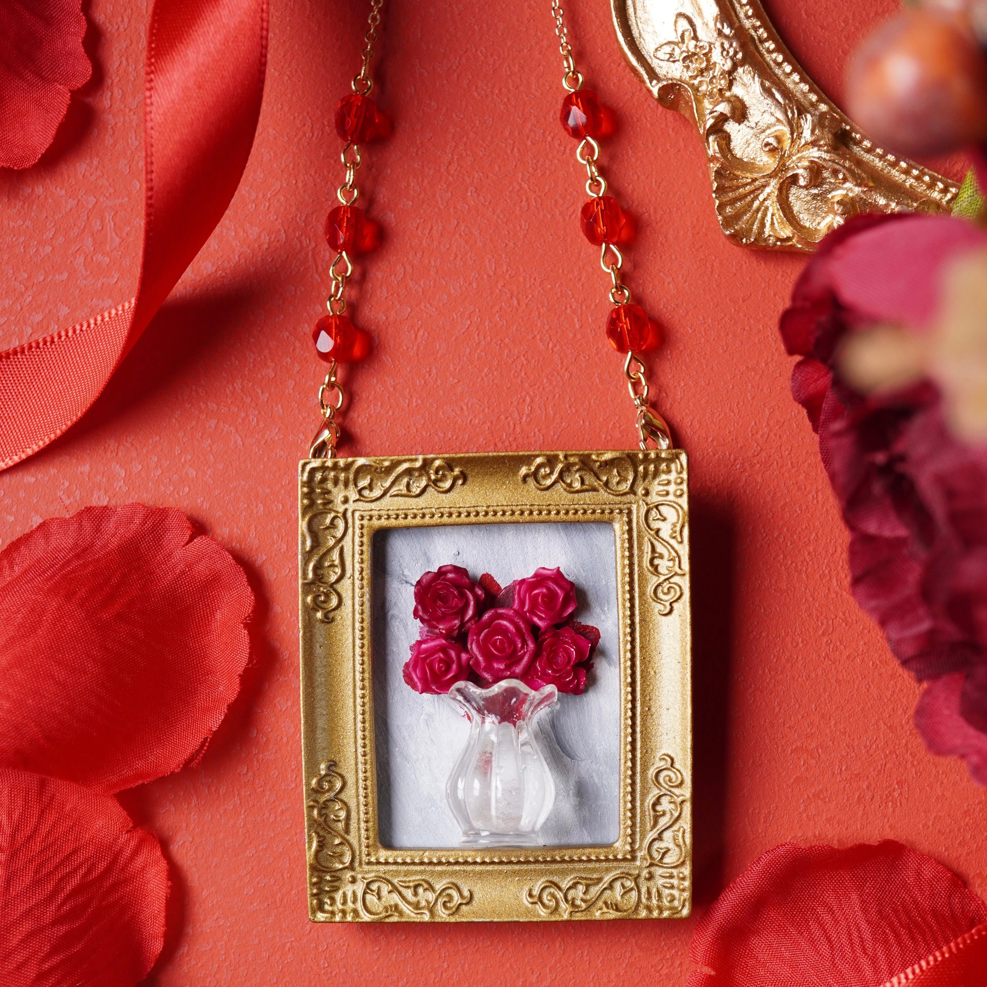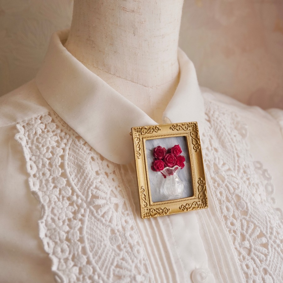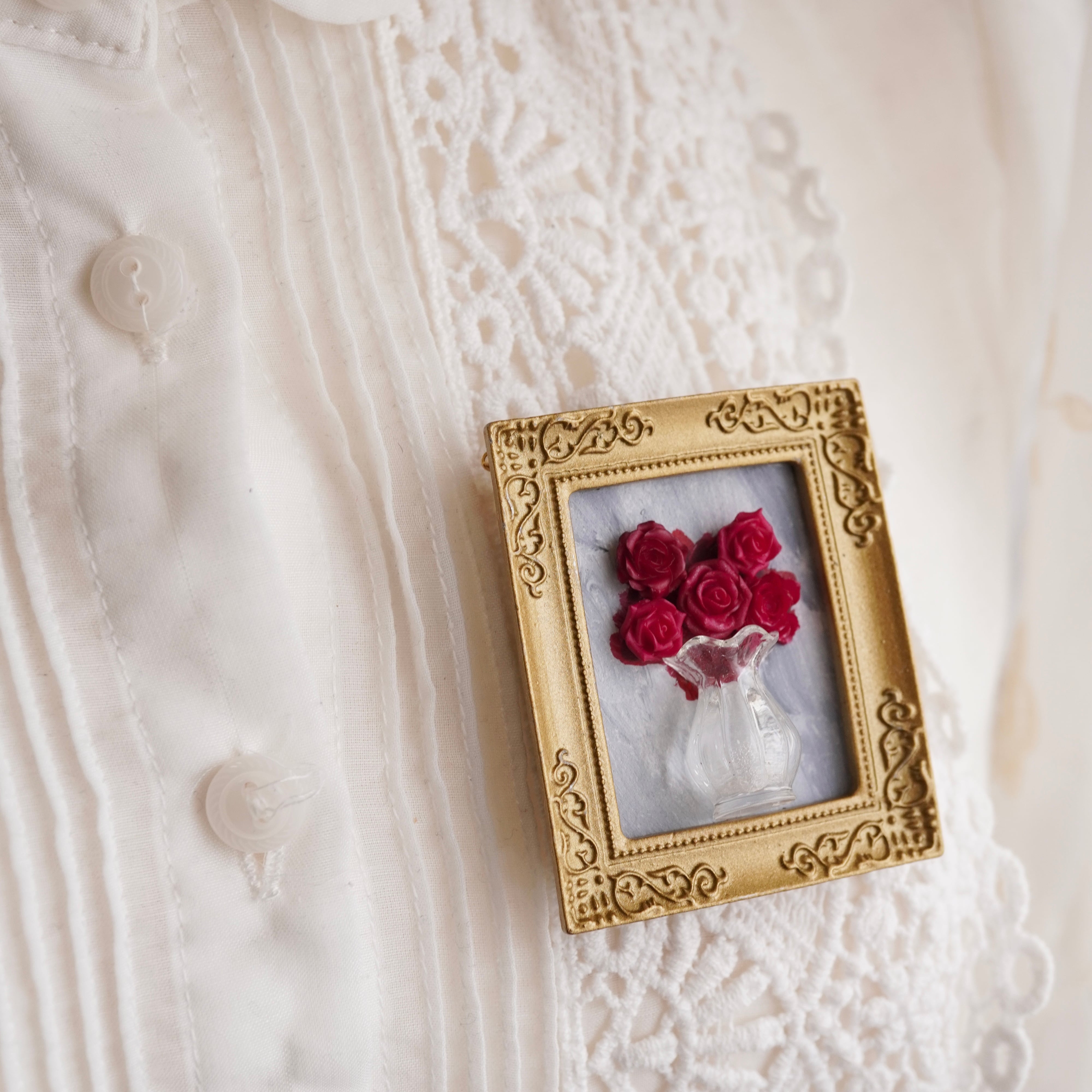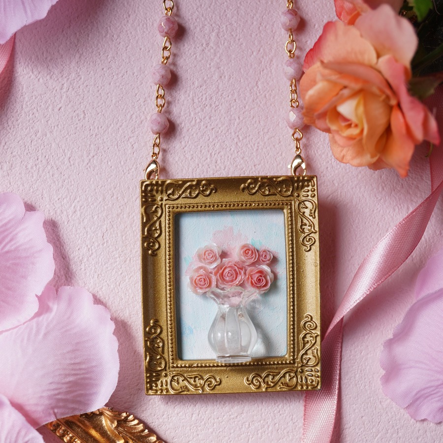 GLM限定 薔薇の絵画ネックレス/ブローチ