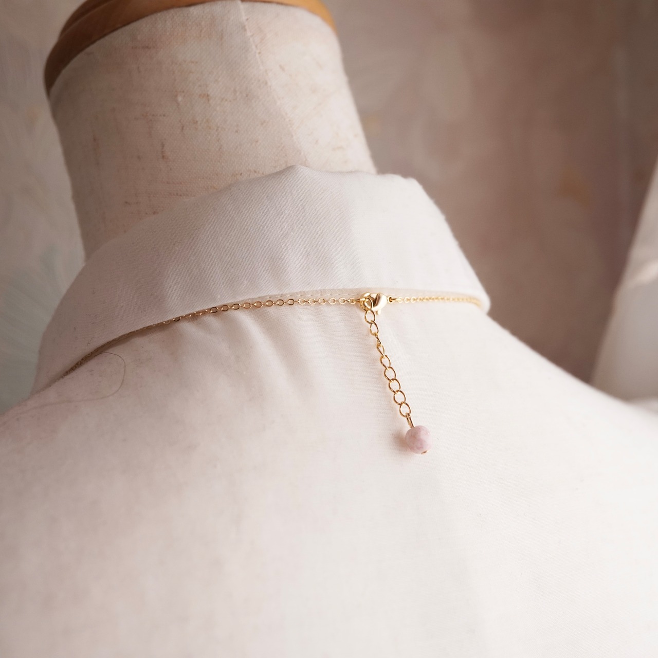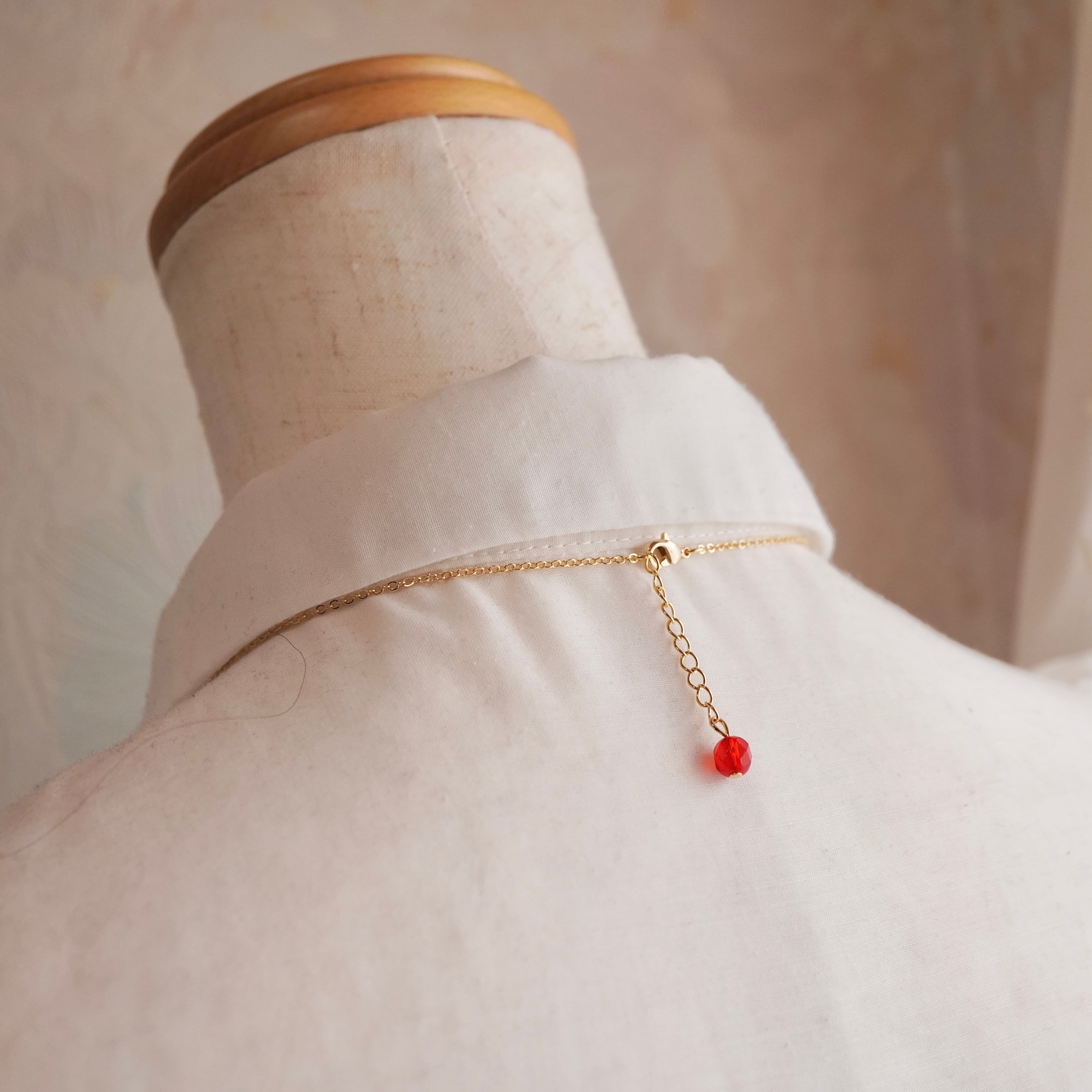 ネックレスのアジャスターの先にもビーズを一粒あしらい、後ろ姿も綺麗に仕上げました