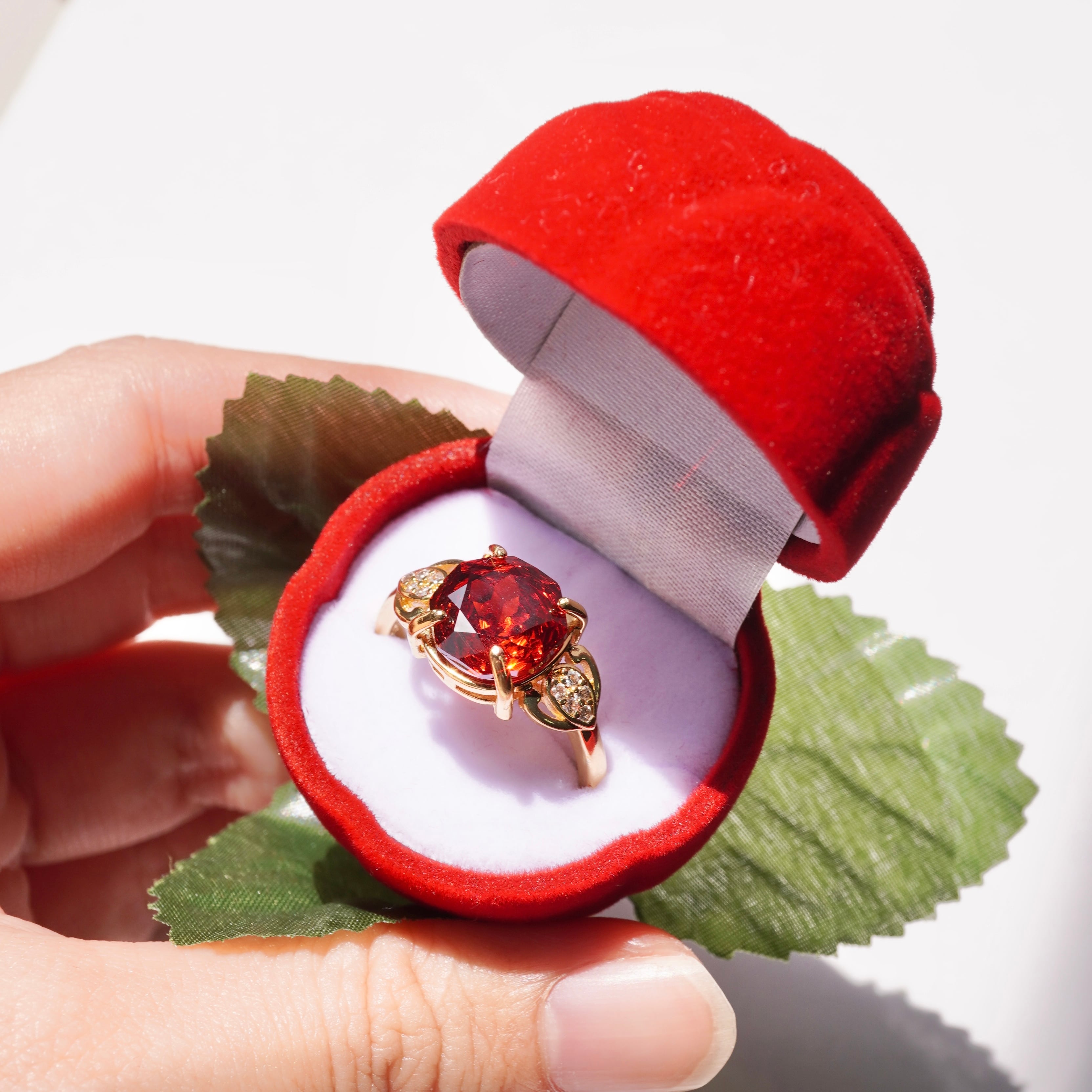 葉っぱをイメージした台座も、細かいジルコニアでキラキラ輝きます