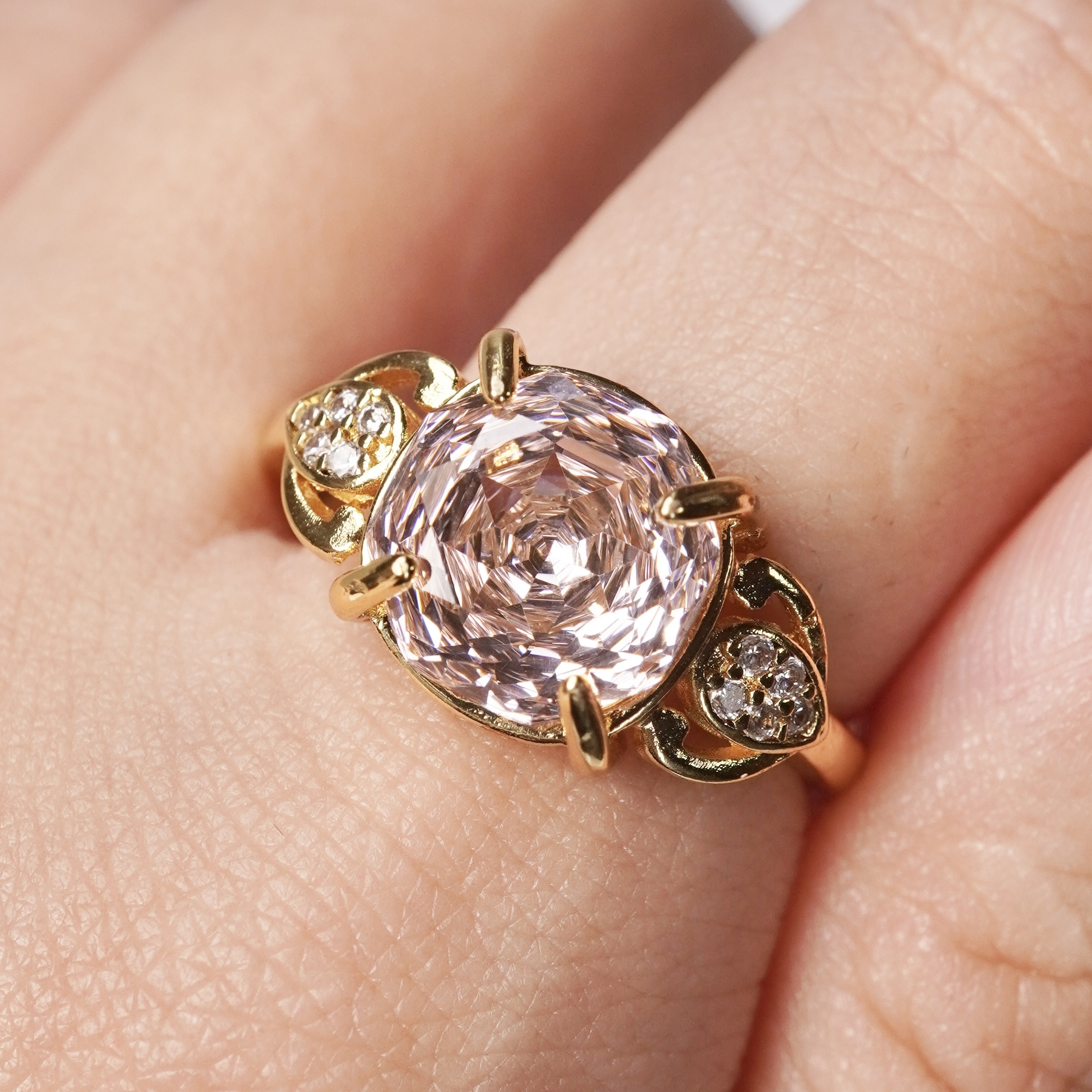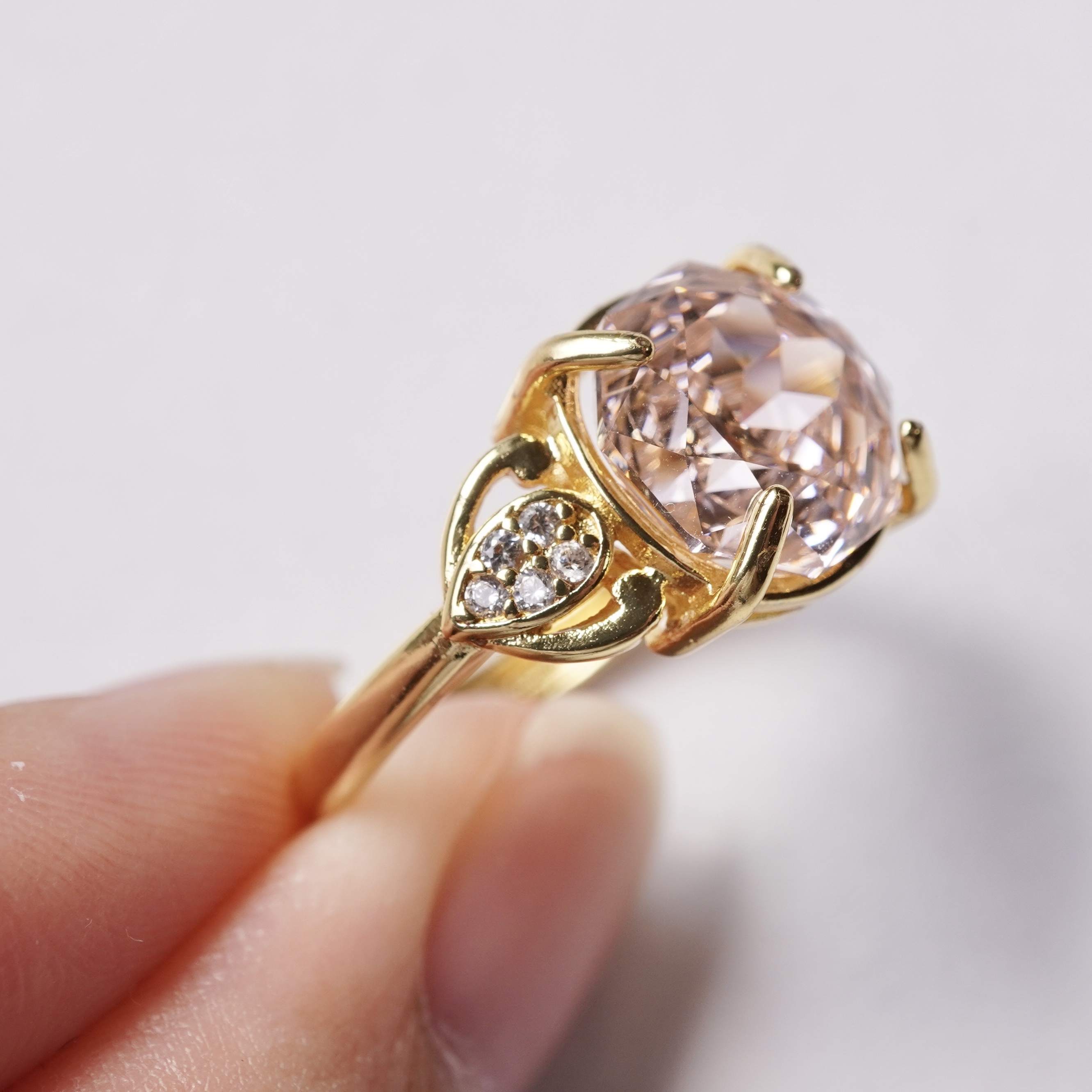 薔薇の細かなカッティングが、日が当たるたびにキラキラ輝きとても美しいです。石はジルコニアです。