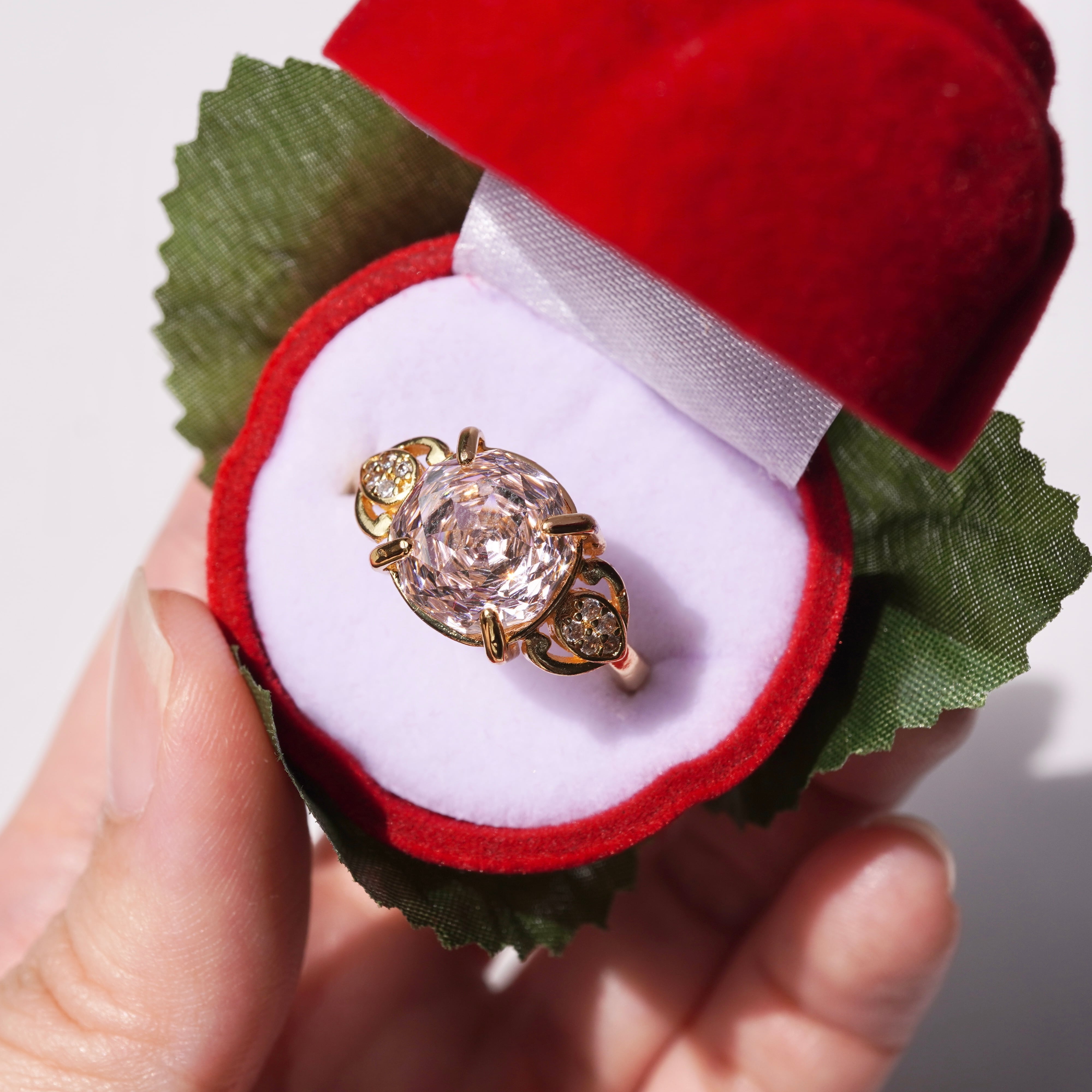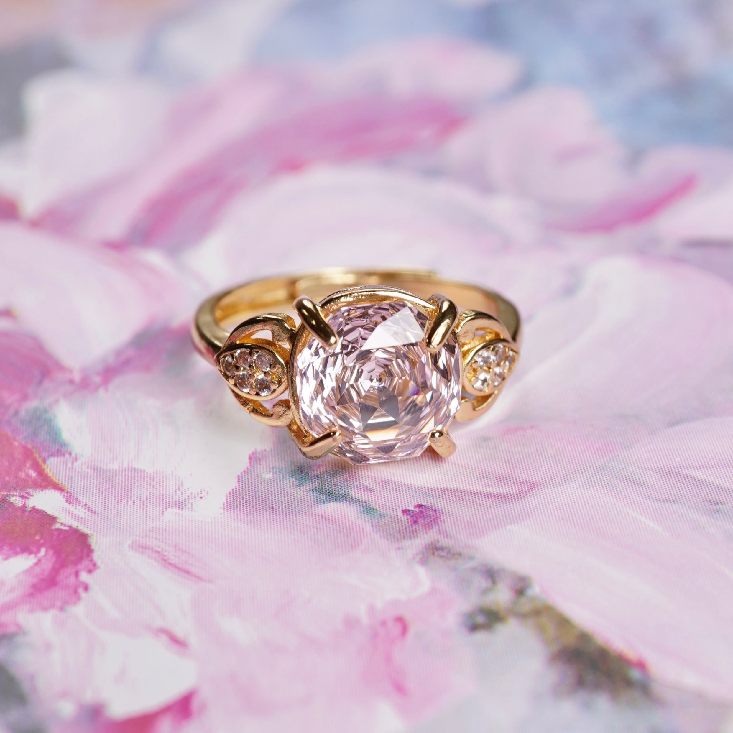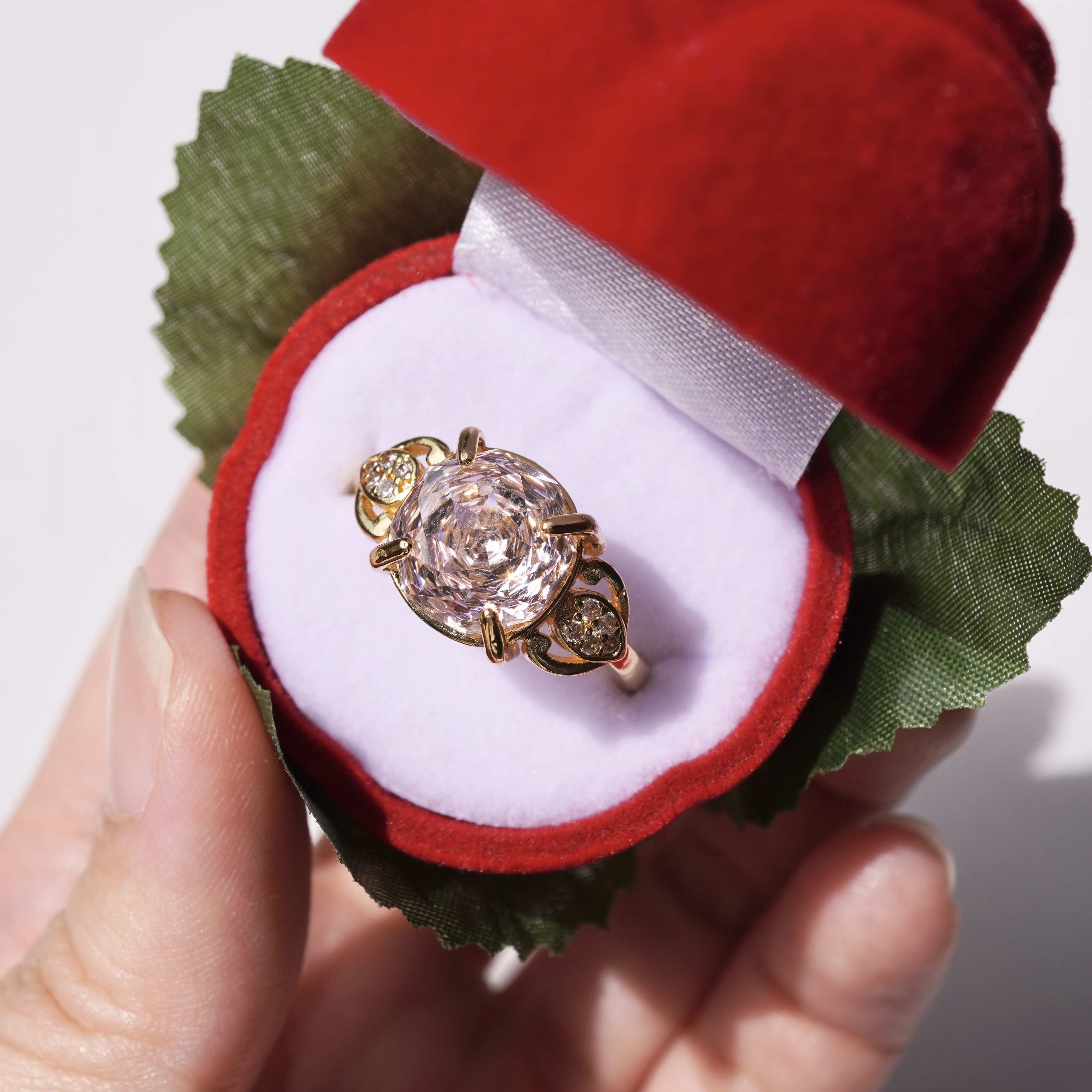 薔薇の形のカッティングが美しい石をリングに仕立てました