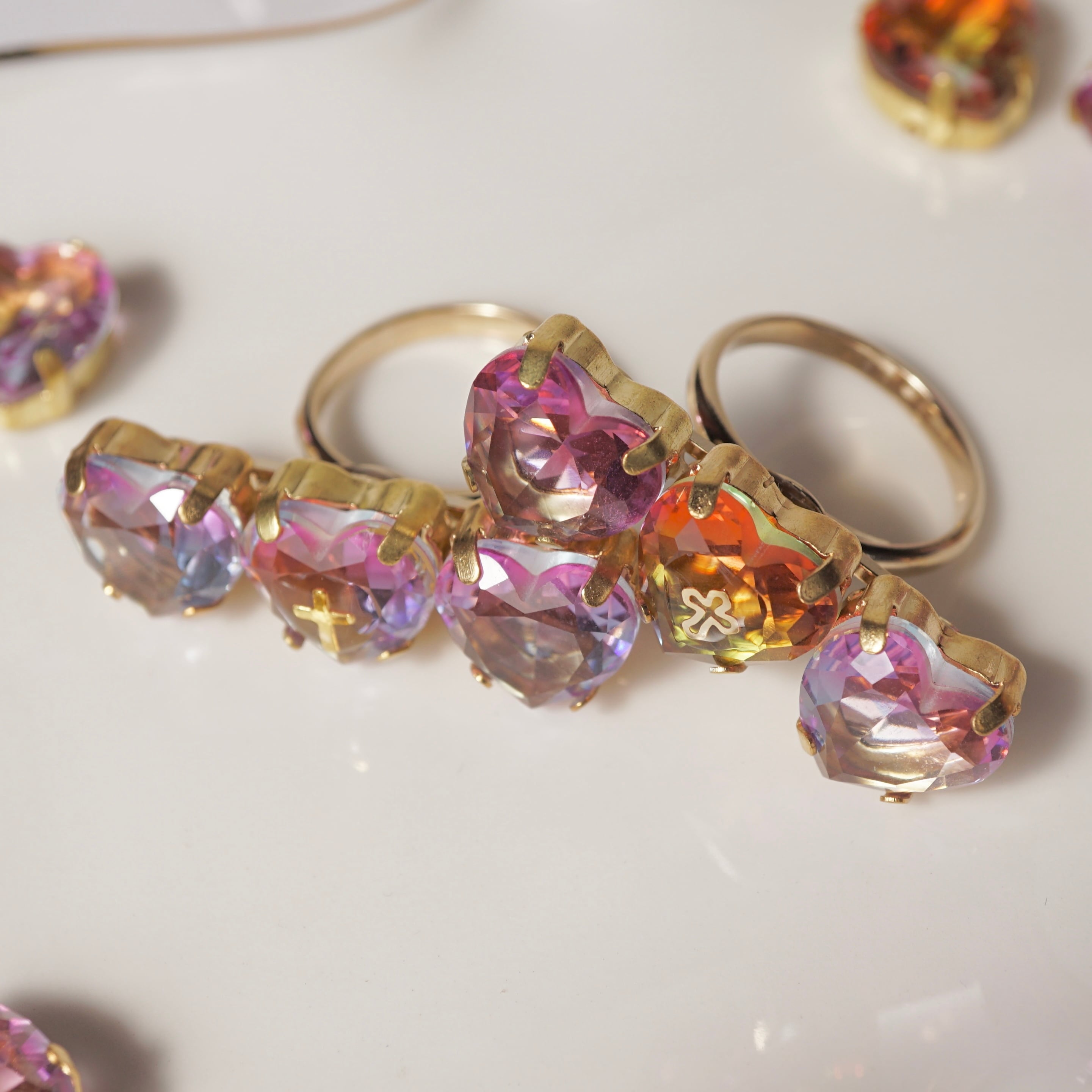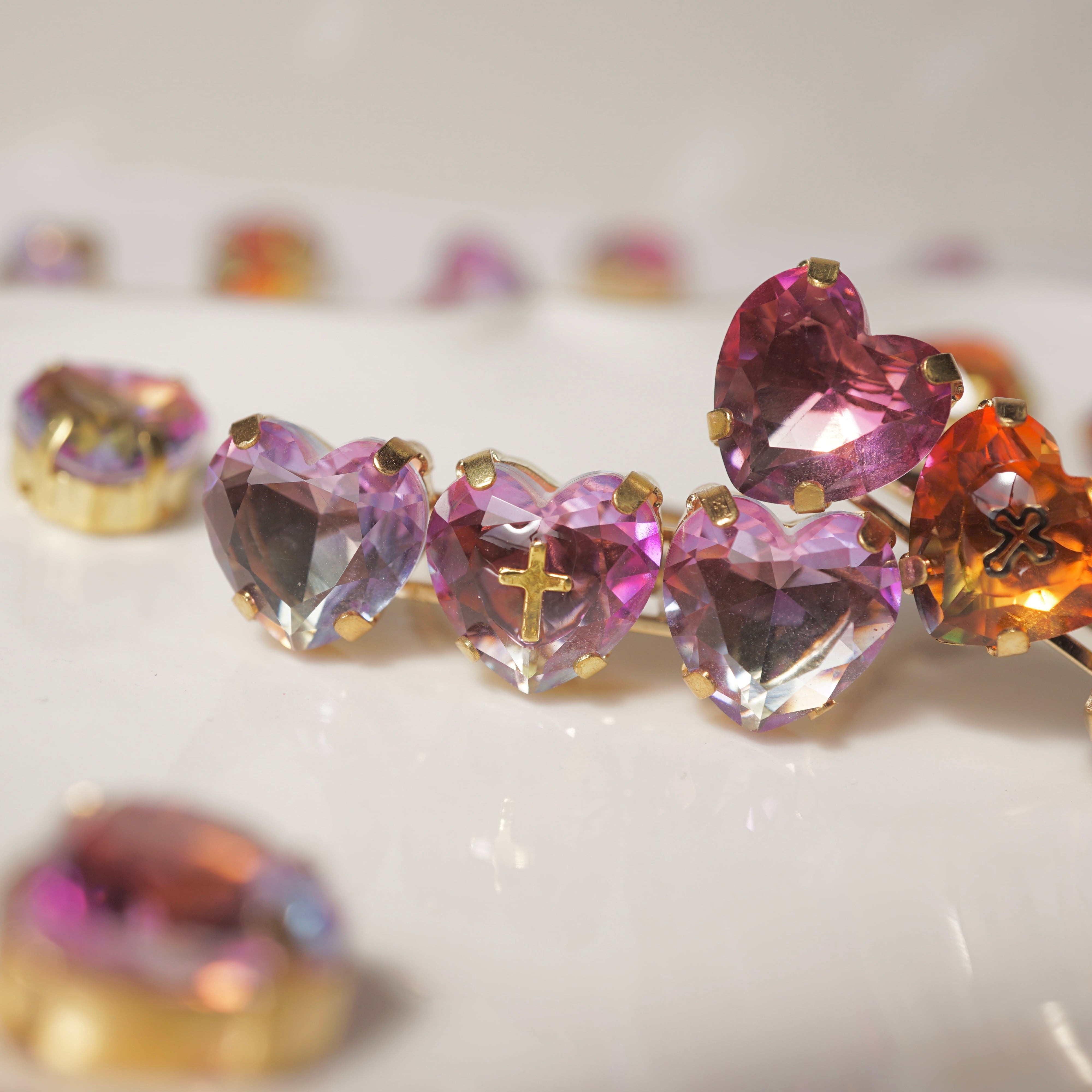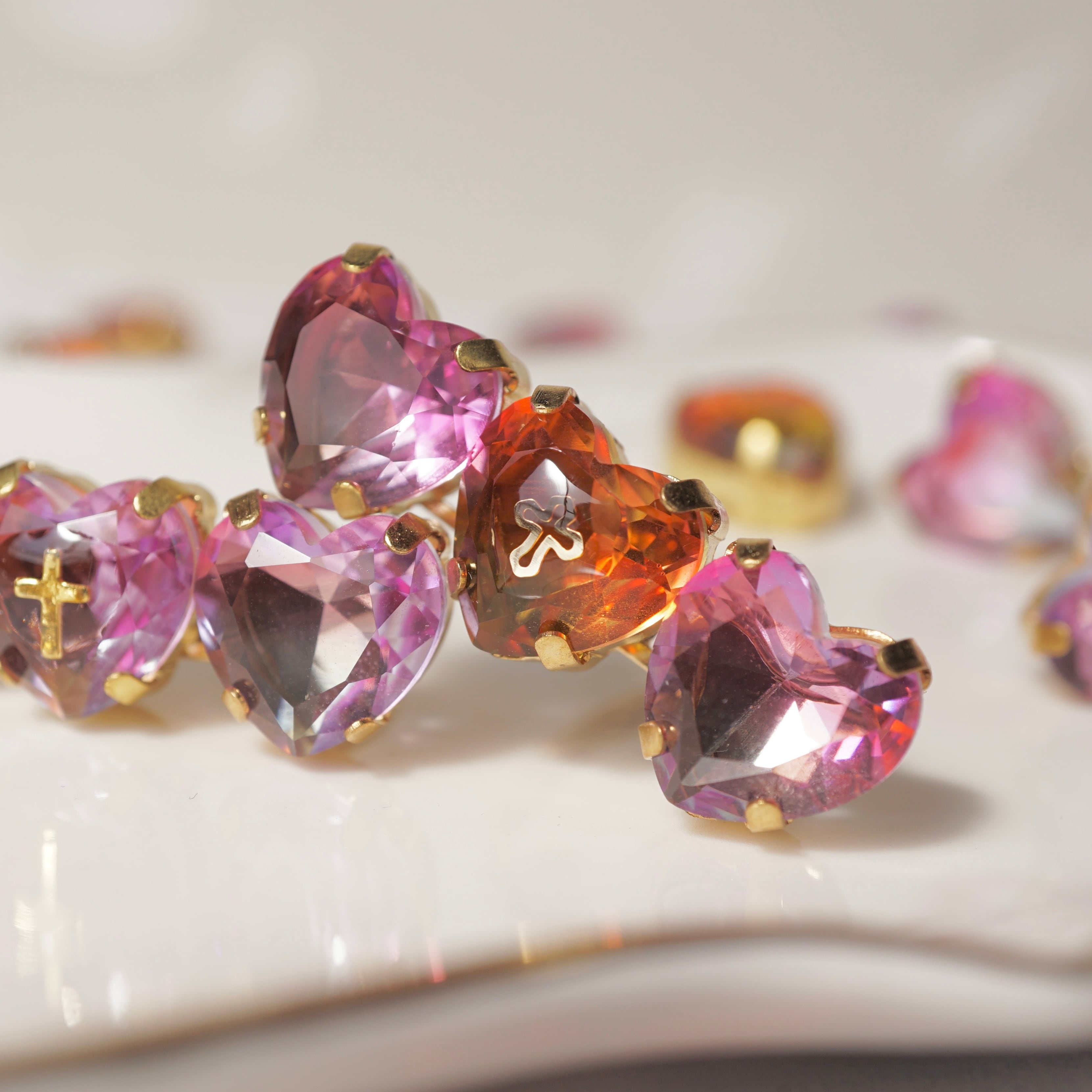 オレンジのハートはオレンジ〜グリーンのグラデーションが美しいクリスタルです。