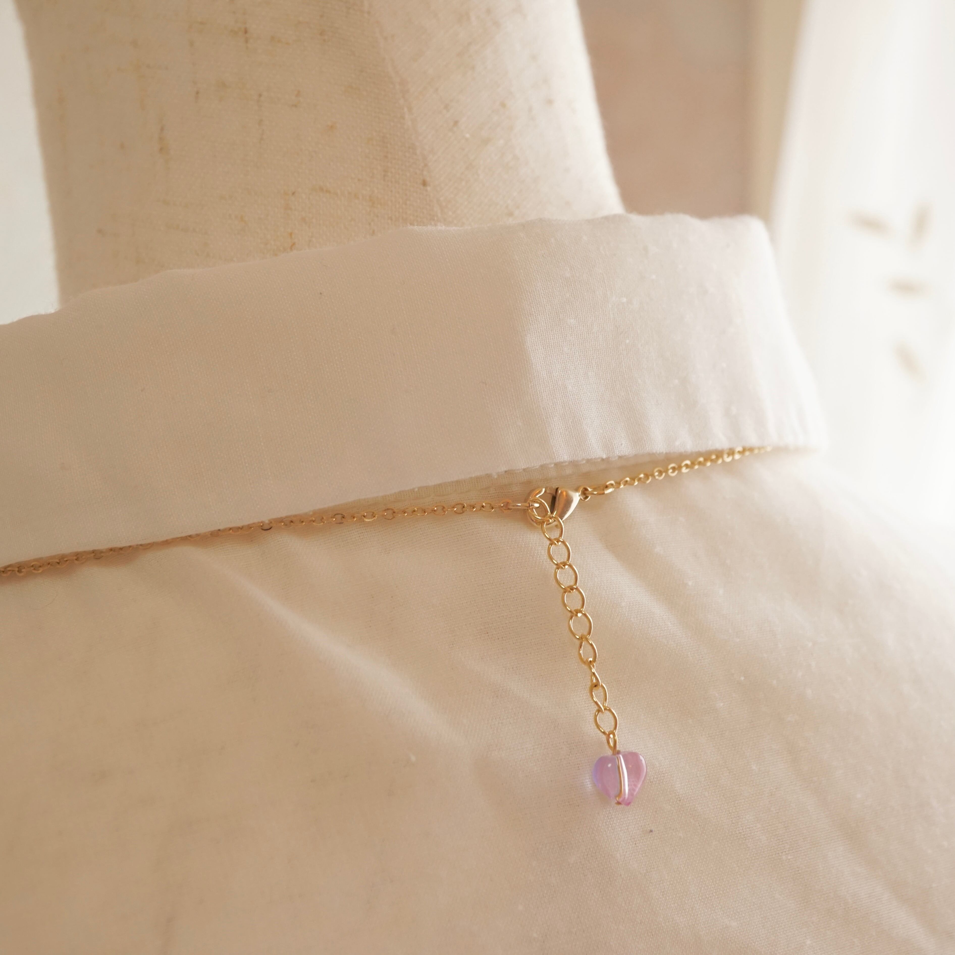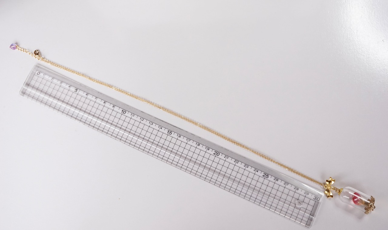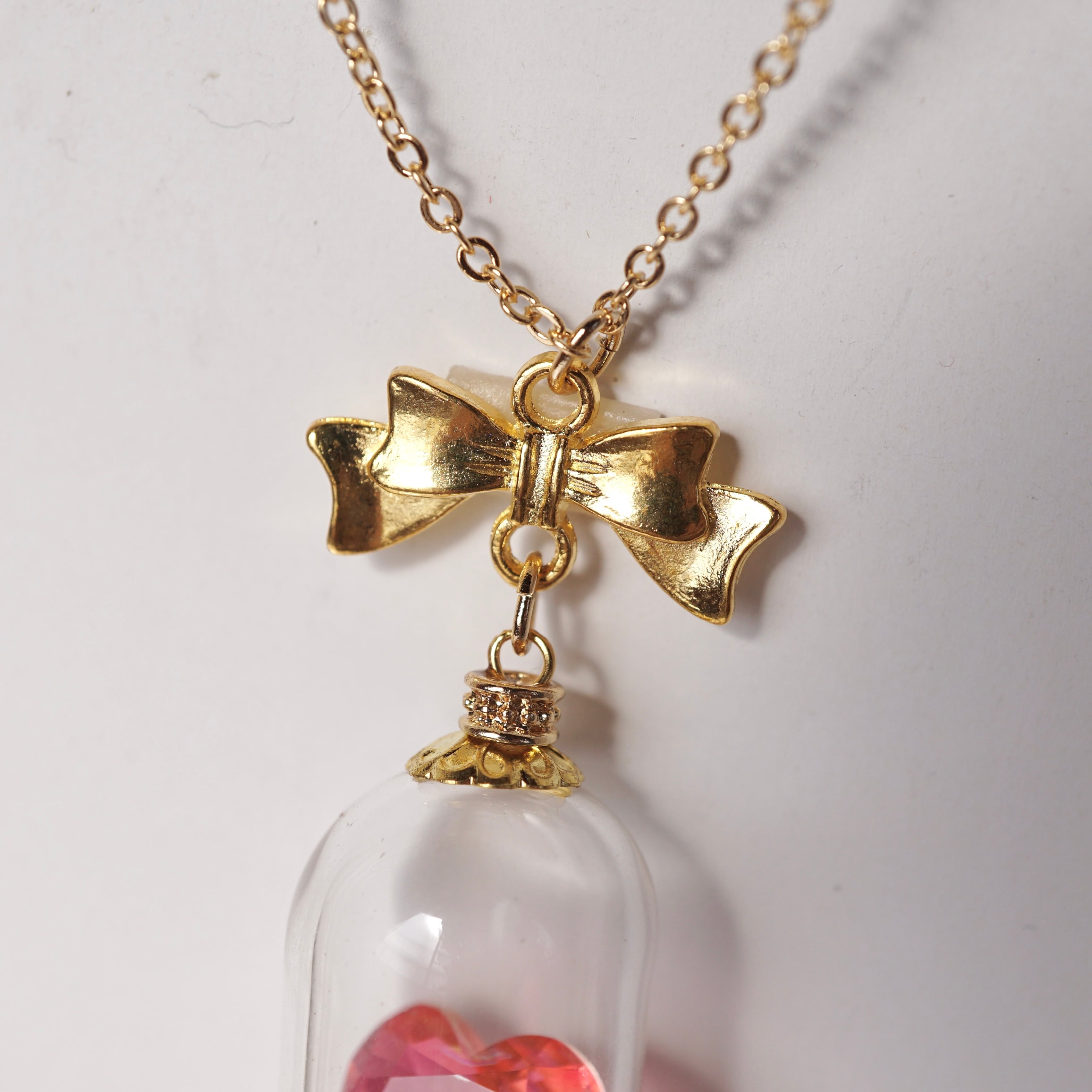 キラキラ輝く恋心を標本にしたネックレスです。ハートの美しさを楽しんでいただくため、360°綺麗に見えるガラス管を使いました。