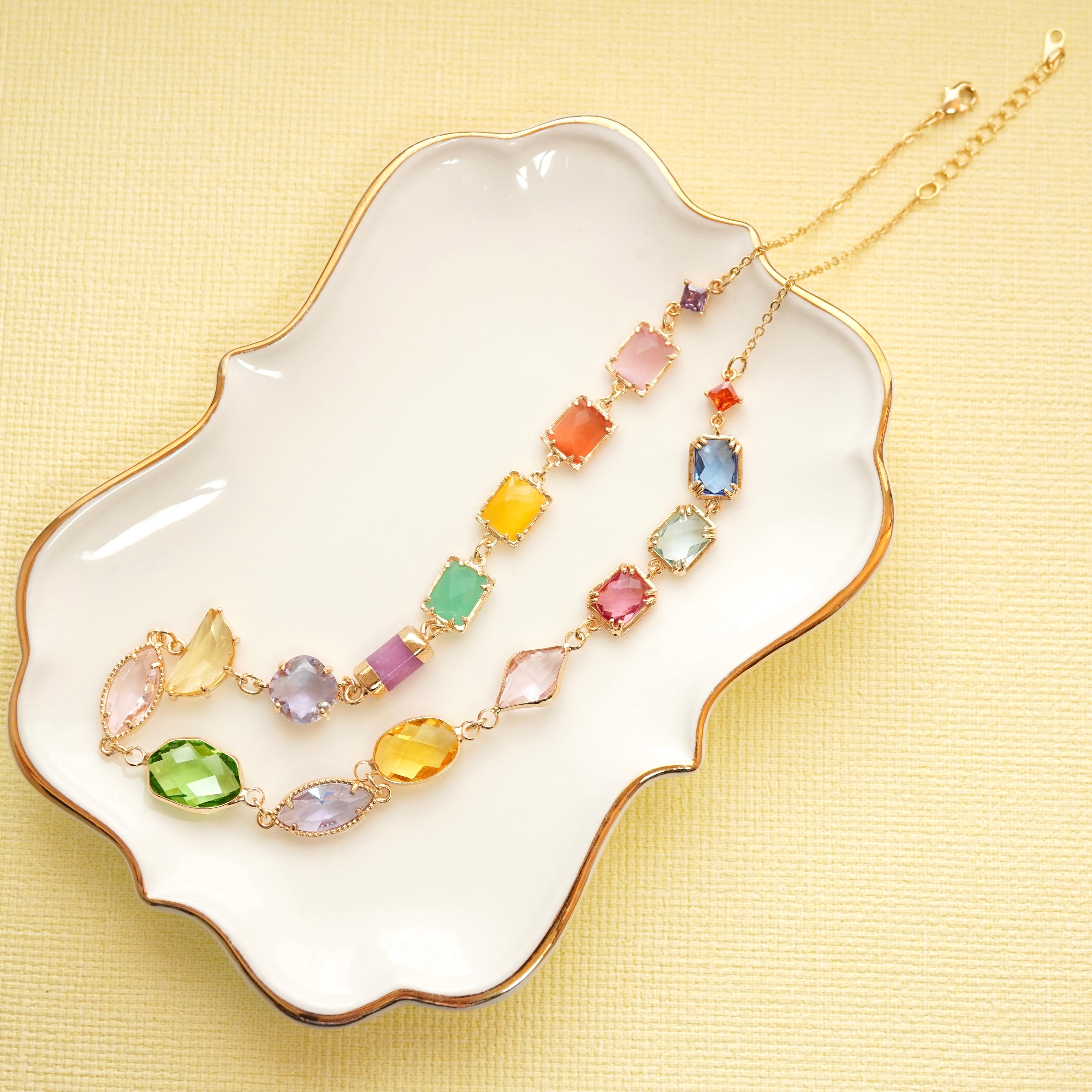 カラフルなビジューがキラキラが首元を彩り、おしゃれのワンポイントになってくれます!