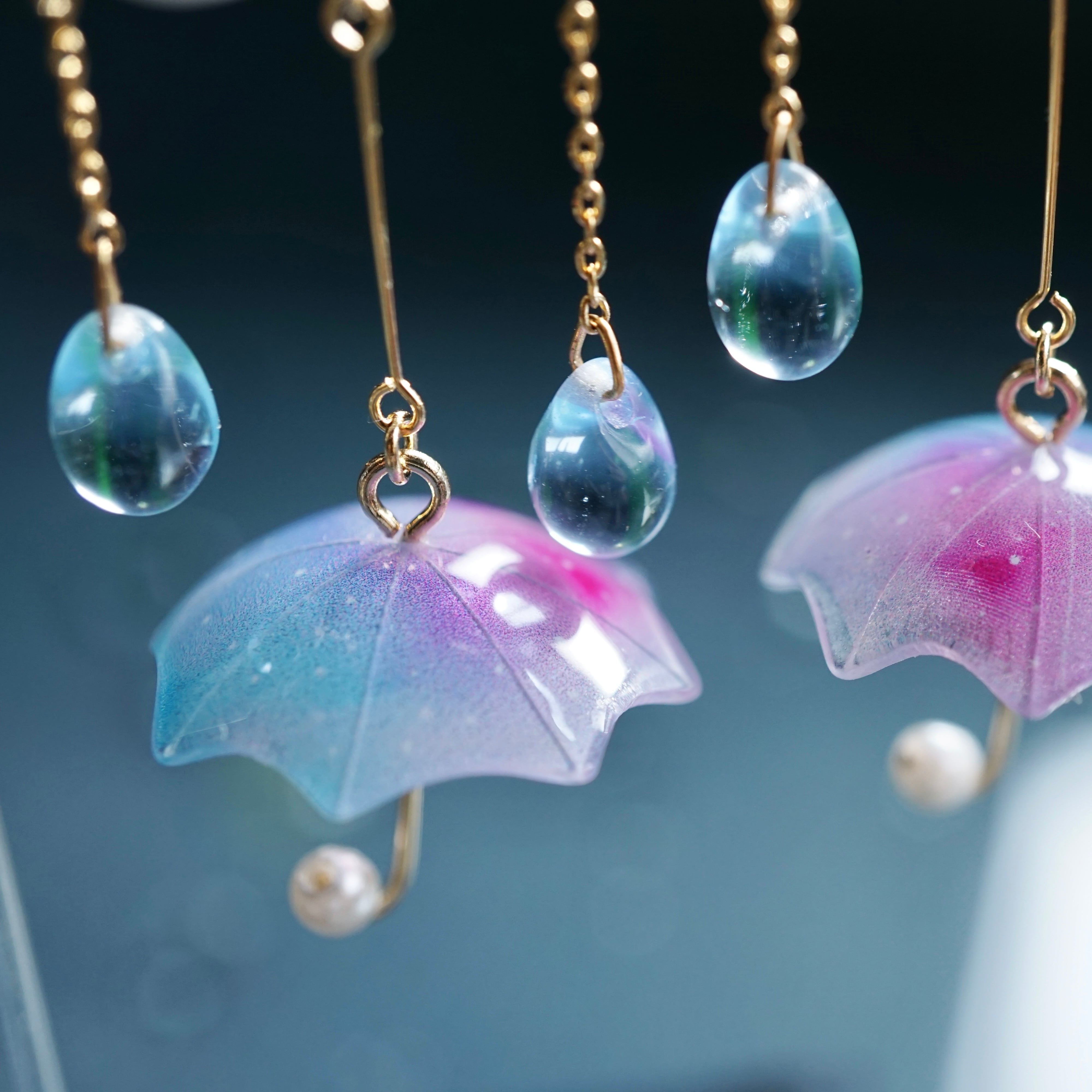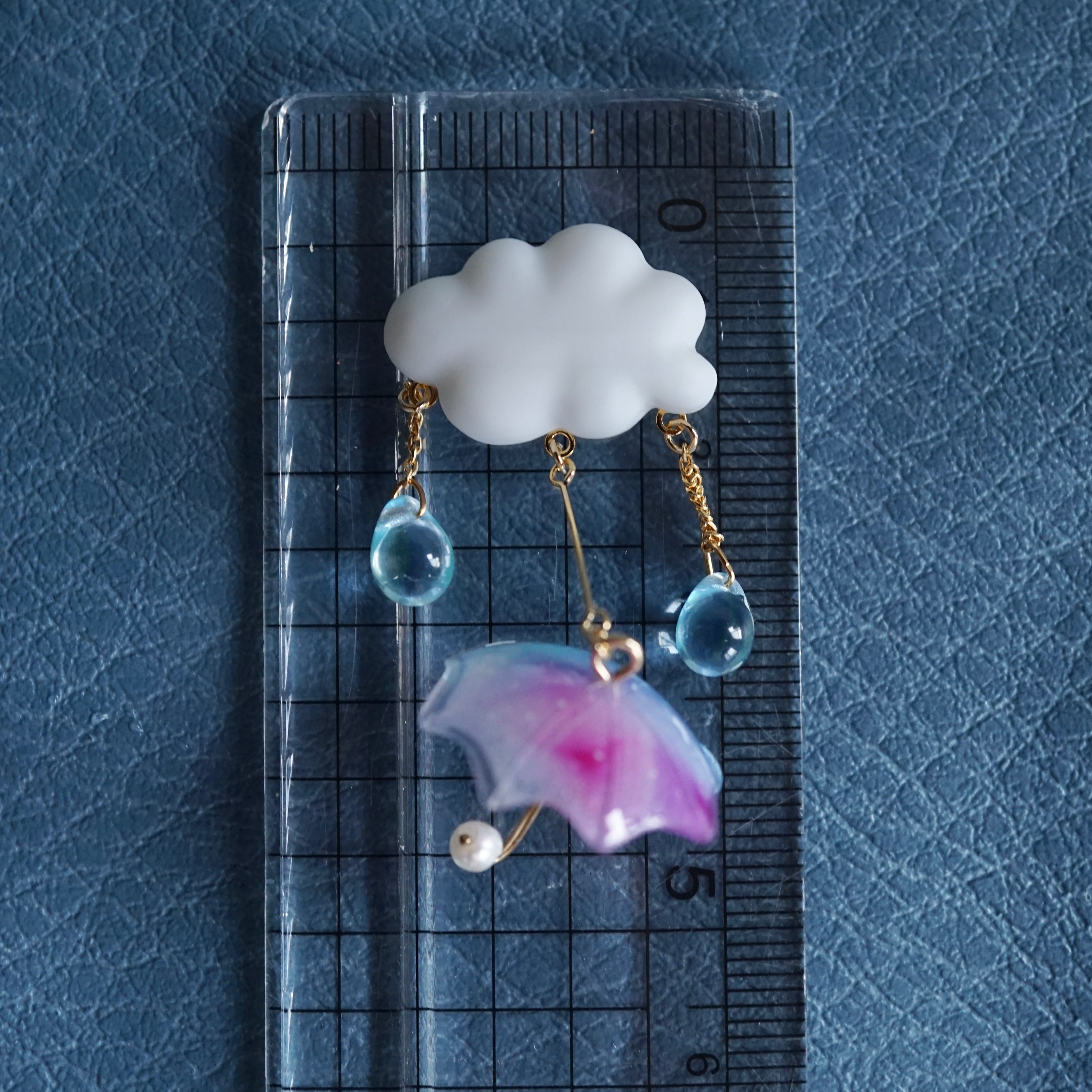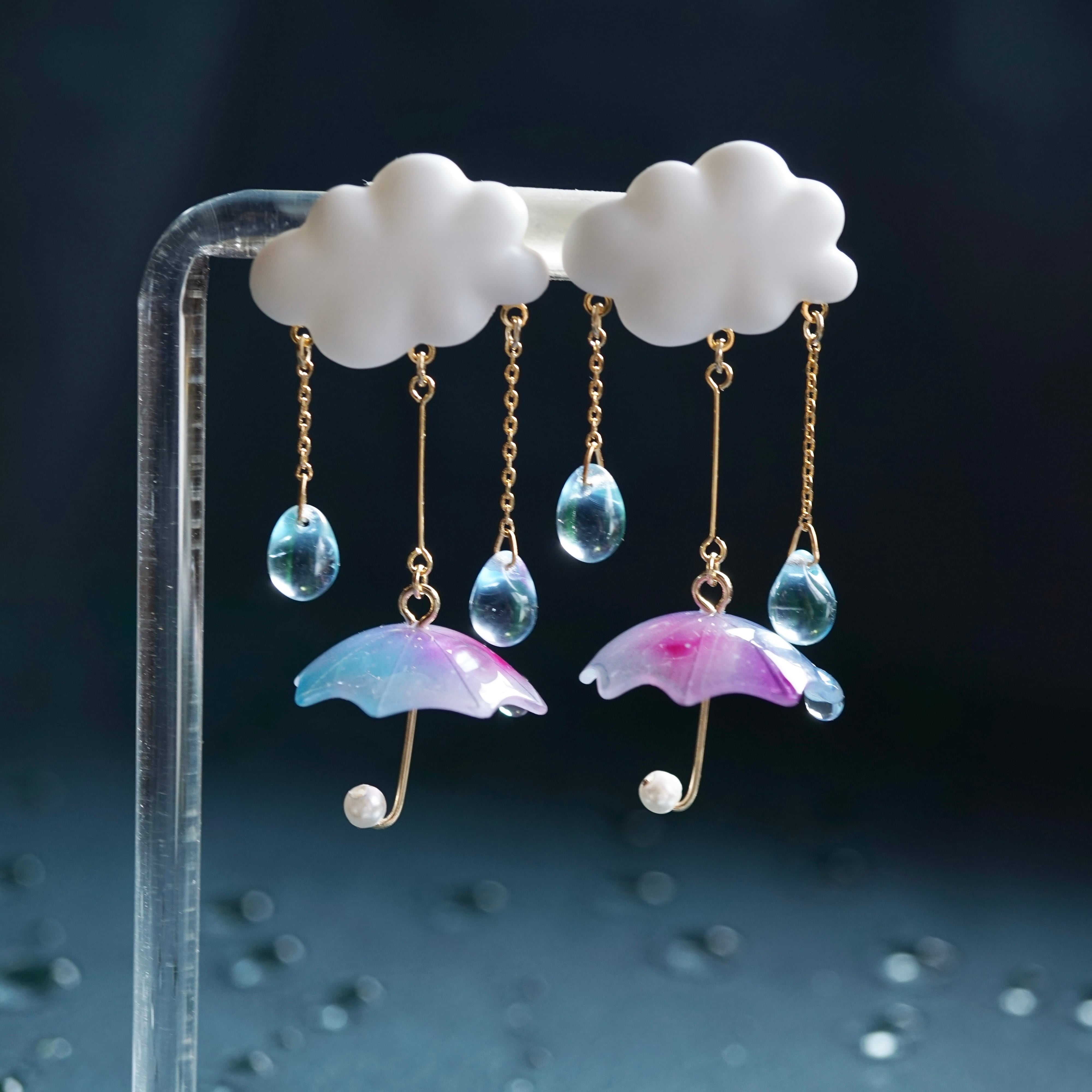 お気に入りの紫陽花色の傘で、雨でもごきげんなお出かけ!そんなシーンをイメージしたピアス/イヤリングです。