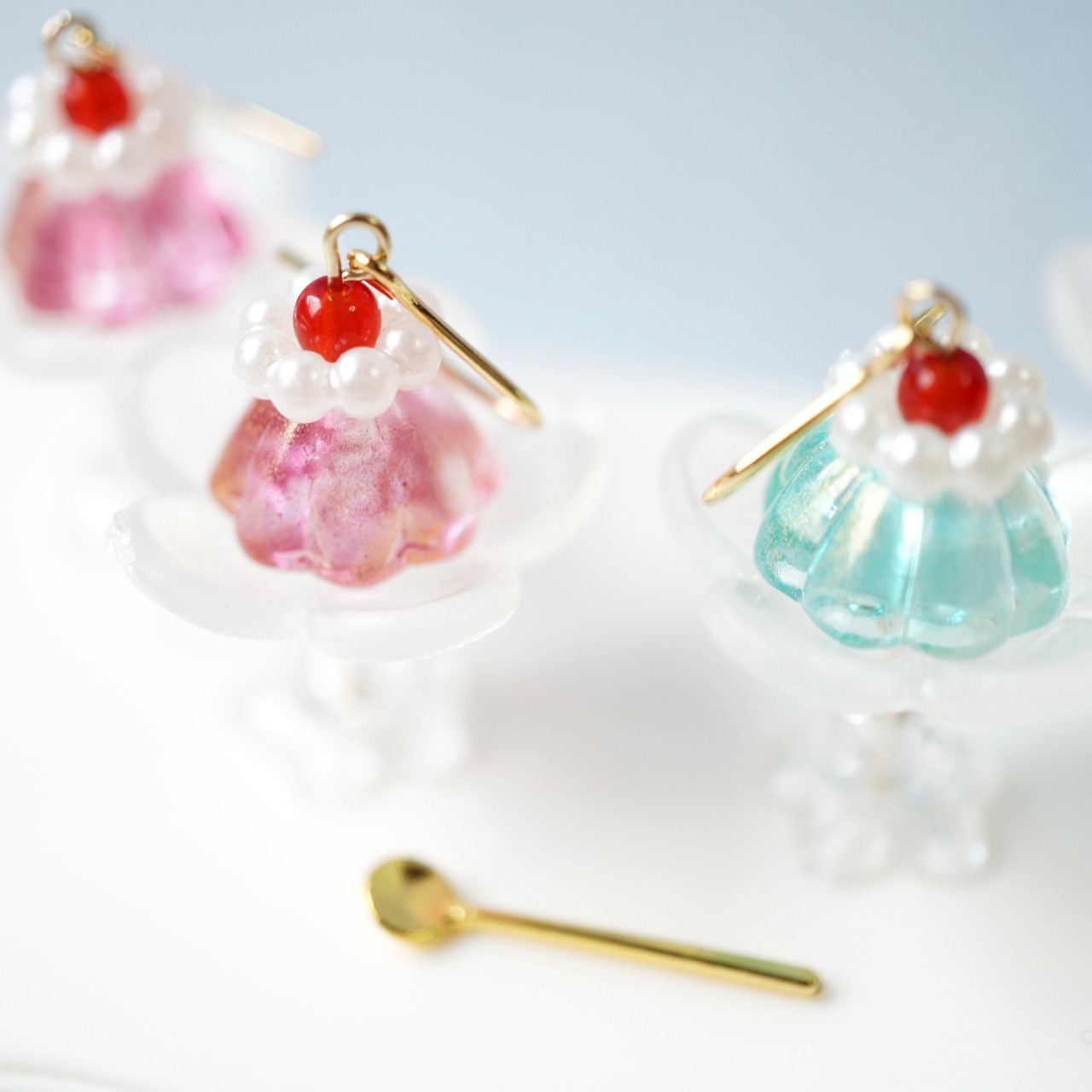 ミニチュアサイズのゼリーを耳元に再現したピアス/イヤリングです。