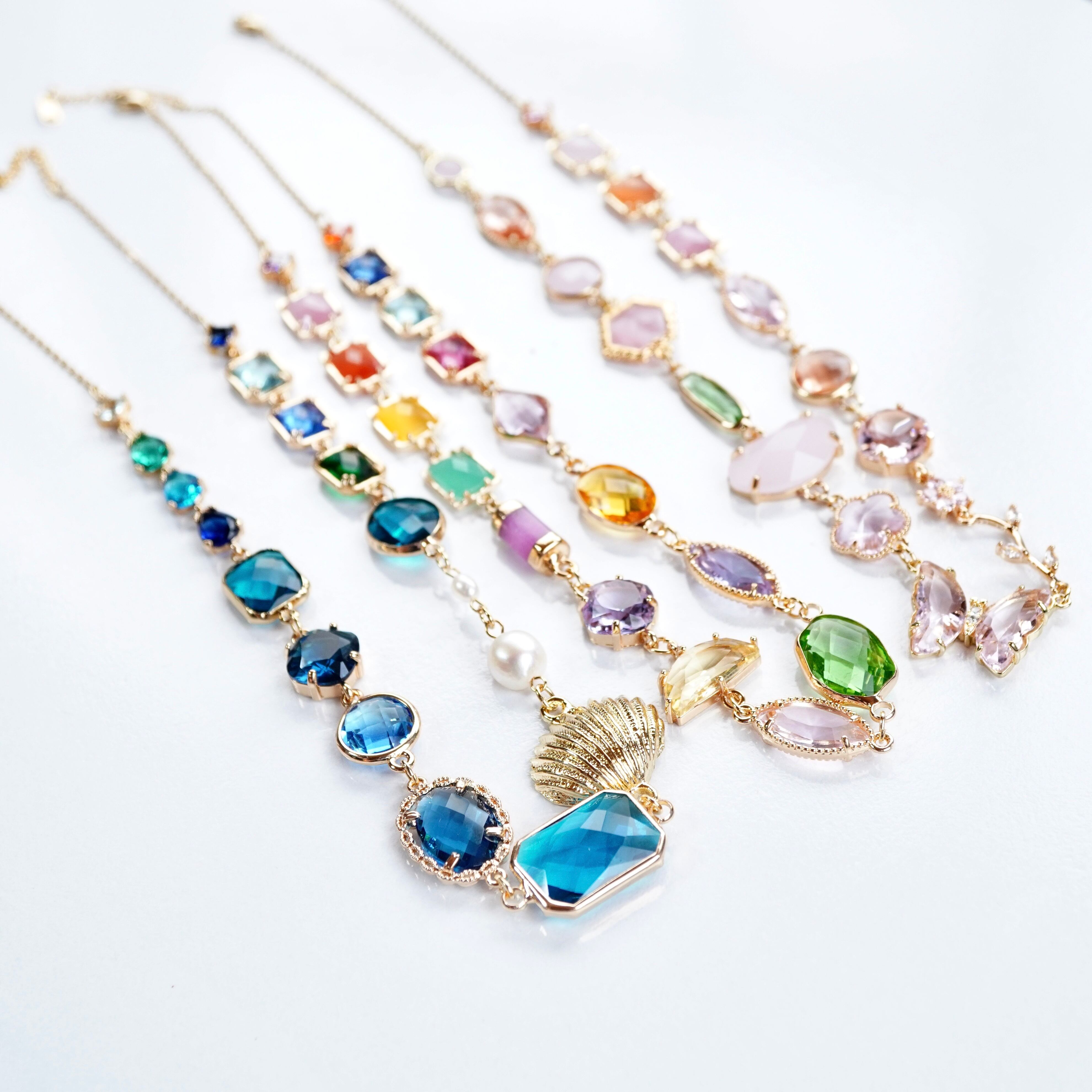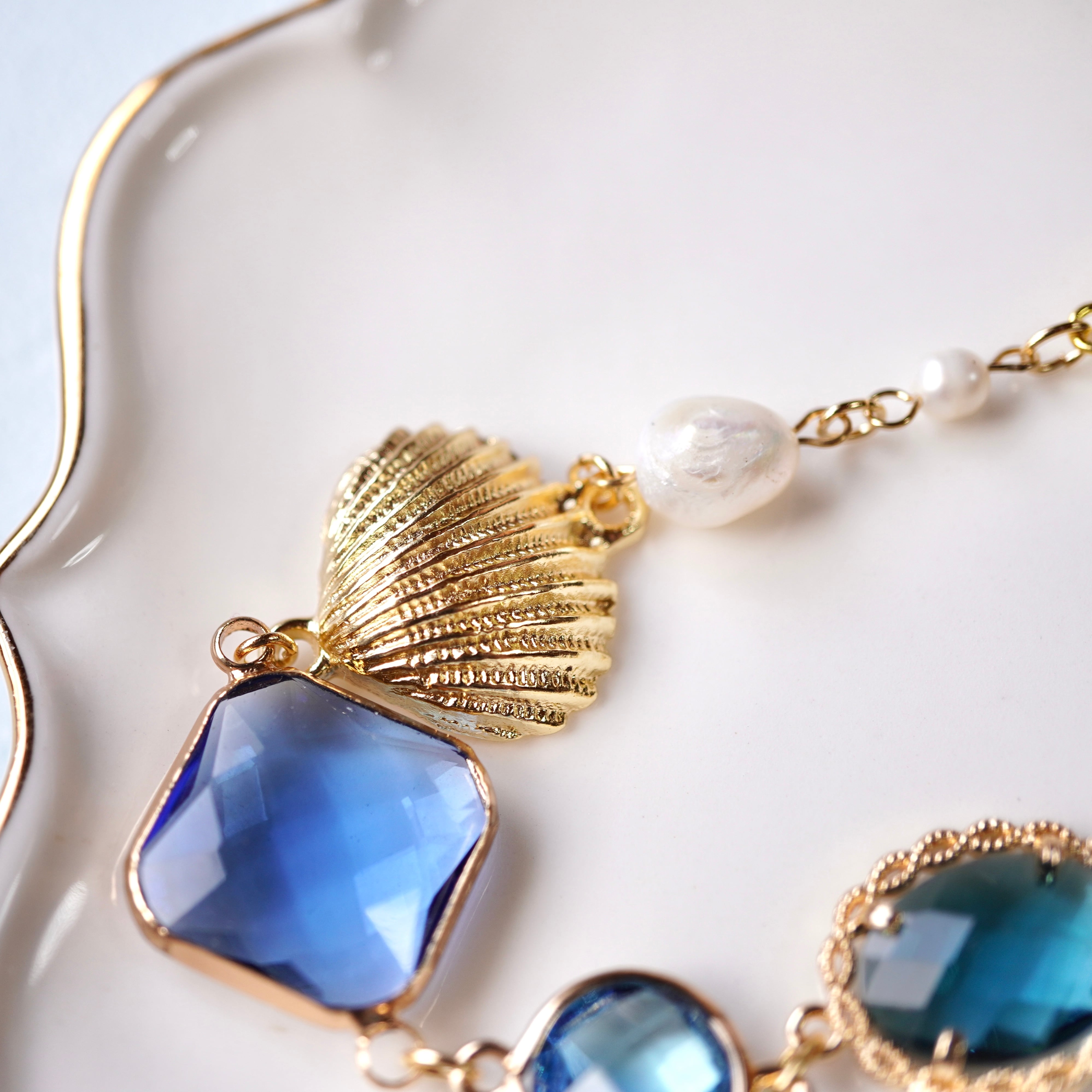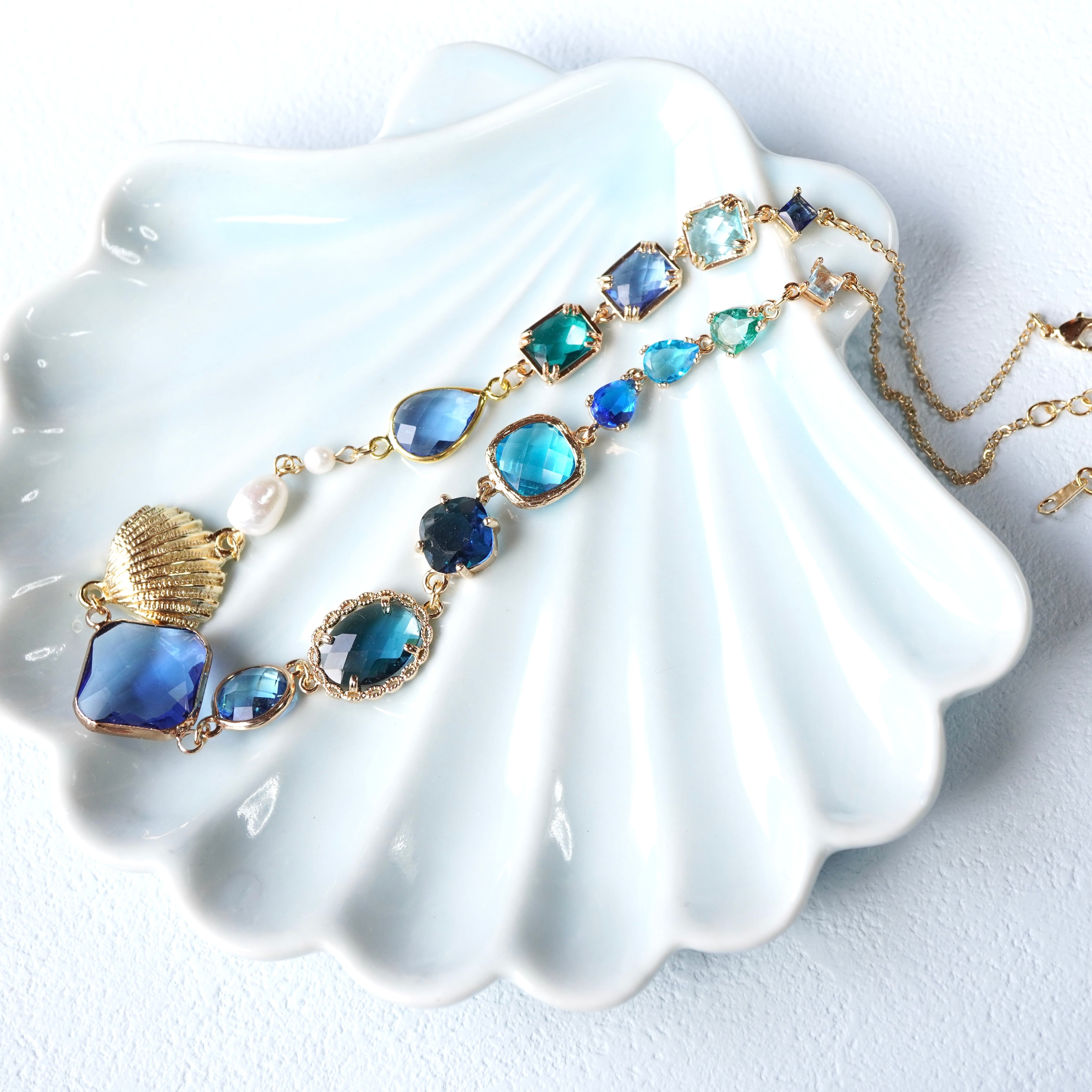 海をイメージした様々なカラーのビジューを贅沢にあしらったネックレスです。