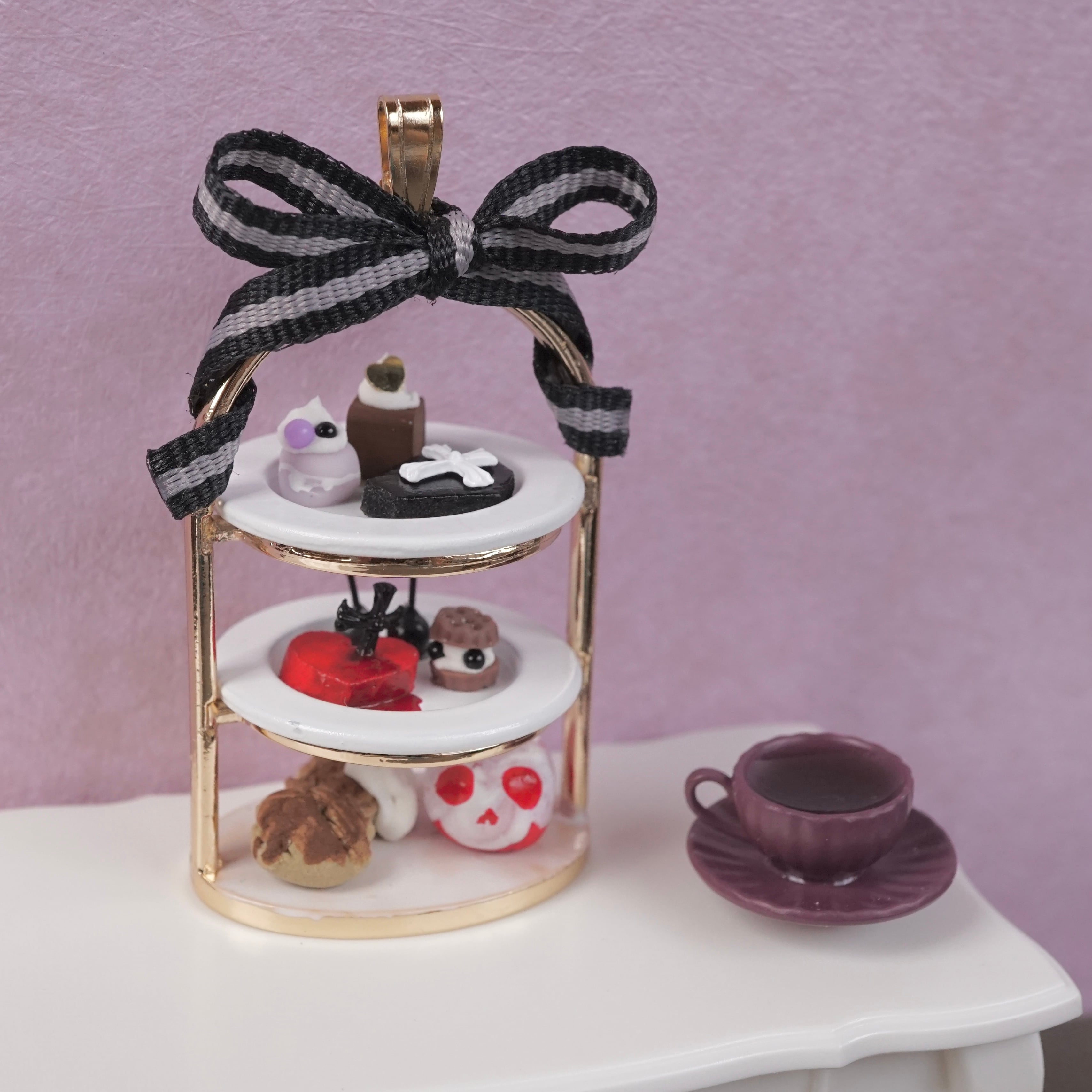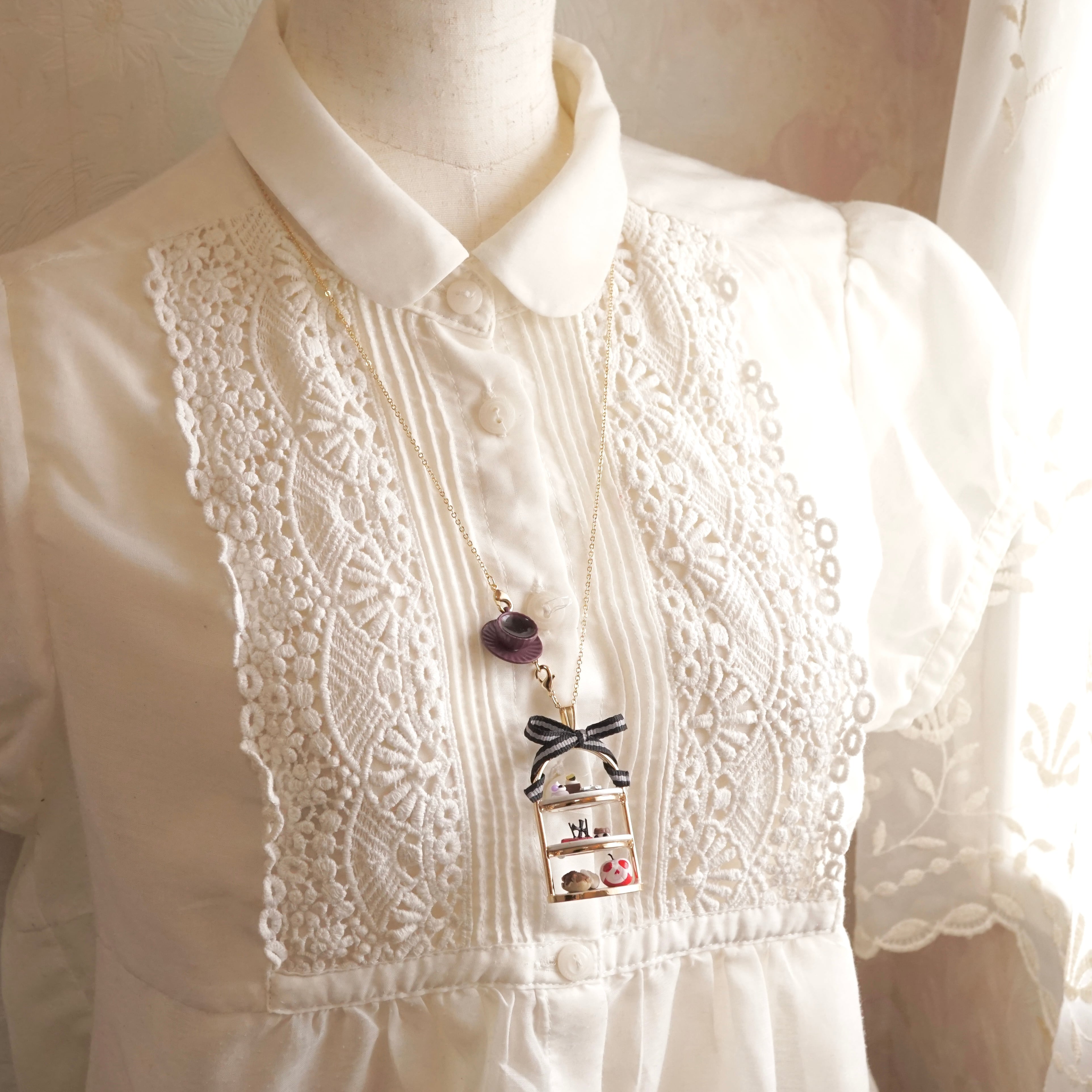 お客様から「ぬいちゃんと一緒にお茶会を楽しめるアクセサリーが欲しい」とリクエストをいただき作りました。ティーカップ部分の金具を外していただくと、ミニチュアとして楽しめるようになっております。