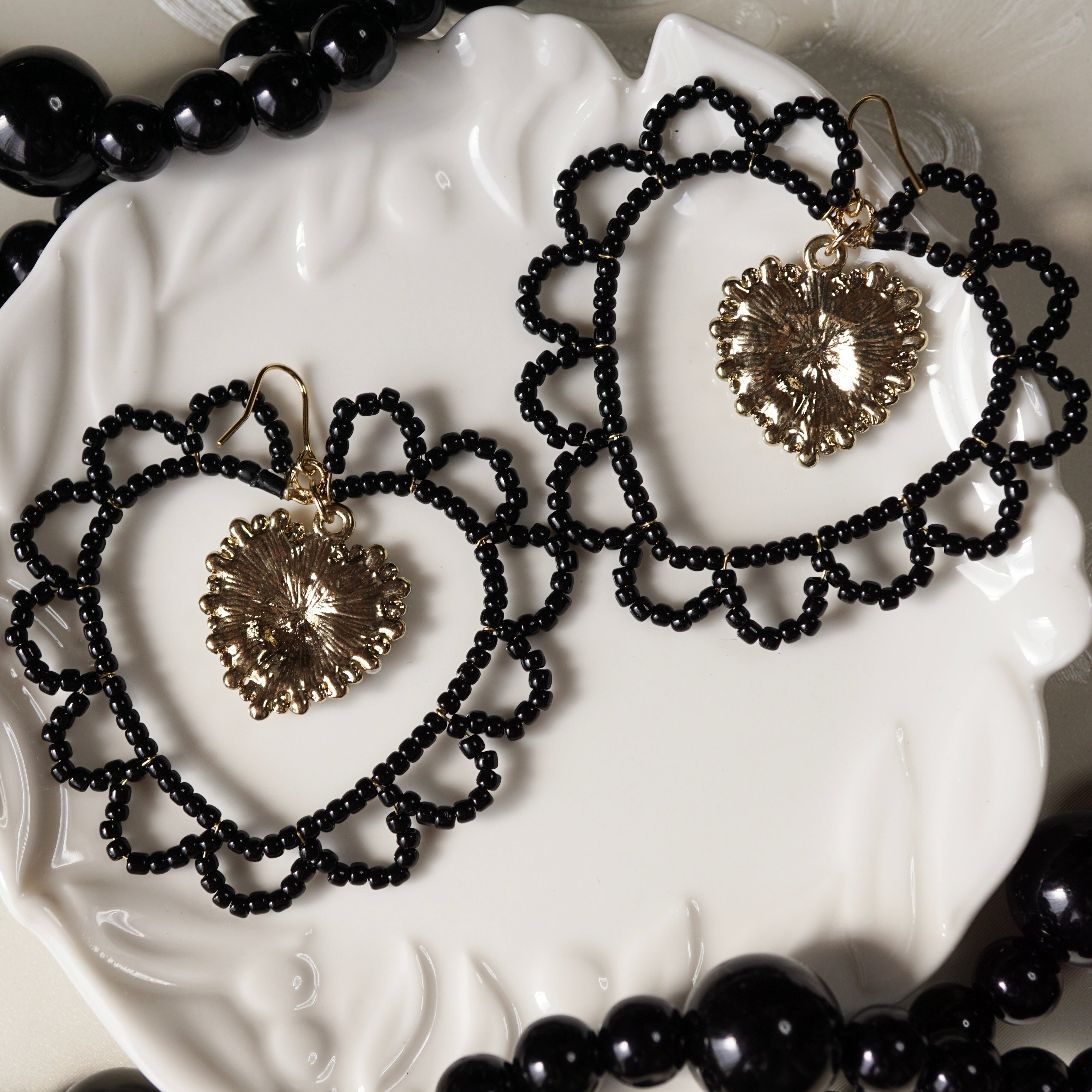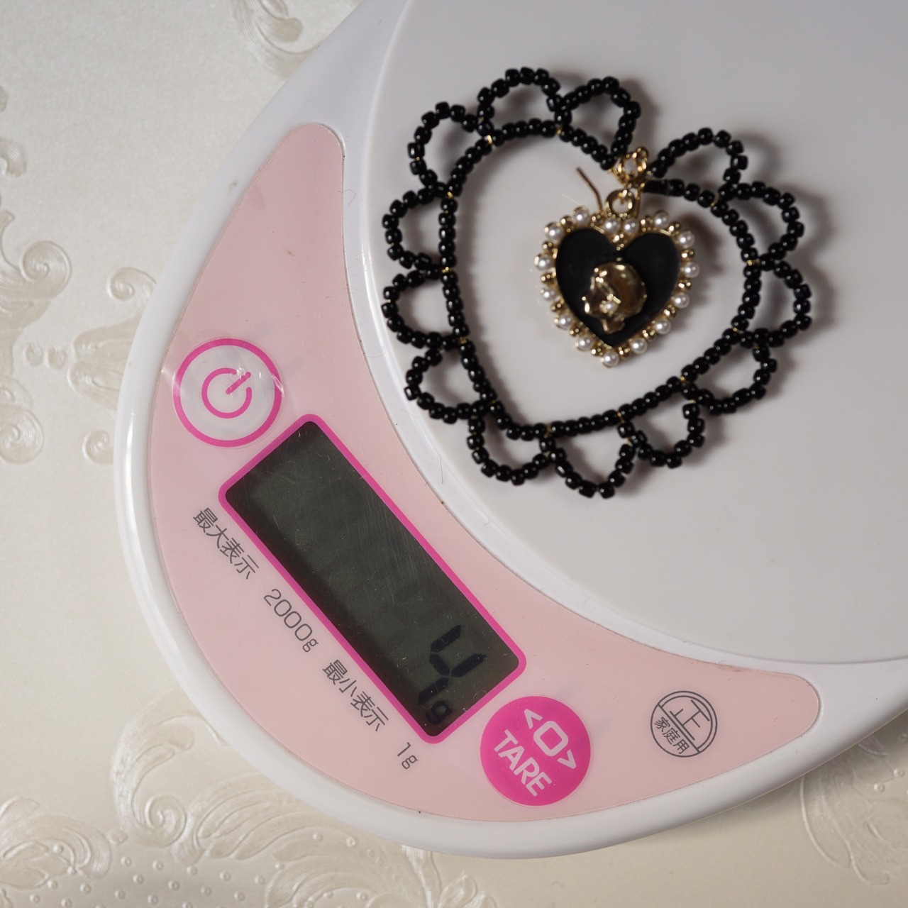 レースはブラックのビーズでひとつひとつ編んでおります。レース部分は繊細なので強く引っ張らないようお願いいたします。