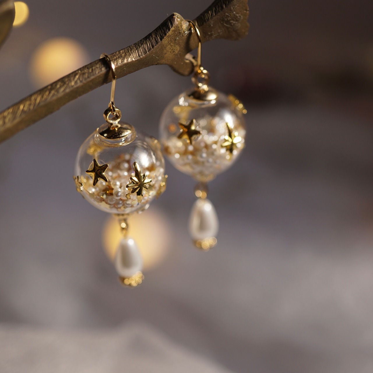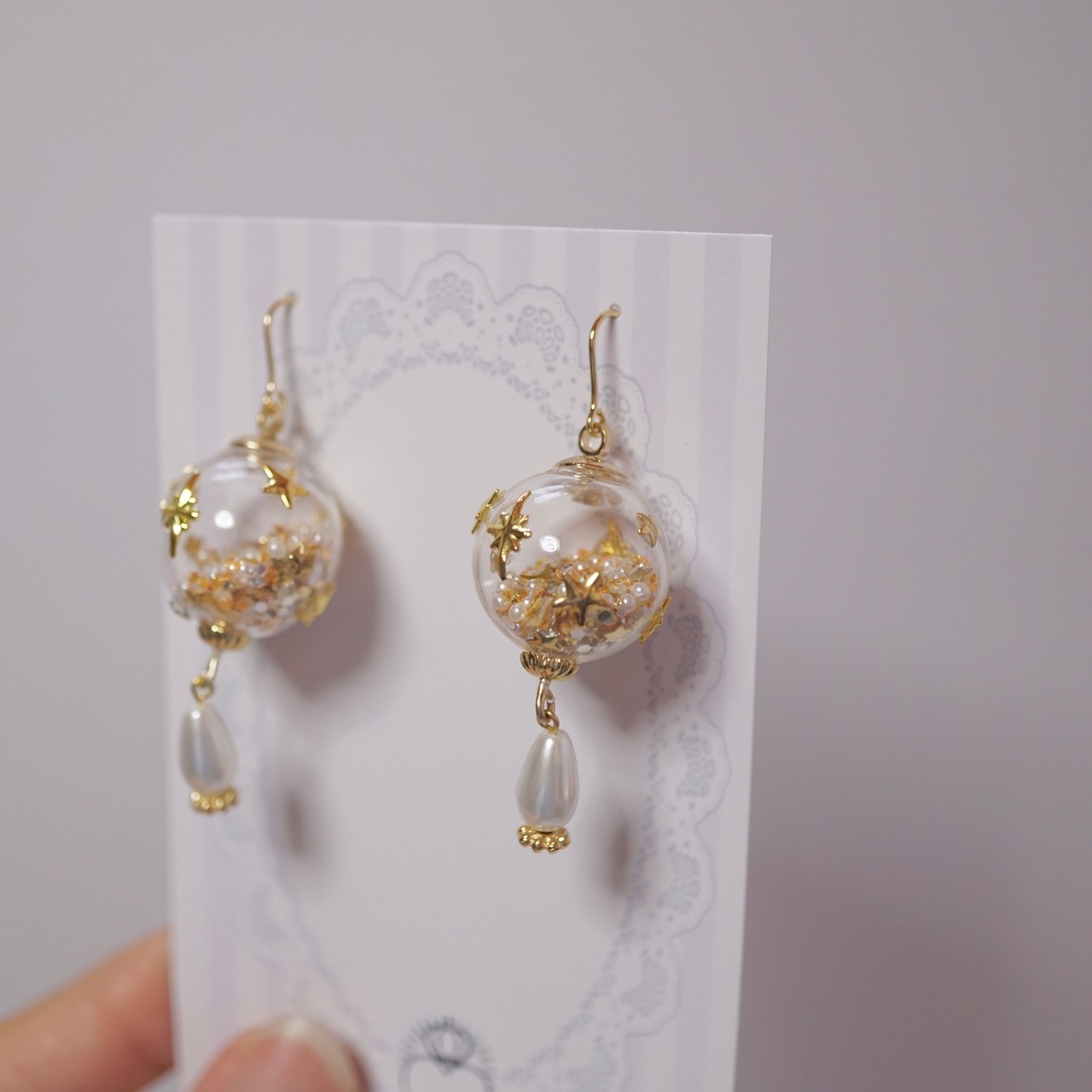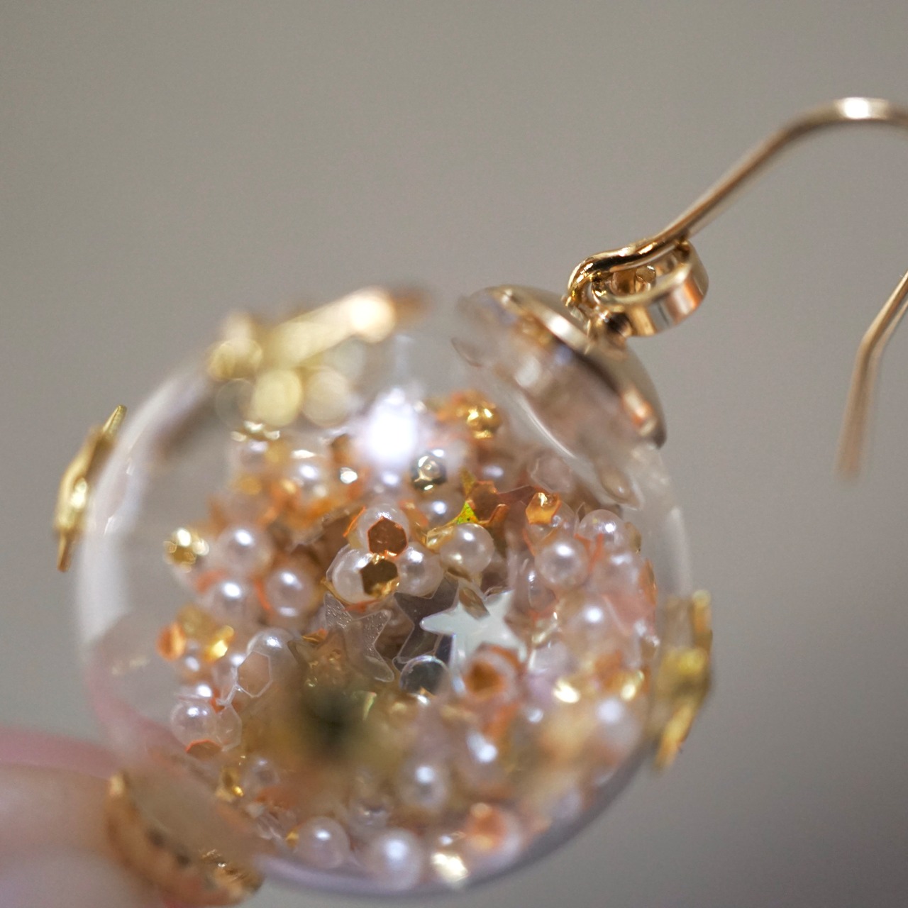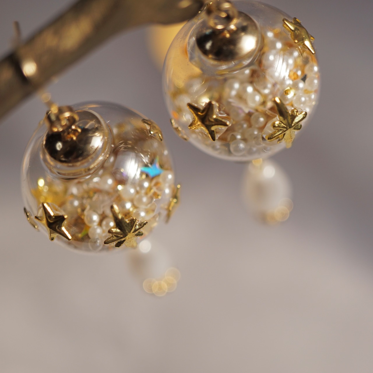 ガラスの中にキラキラ輝く星や、雪をイメージしたパールなどを入れて仕上げました。