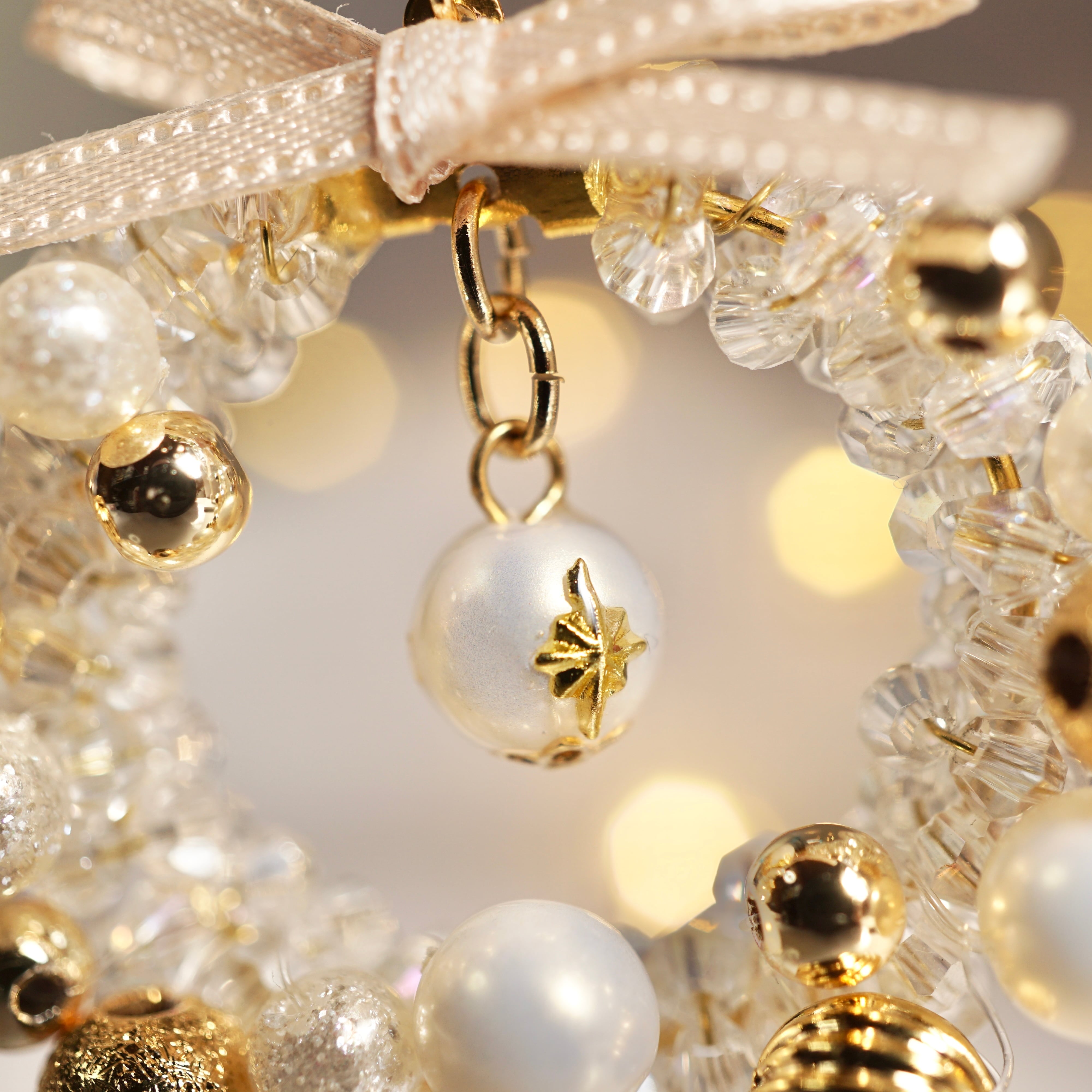 パールとゴールドのオーナメントは、ラメ加工やゴールドの装飾がキラキラ輝いて綺麗なものを選びました。