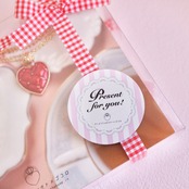 ティータイムをイメージした専用の台紙に、リボンとオリジナルシールのラッピングでお届けいたします。