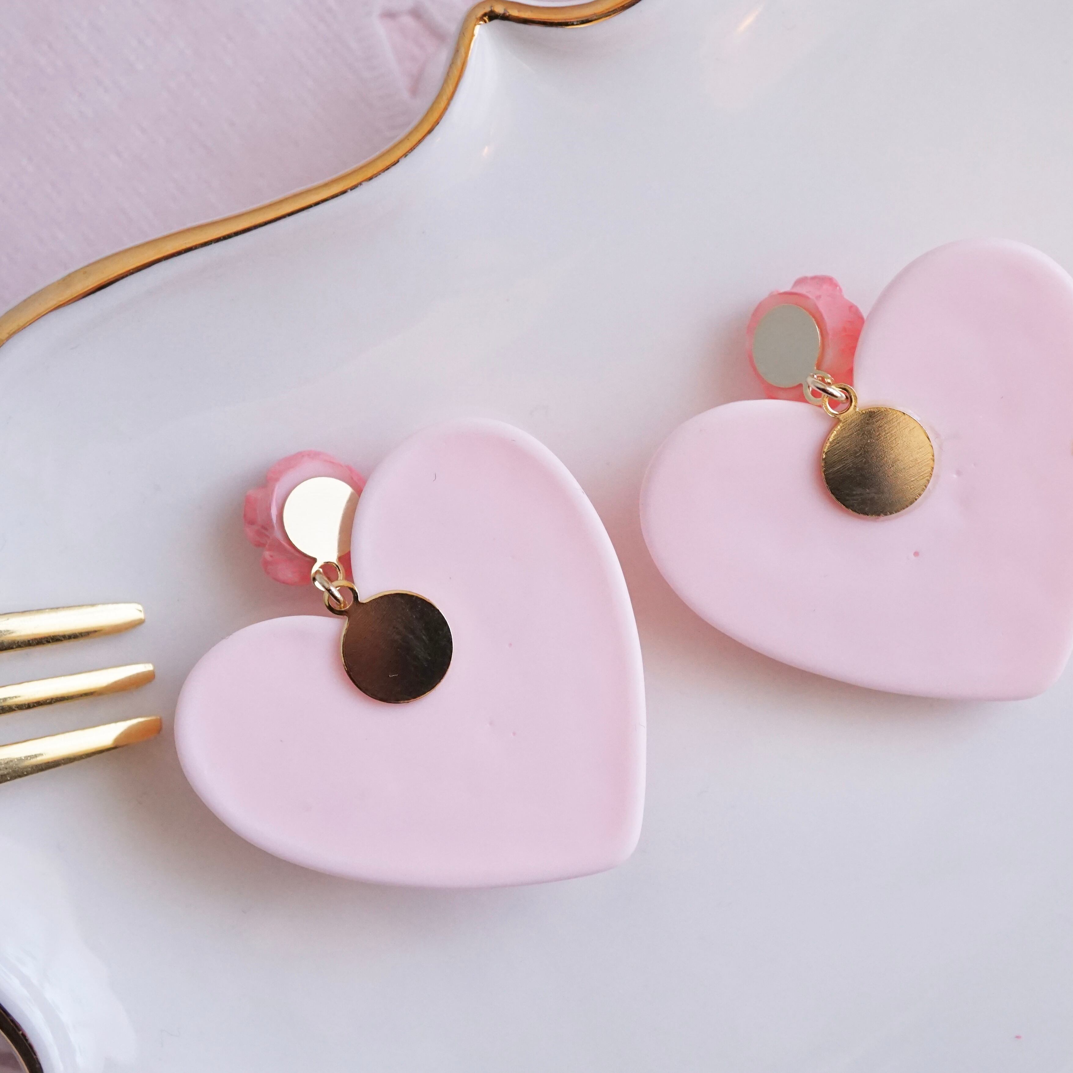 大ぶりなハートと繊細な花柄が耳元でしっかり主張してくれます!