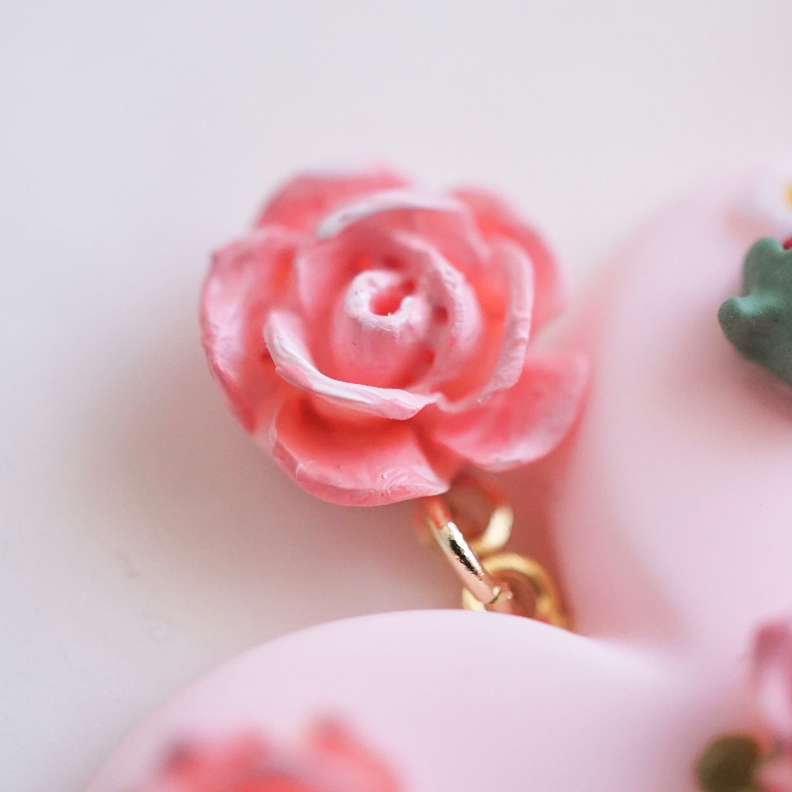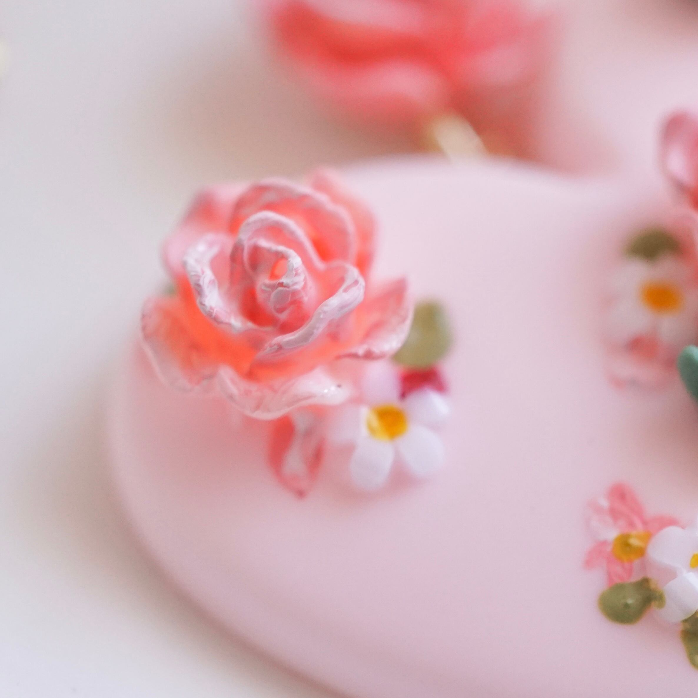 ローズはお砂糖で作ったような色に塗装し、砂糖菓子のような色合いに仕上げました。