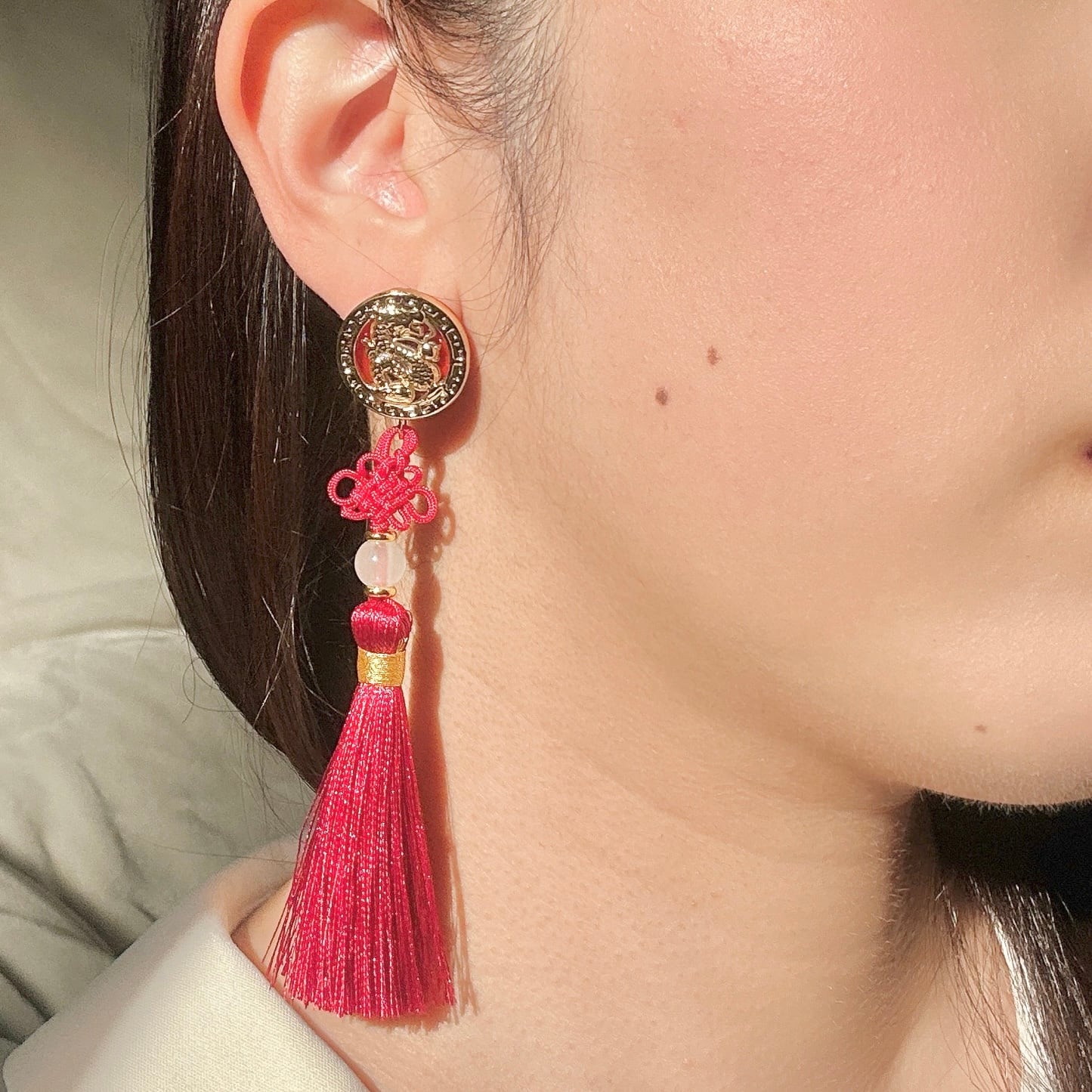チャイナ×かわいいをテーマに作ったシリーズのピアス/イヤリングです。