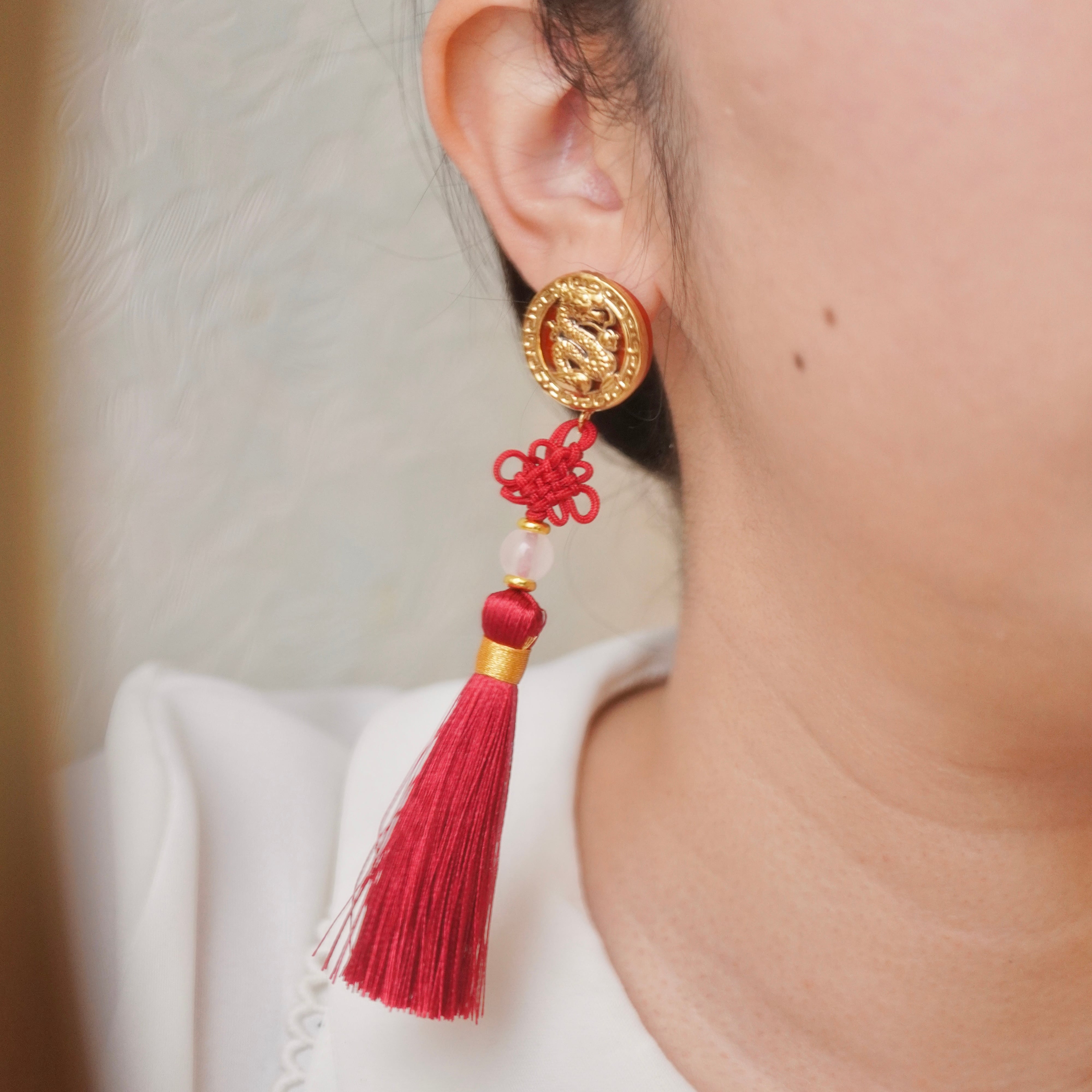 チャイナとかわいいを掛け合わせたピアス/イヤリングです。こちらは龍をテーマに制作しました。