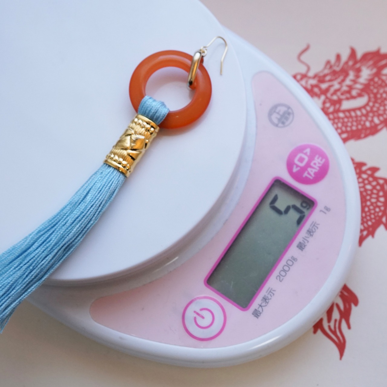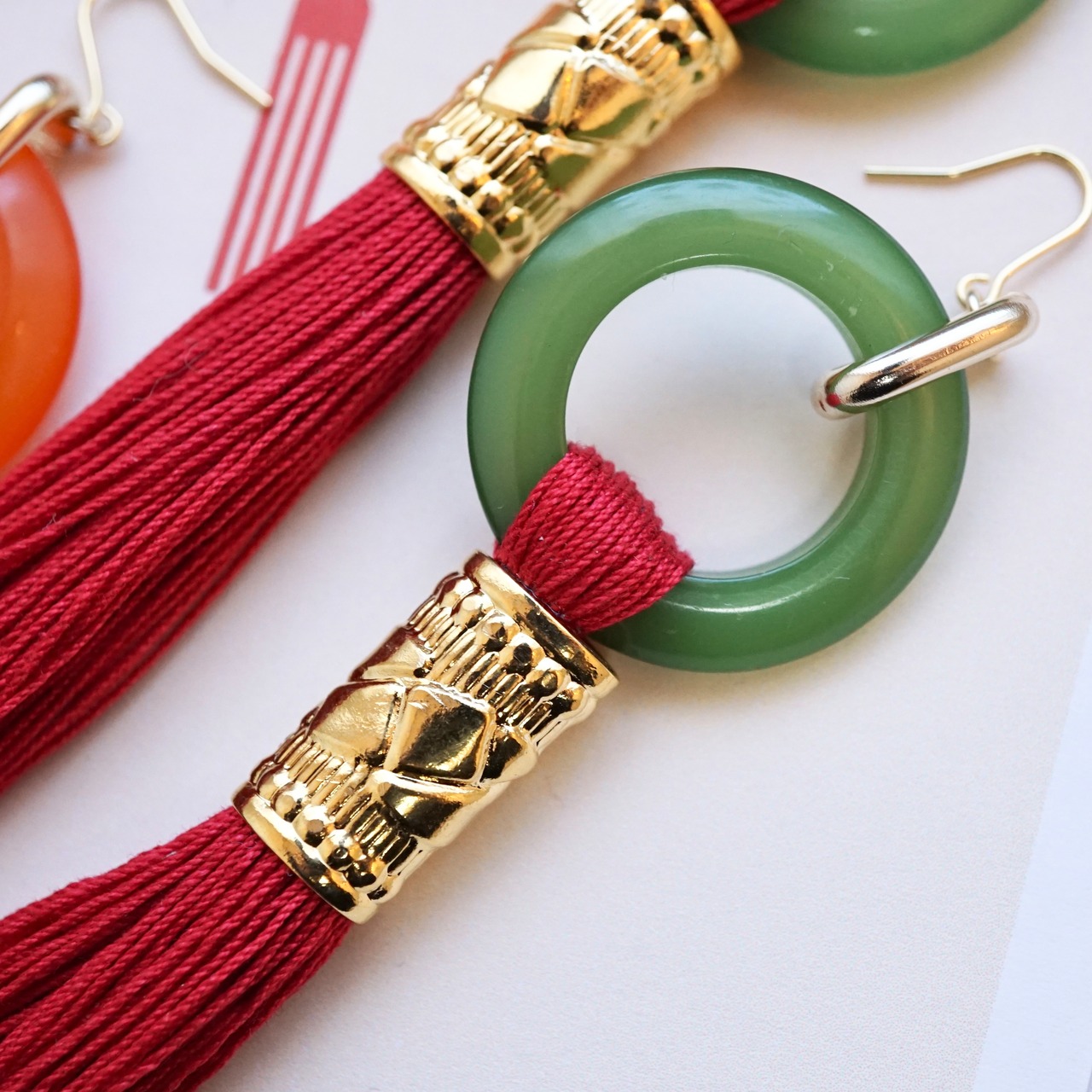 これぞチャイナ!な翡翠と紅の組み合わせです。深い赤色のタッセルにゴールドがよく映えます。