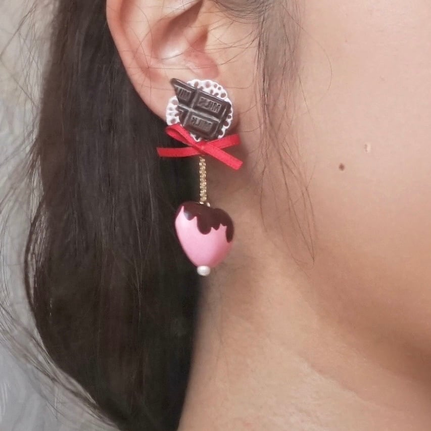 甘いチョコレートをたくさん詰め込んだピアス/イヤリングです。