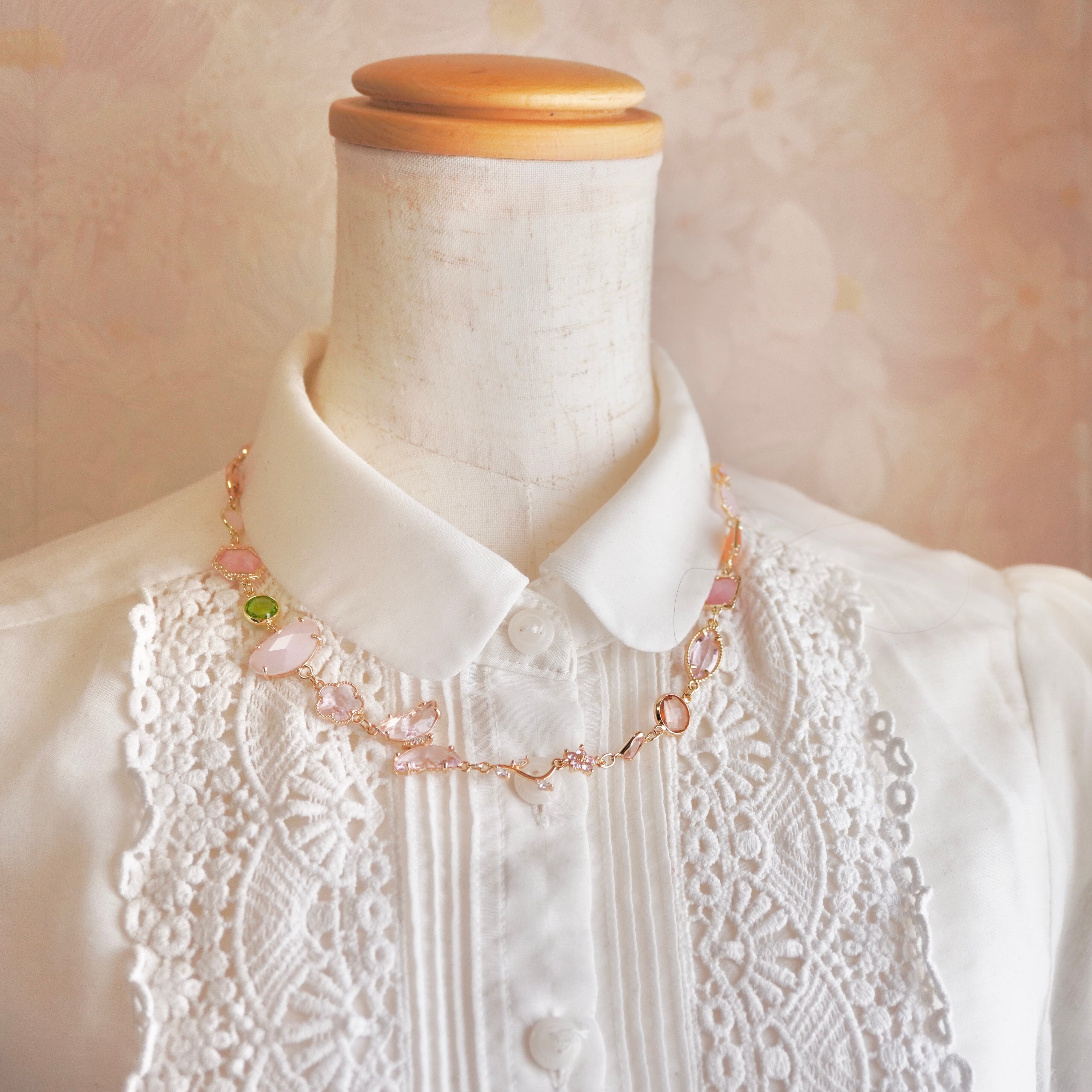 桜をイメージした様々なカラーのビジューを贅沢にあしらったネックレスです。
