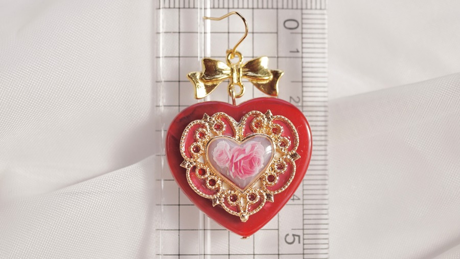 勲章部分にはゴールドのハート型レースパーツに、真ん中に薔薇をあしらいました。