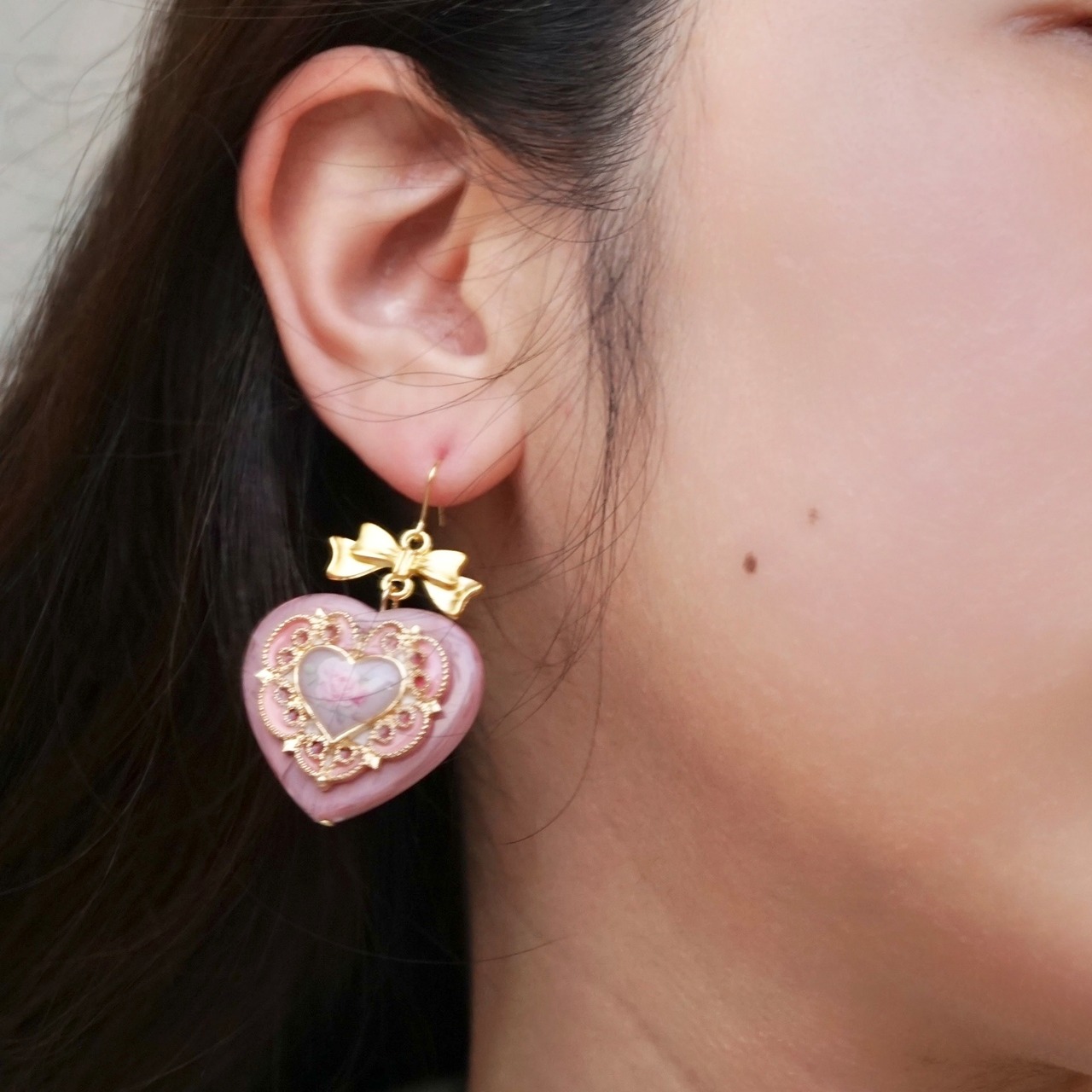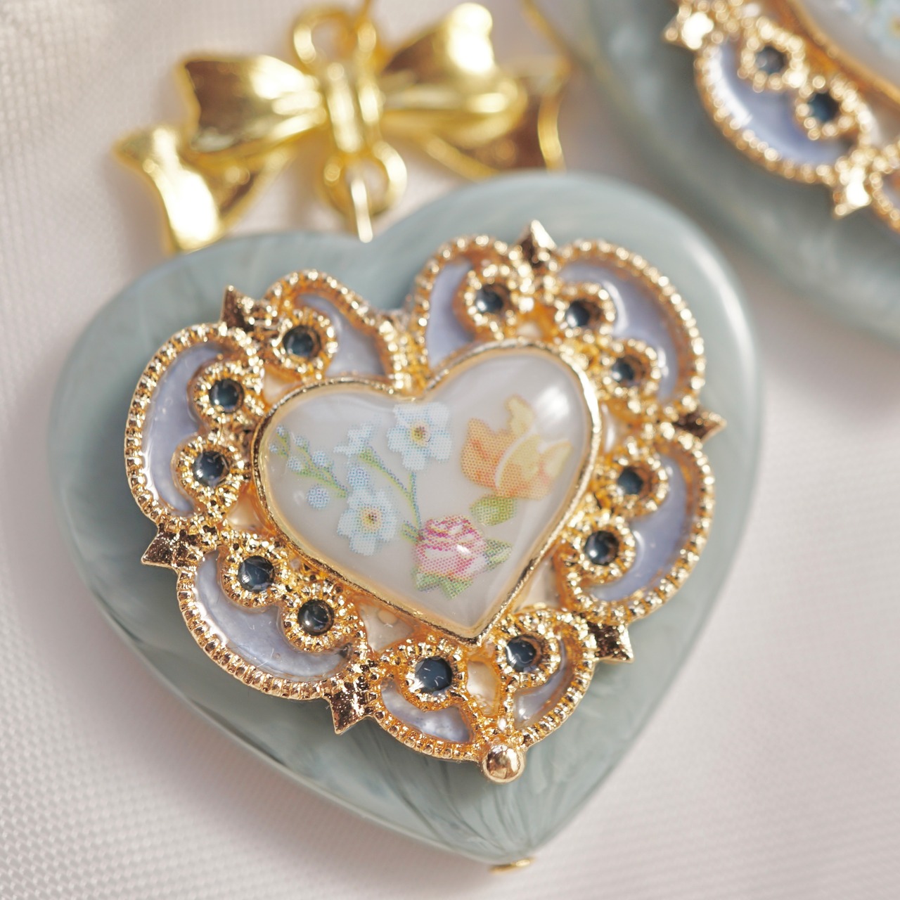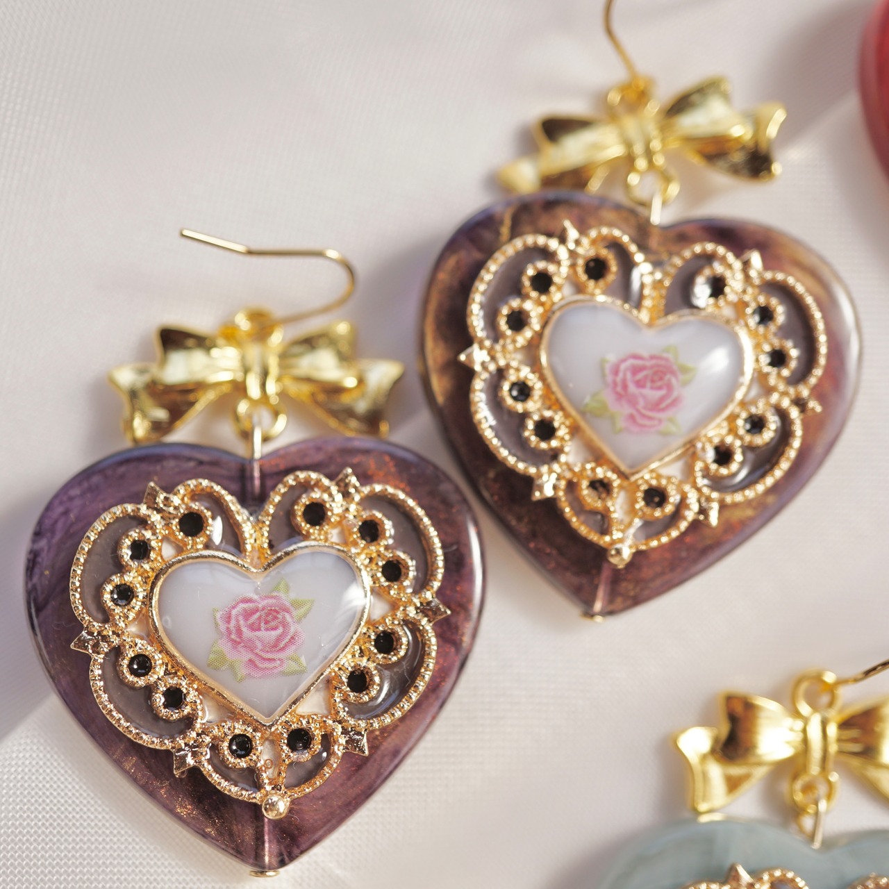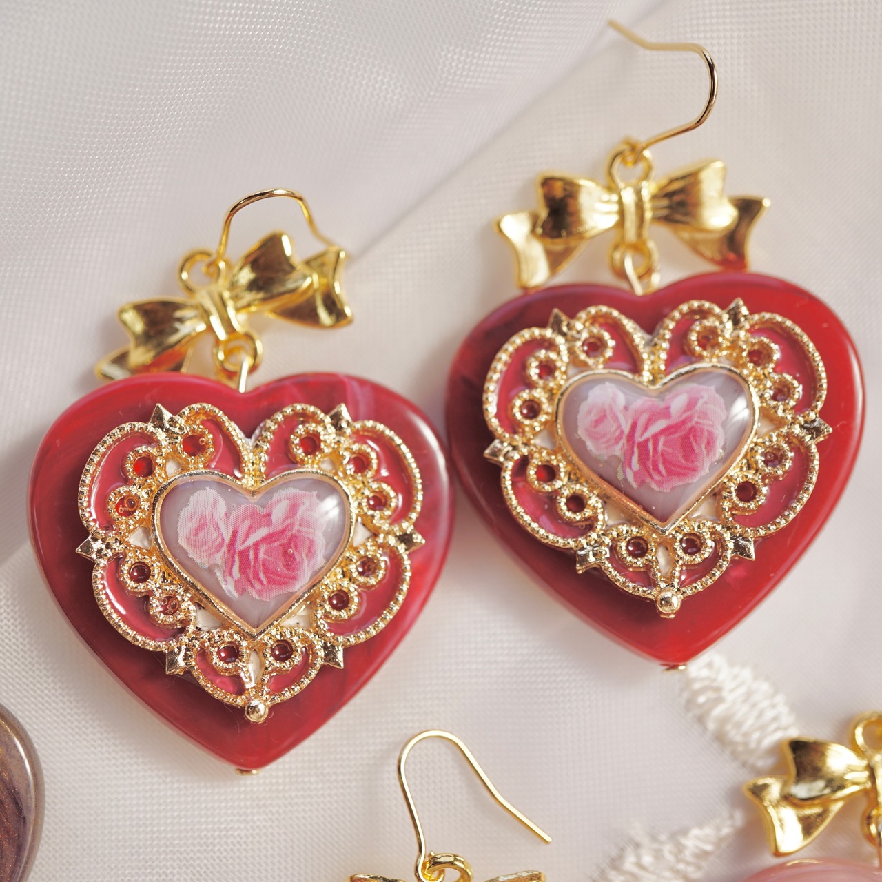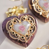 勲章部分にはゴールドのハート型レースパーツに、真ん中に薔薇をあしらいました。薔薇は色ごとに違う種類を選びました。