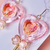 魔法のステッキをテーマに制作したピアス/イヤリングです。ピンクのリボンを合わせてかわいくに仕上げました。杖の下にもハートをひとつぶあしらい、ハートをづくしになっています!