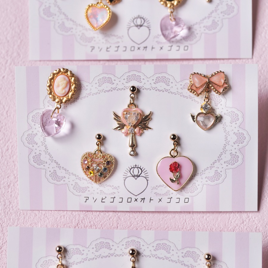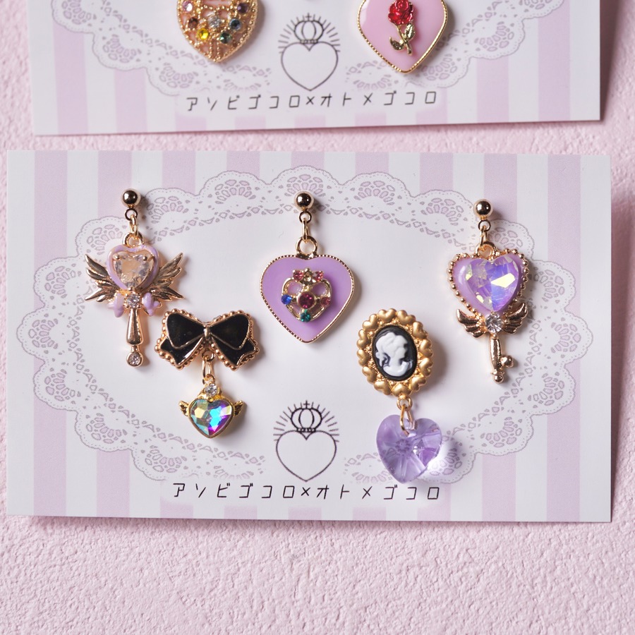魔法少女をテーマにしたミニピアスの5点セットです