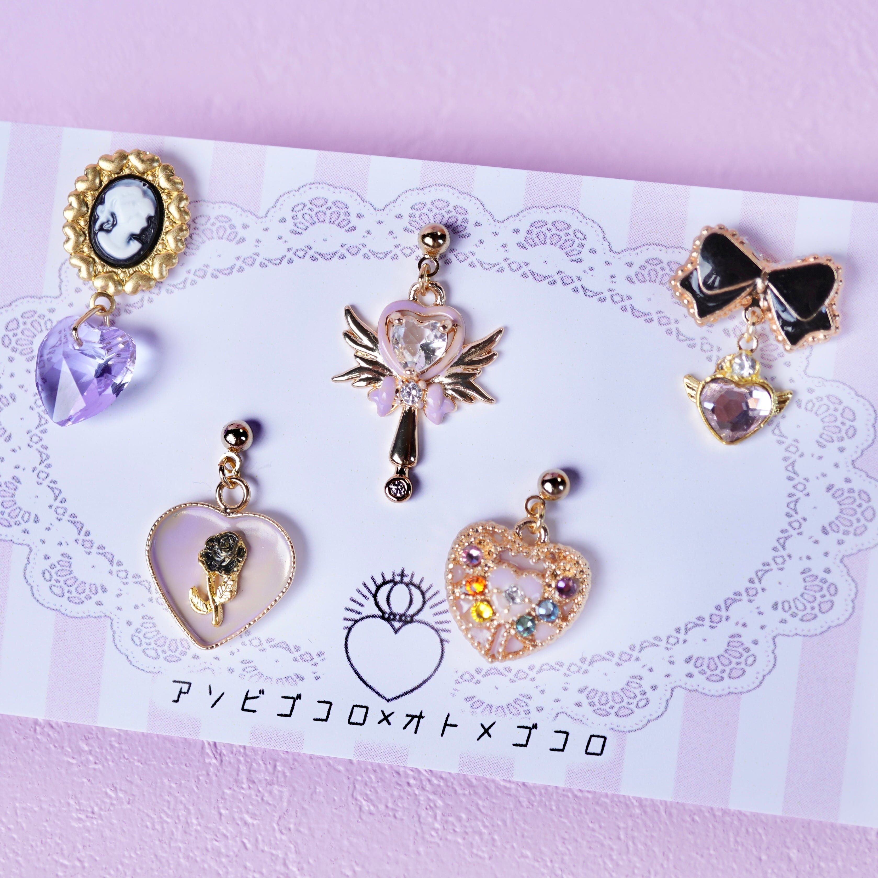 魔法少女をテーマにしたミニピアス/イヤリングの5点セットです。