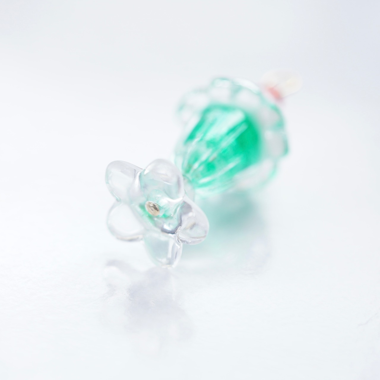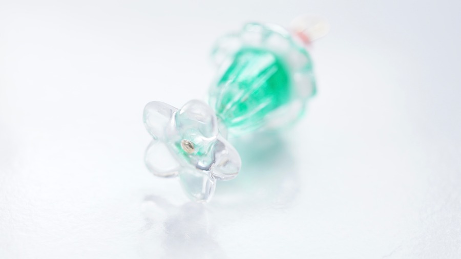 涼しげなガラスの器をイメージした、お花型のビーズを使用しました。
