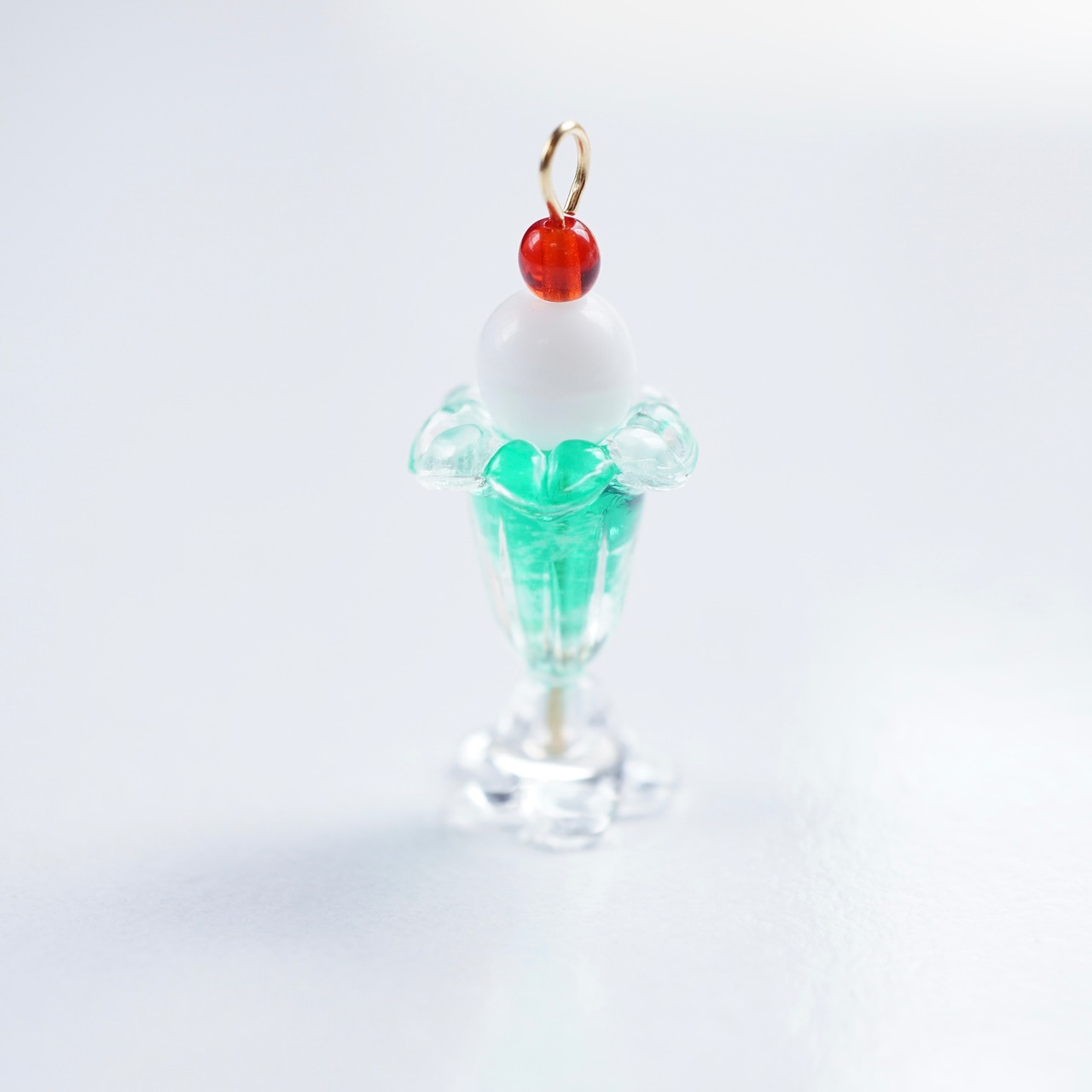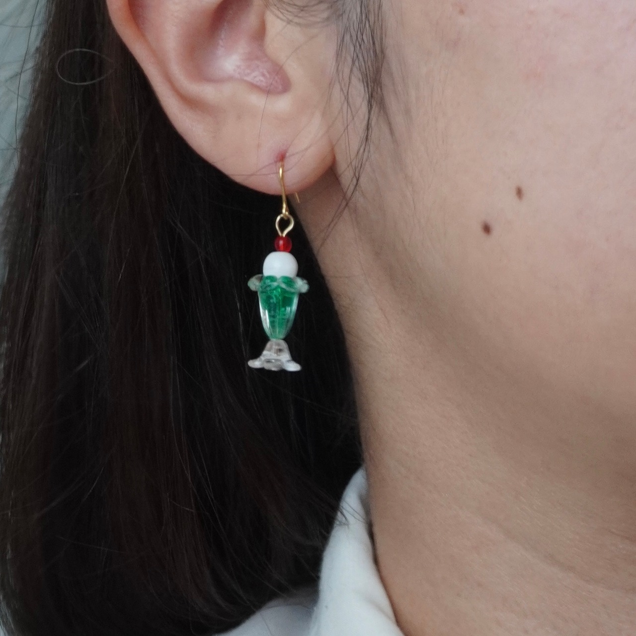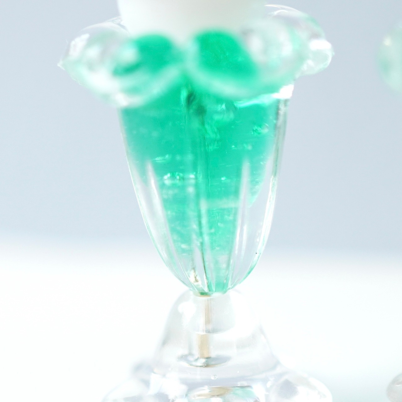 ミニチュアサイズのクリームソーダを耳元に再現したピアス/イヤリングです。