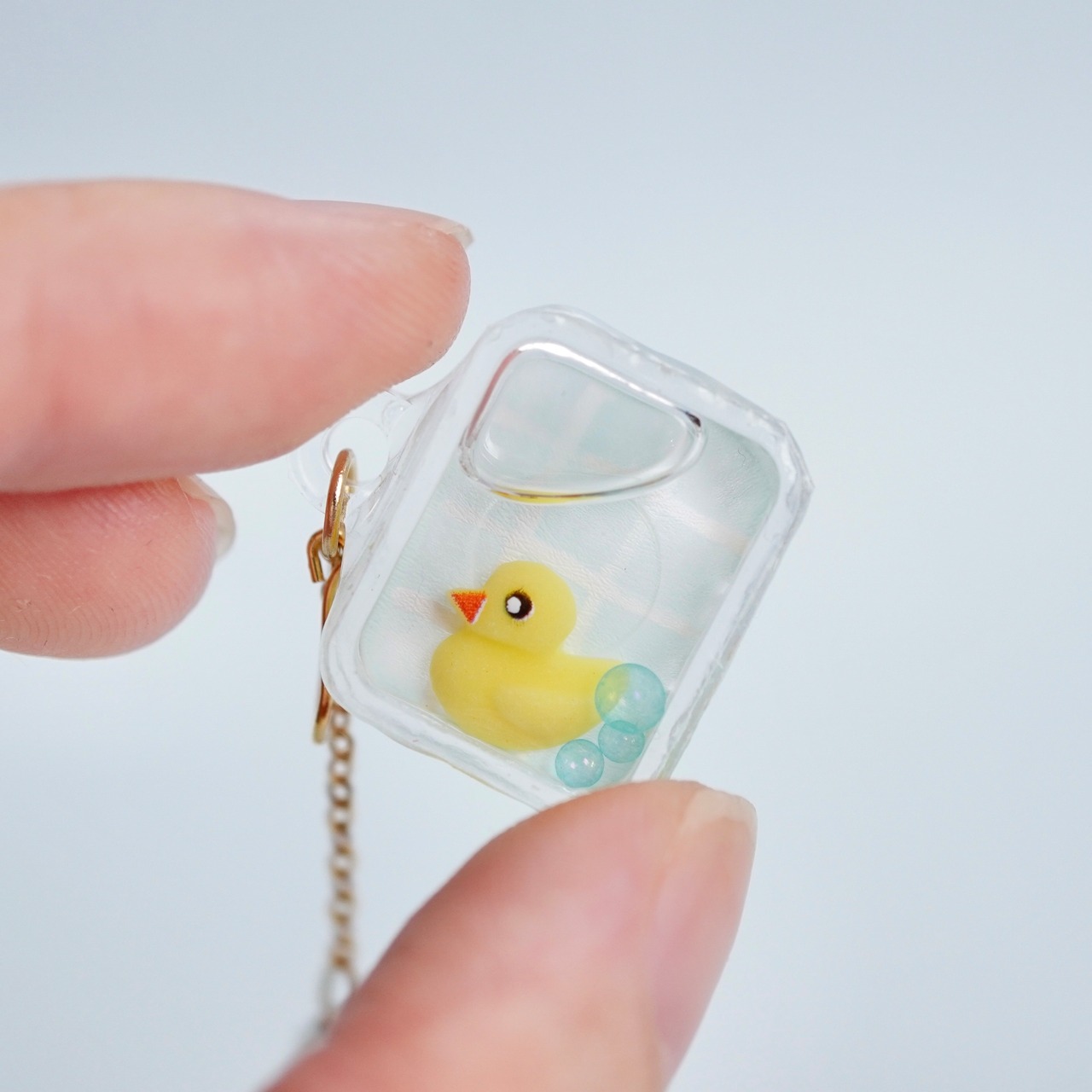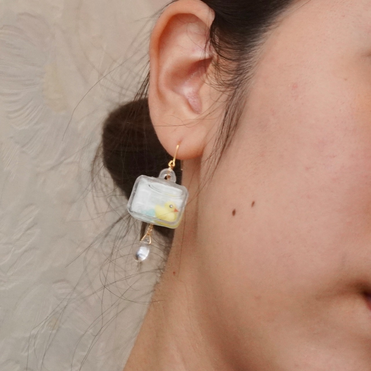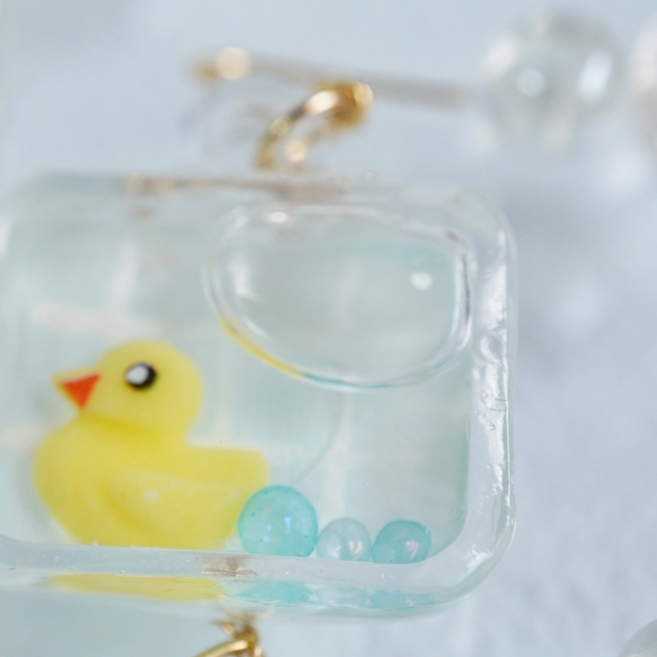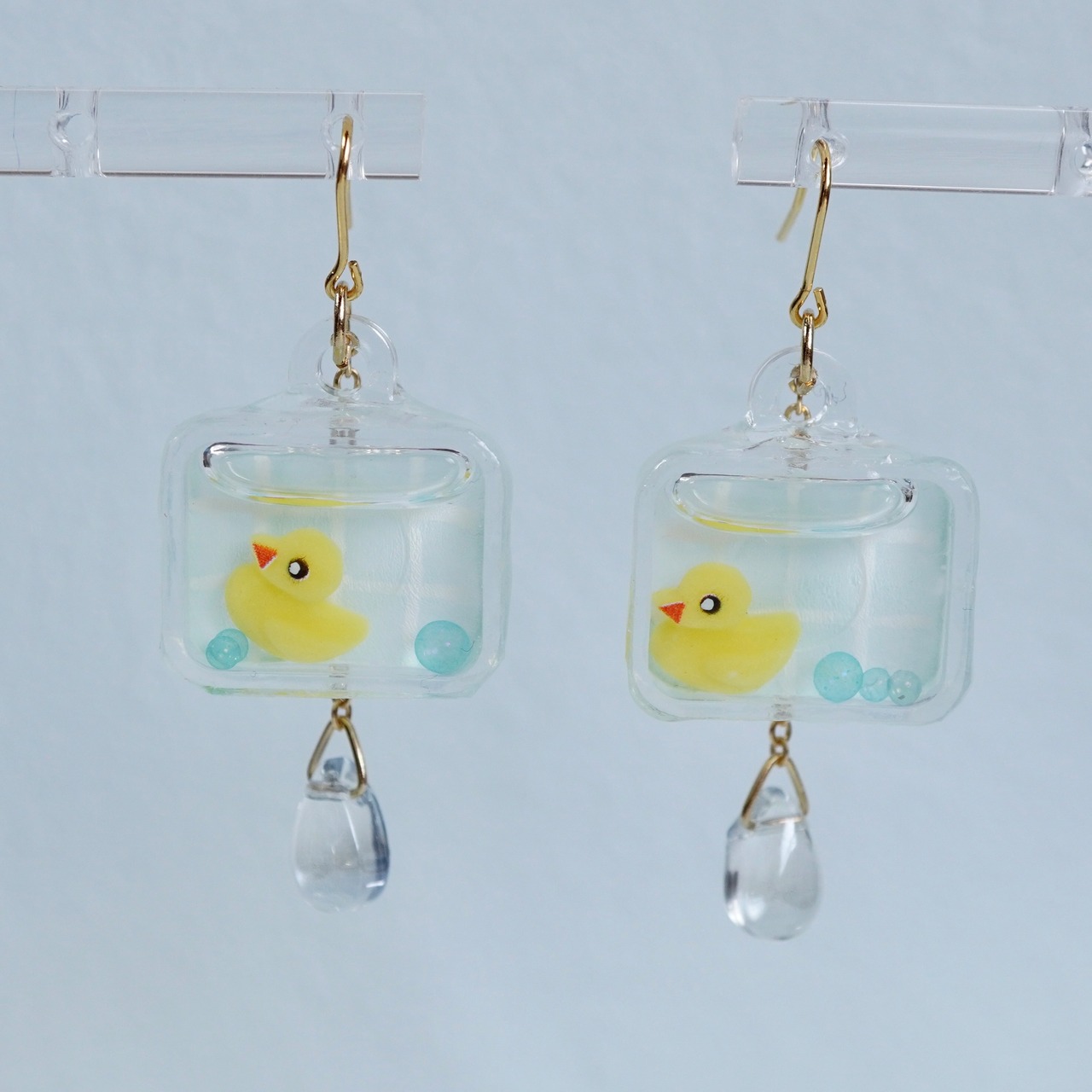 プールでぷかぷか泳ぐアヒルを、ミニチュアのピアス/イヤリングにしました!