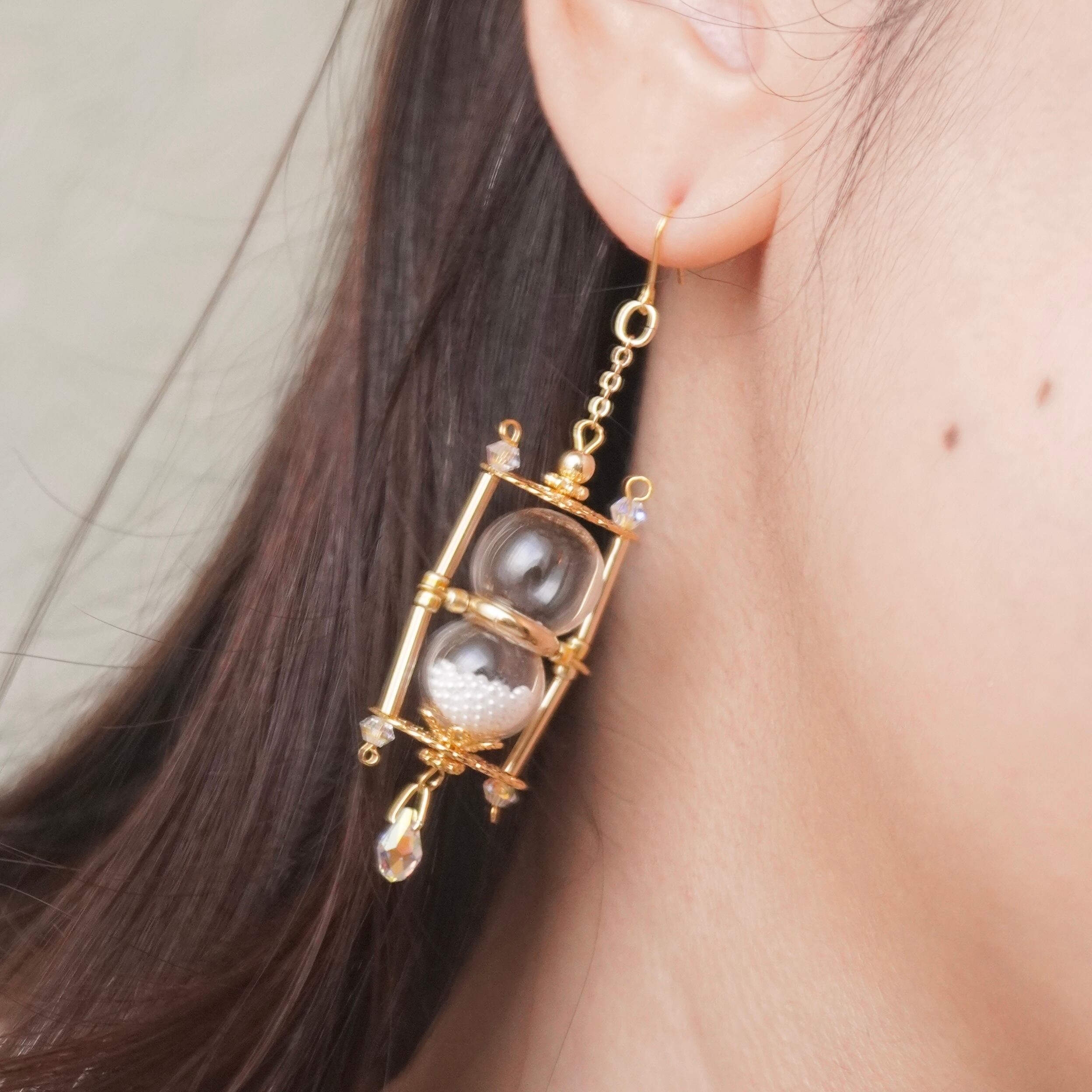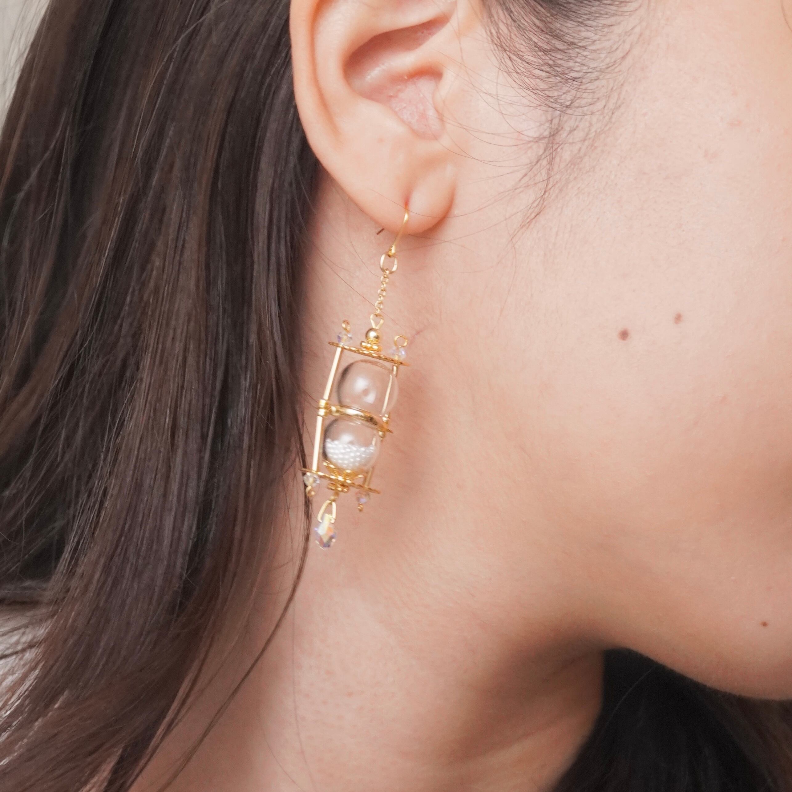 耳元でキラキラ揺れる砂時計がかわいいです♡