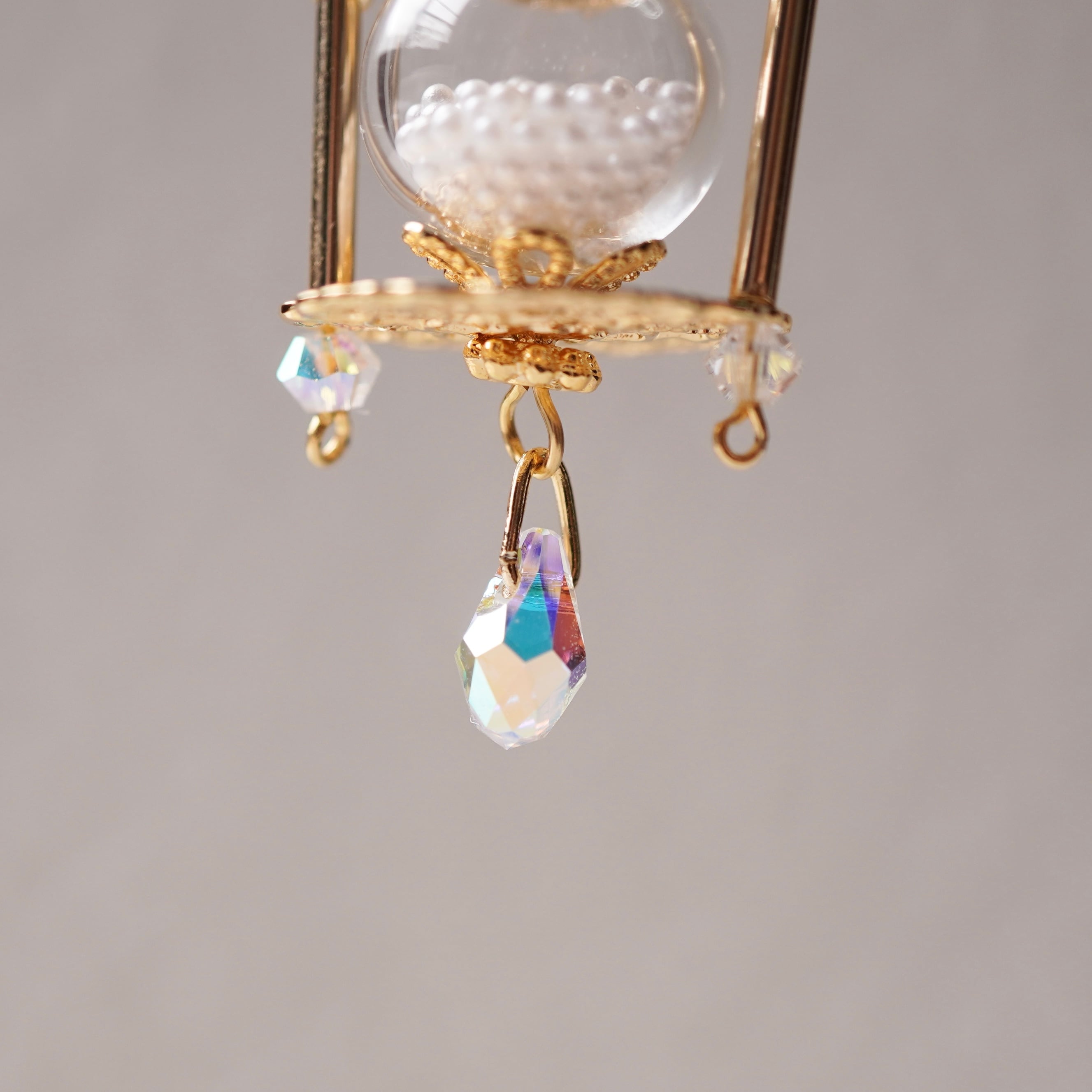 ガラスの砂時計の中には小さなパールを入れました。