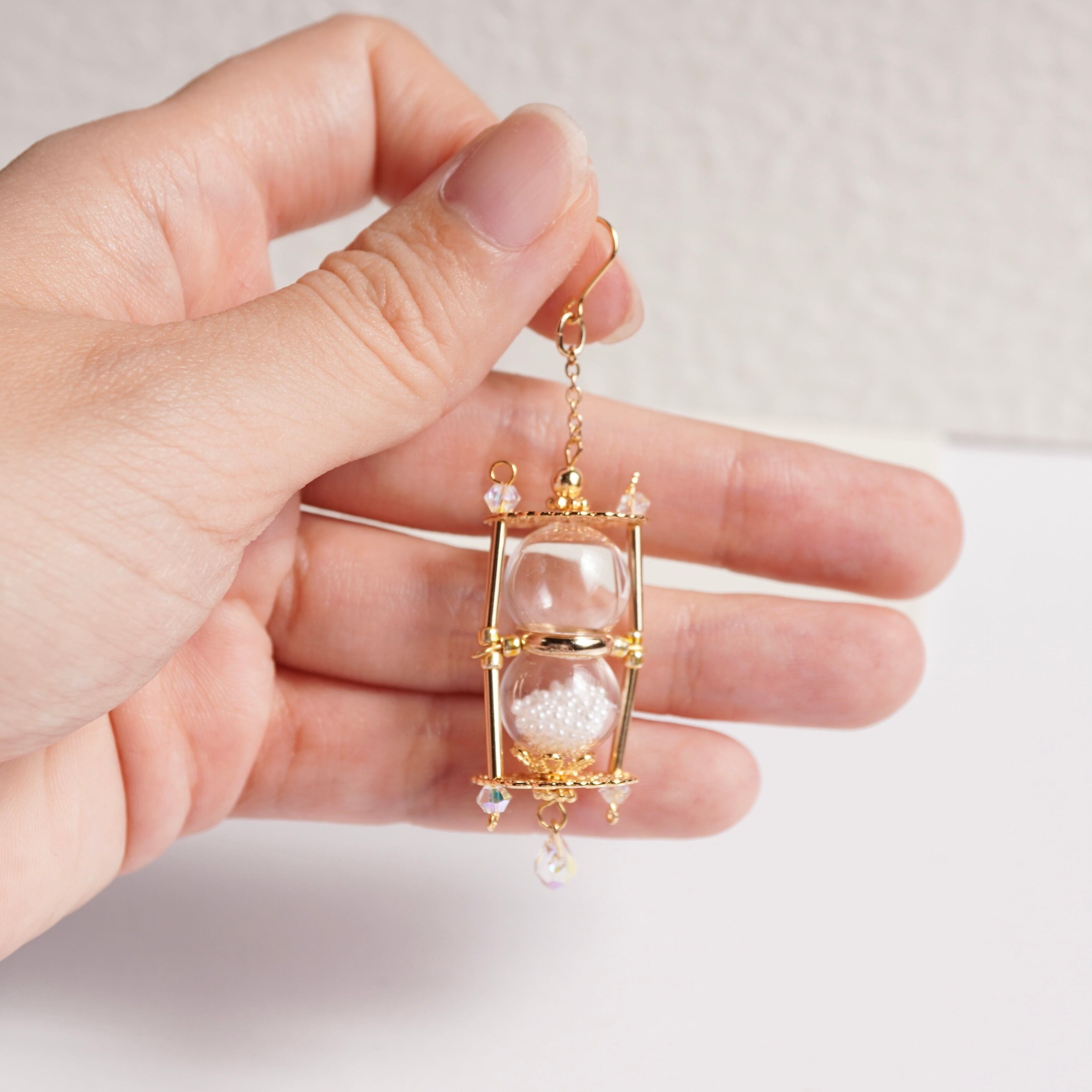 ミニチュアの砂時計をピアス/イヤリングにしました!