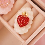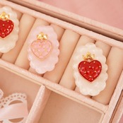 ハートにいちごをイメージしたつぶつぶと葉っぱを合わせて仕上げました。キルティング模様の陰影が生み出すぷるつや感でジューシーに仕上がりました!