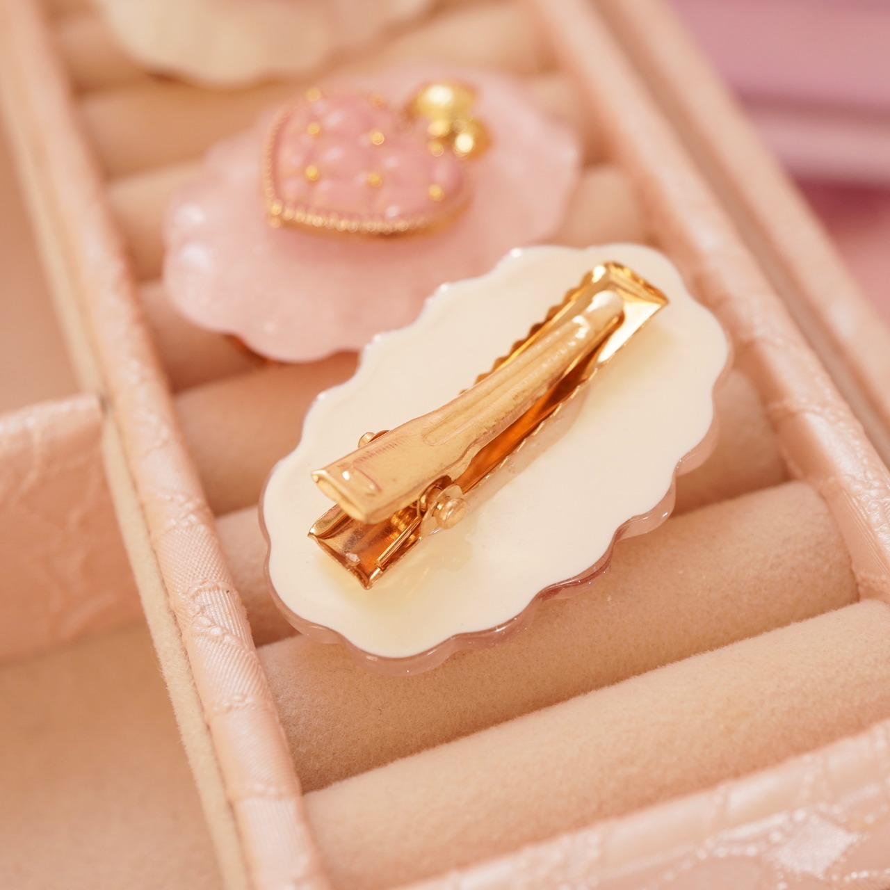 いちごとキラキラベースを組み合わせたヘアクリップです!