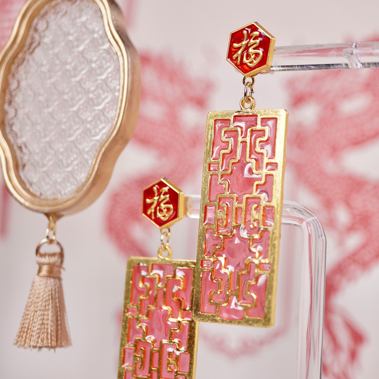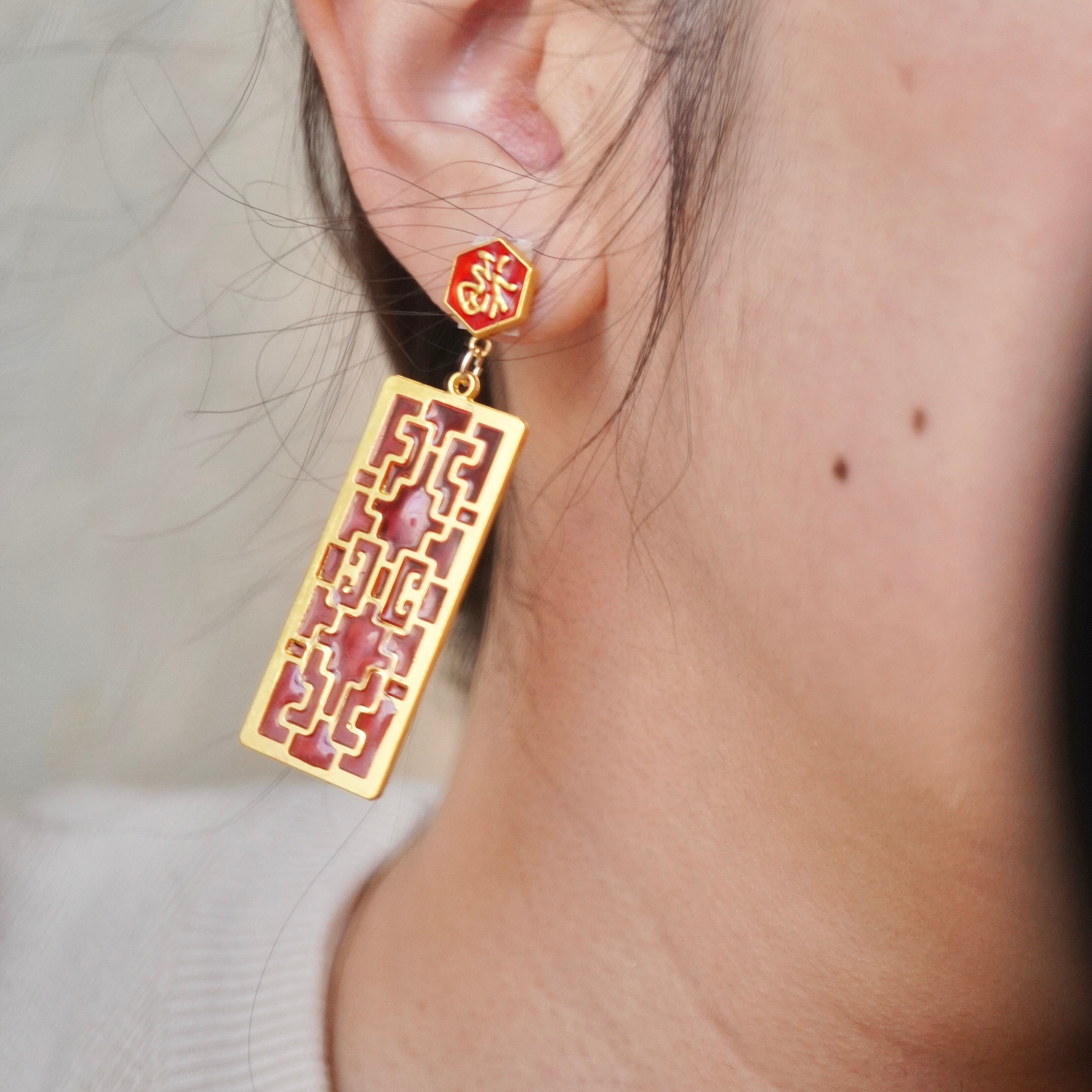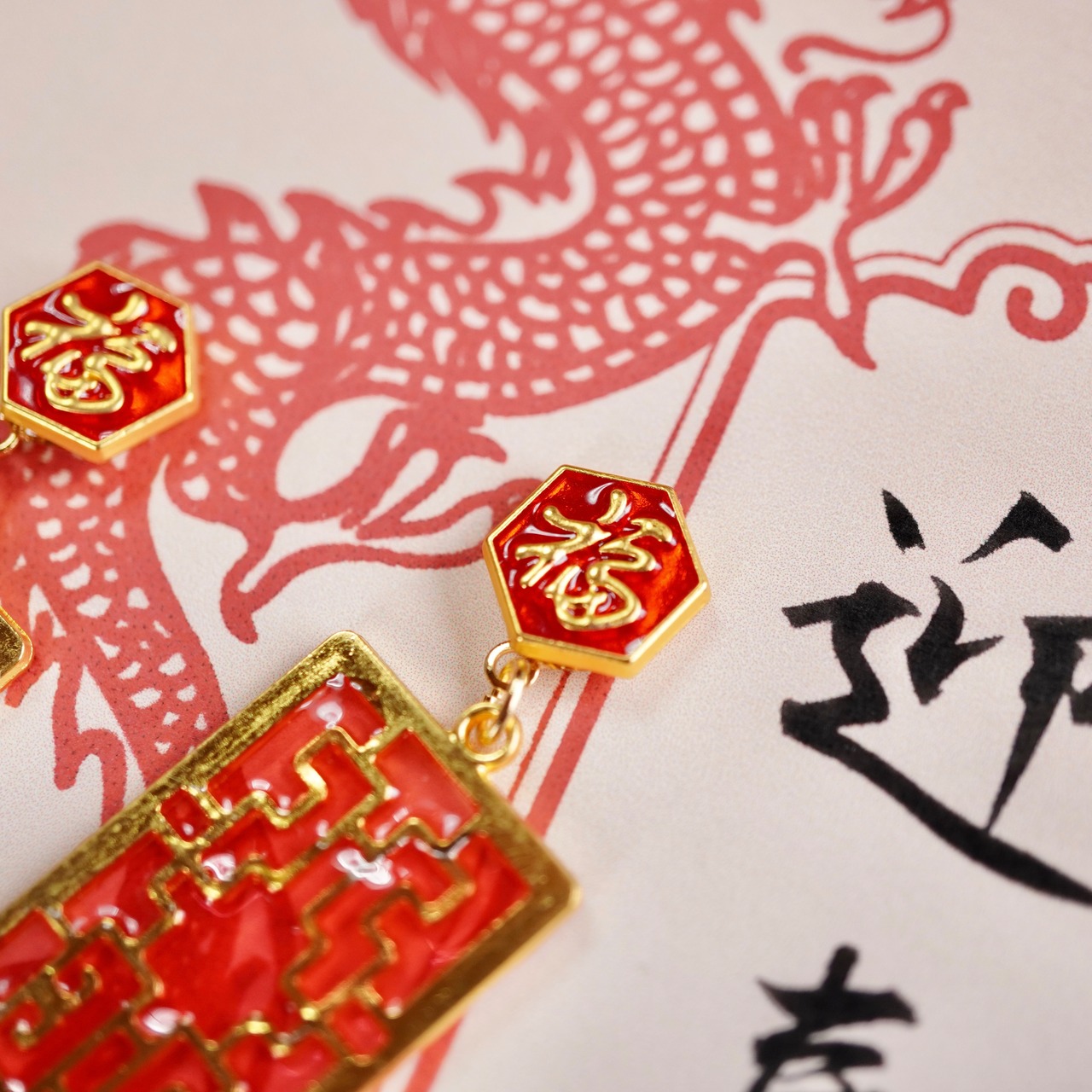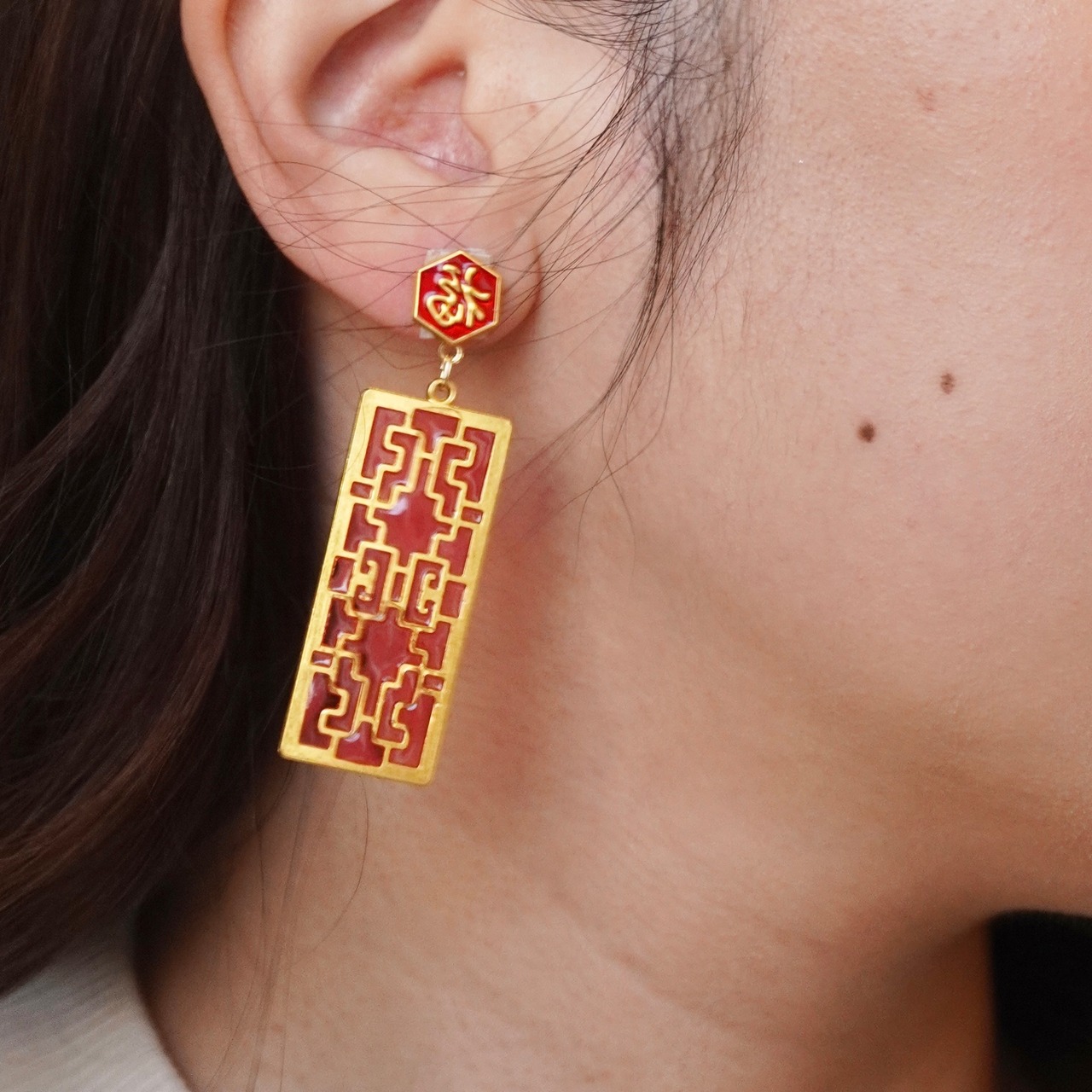 ゴールドと赤の組み合わせが耳元でも存在感抜群です。