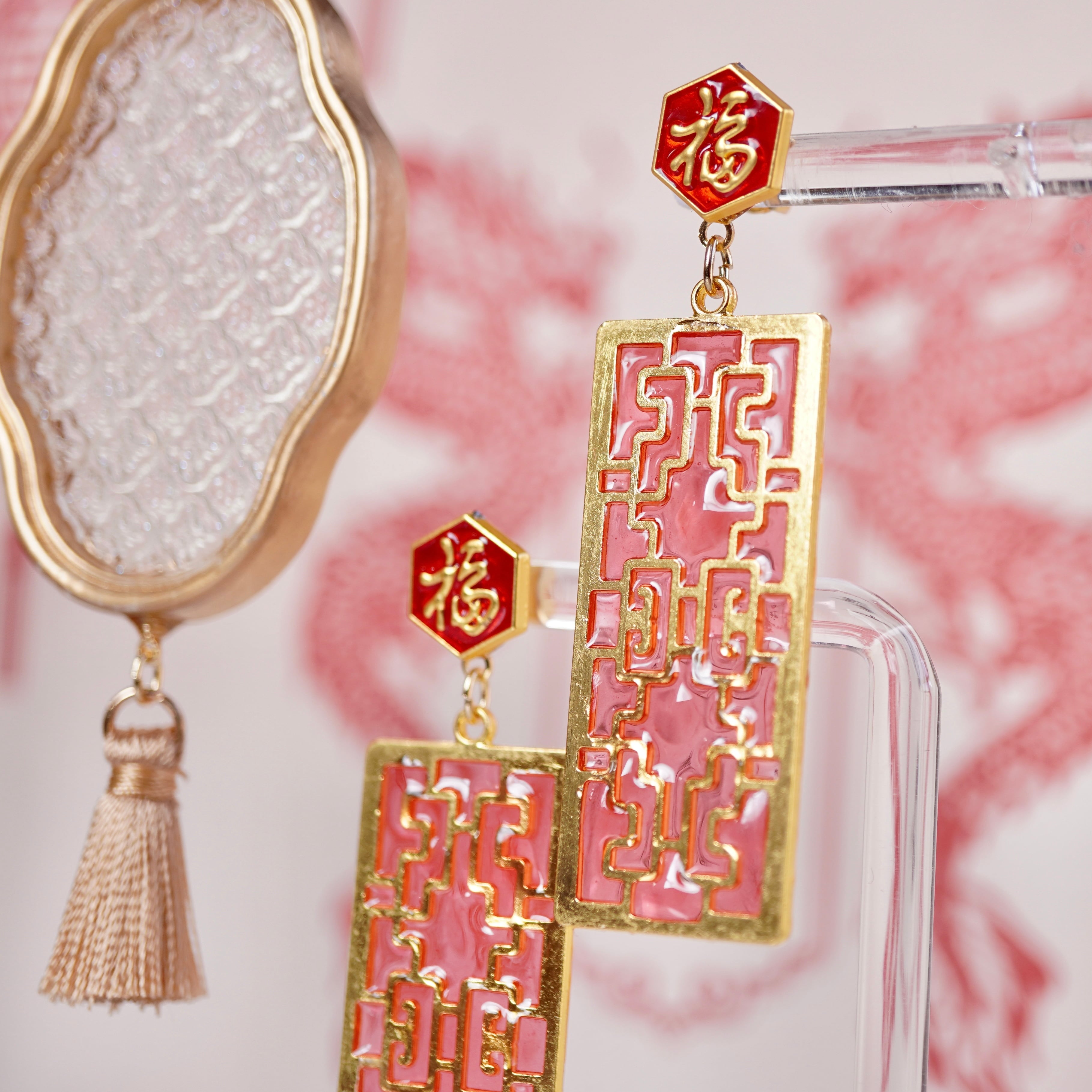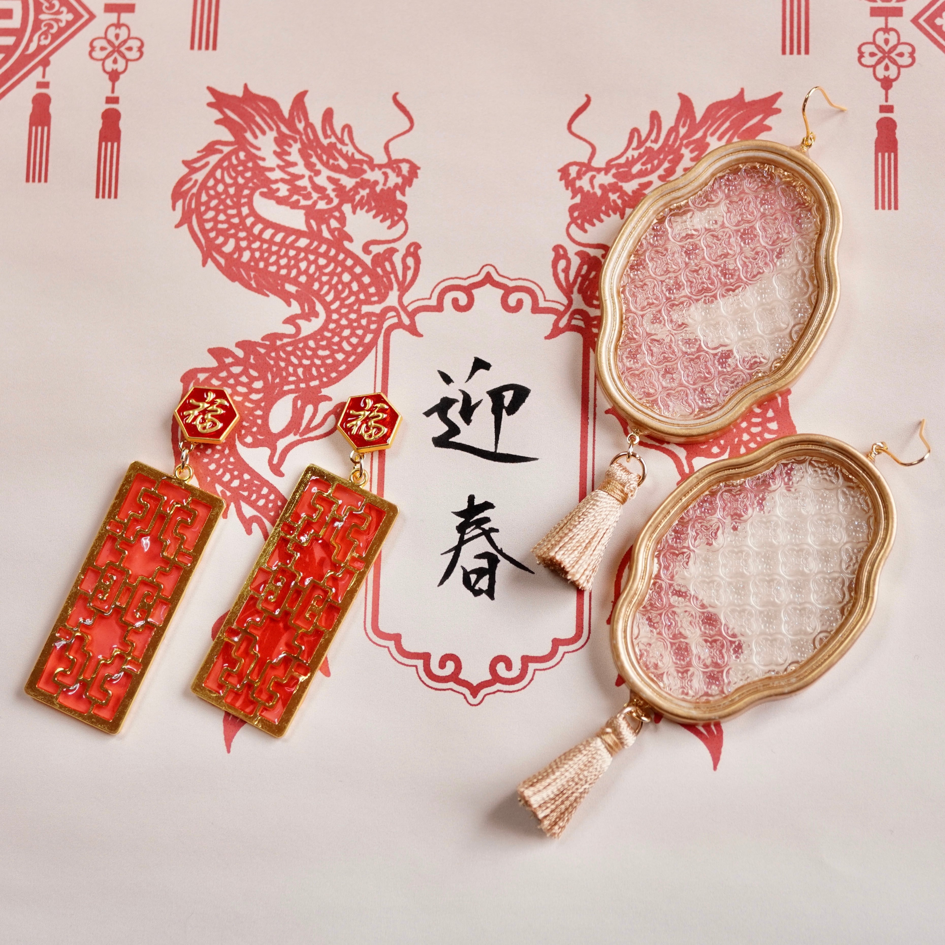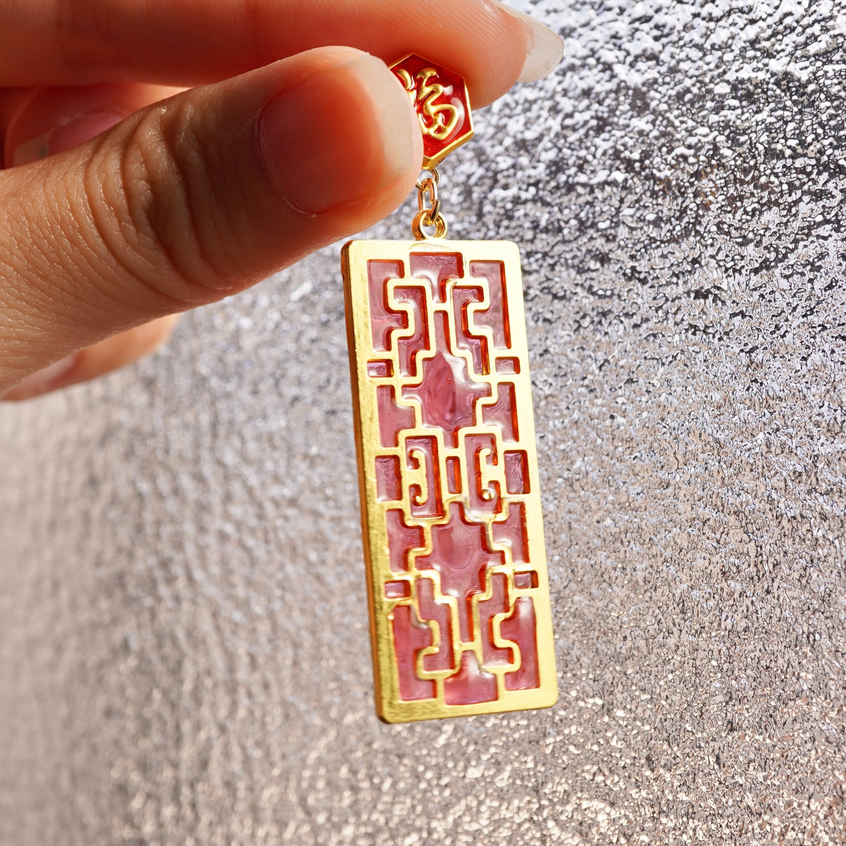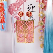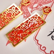 格子窓にチャイナイメージの赤を合わせて仕上げました。ゴールドの枠がキラキラ光って綺麗です!