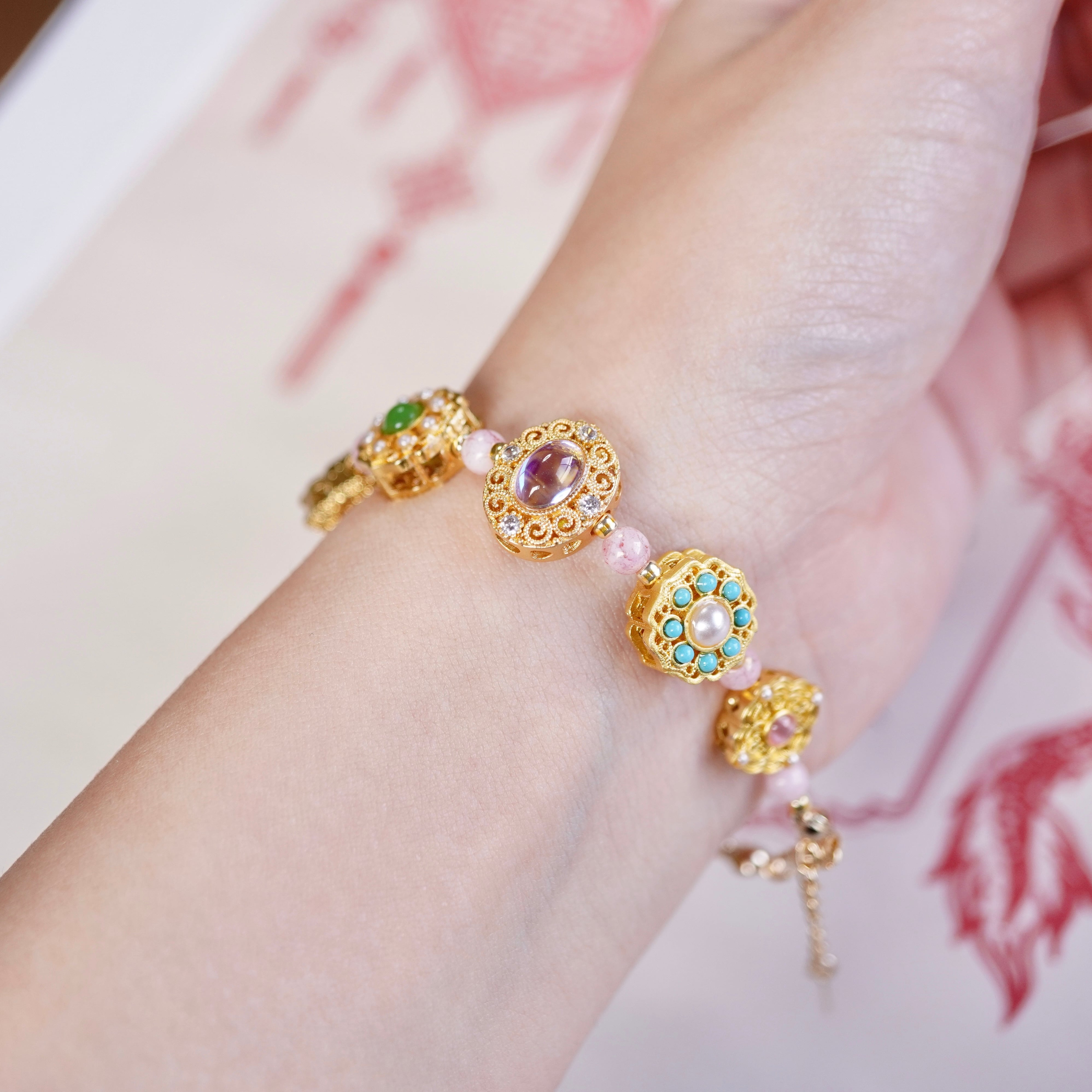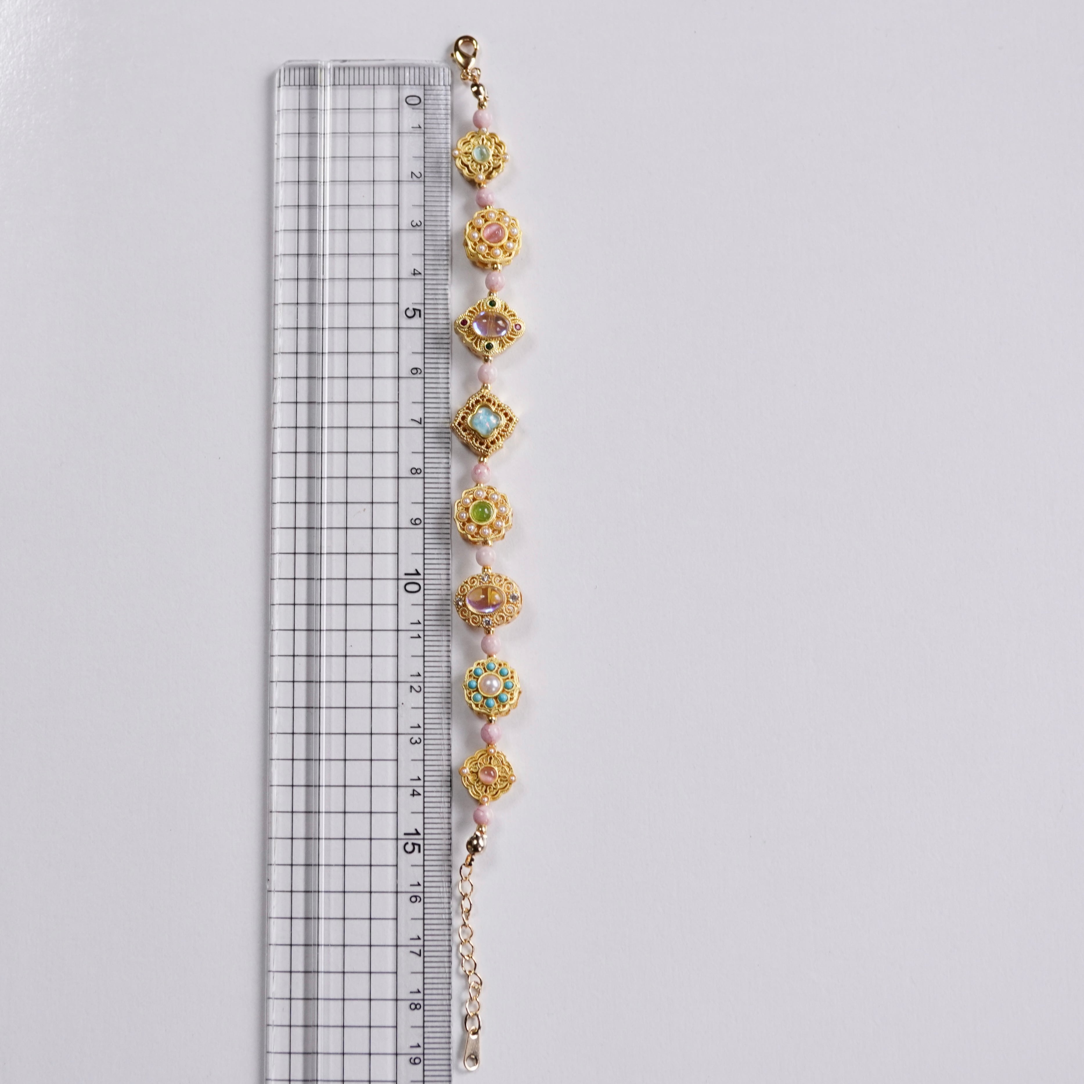 チャイナをテーマに、キラキラの宝珠をたくさん使って制作したブレスレットです。