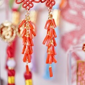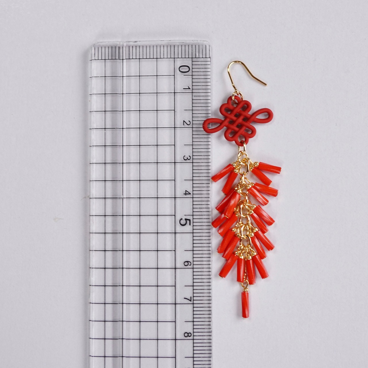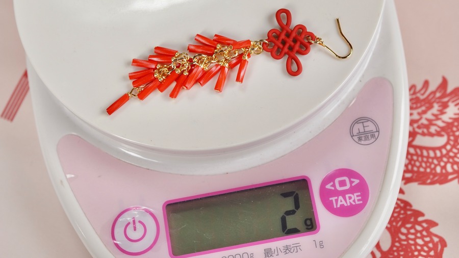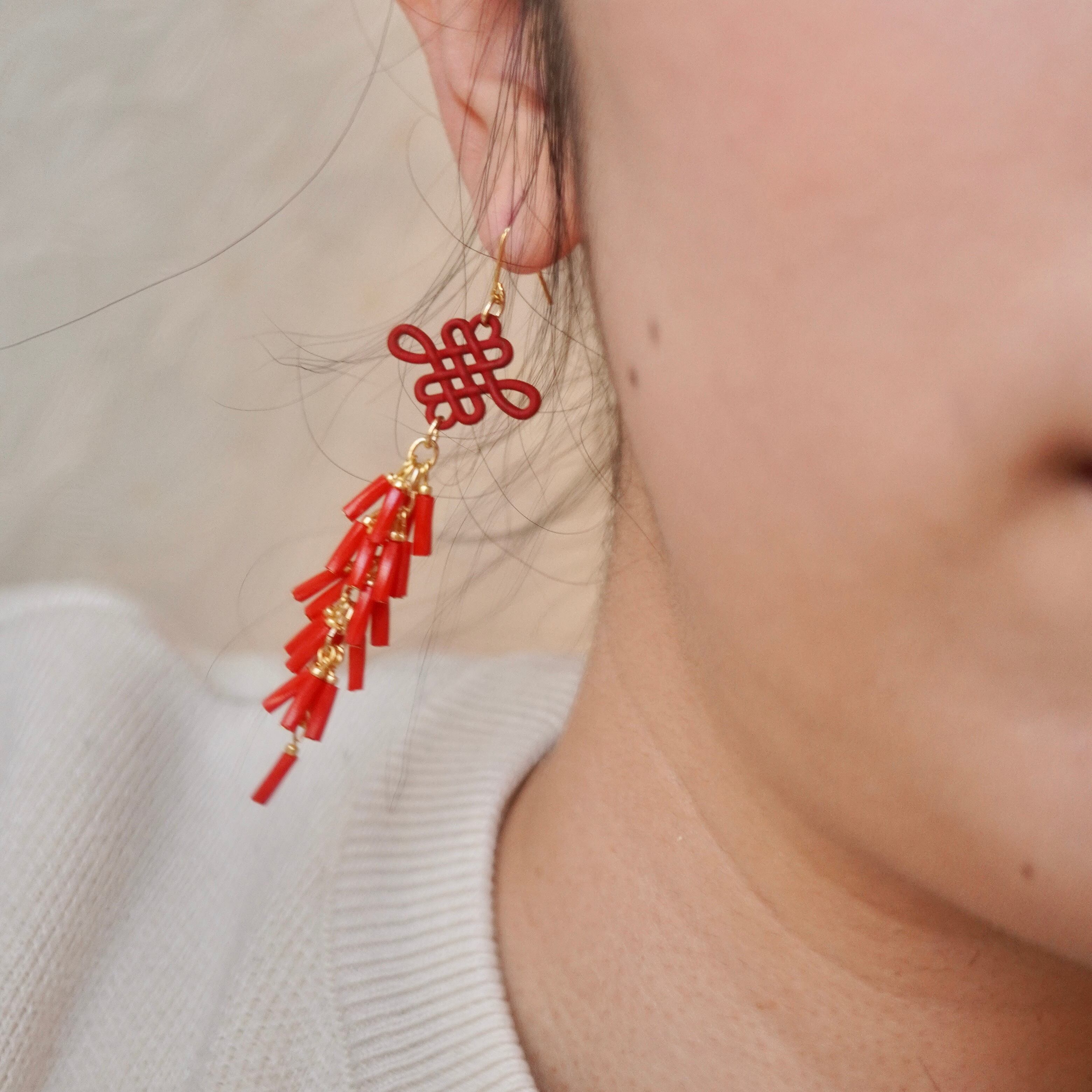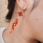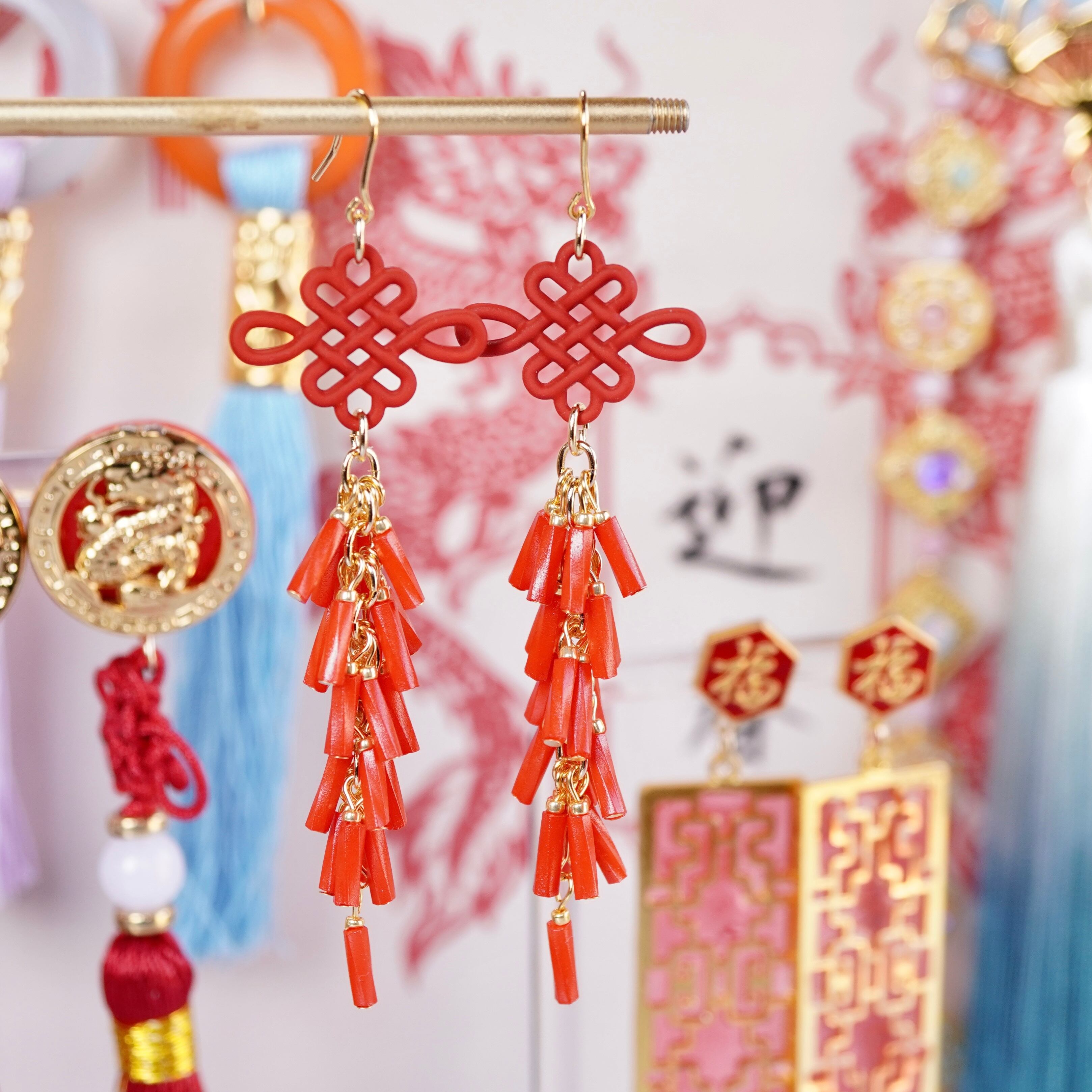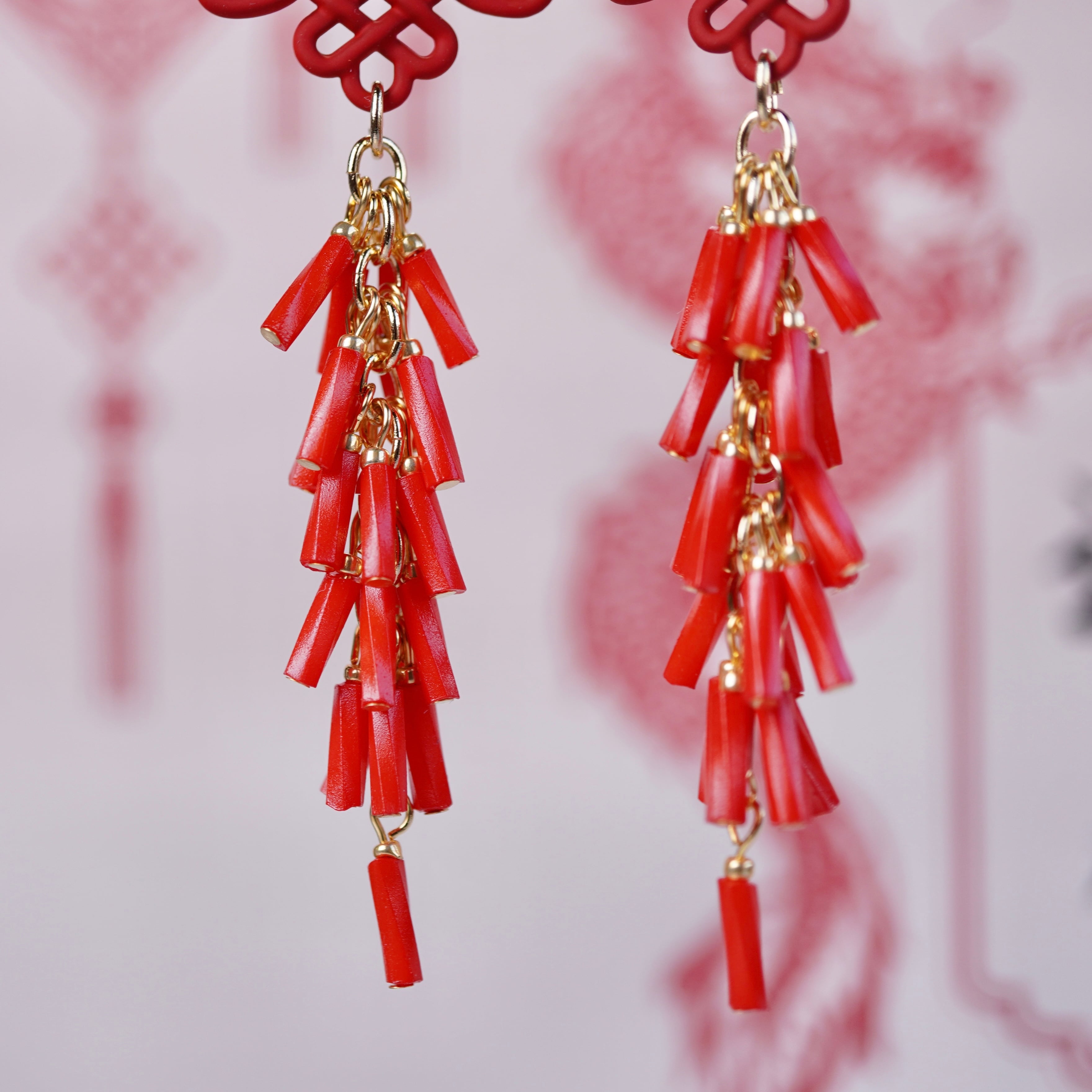 チャイナ×かわいいをテーマに制作したピアス/イヤリングです。こちらは爆竹をモチーフに制作いたしました。