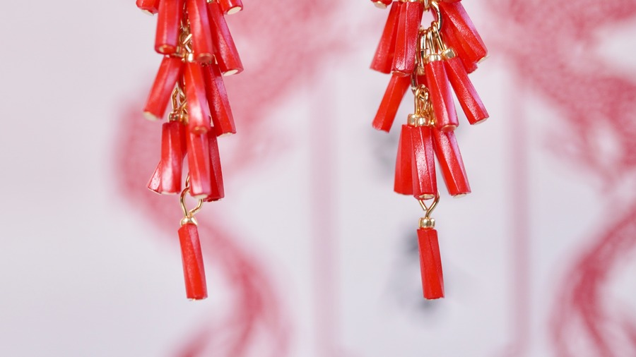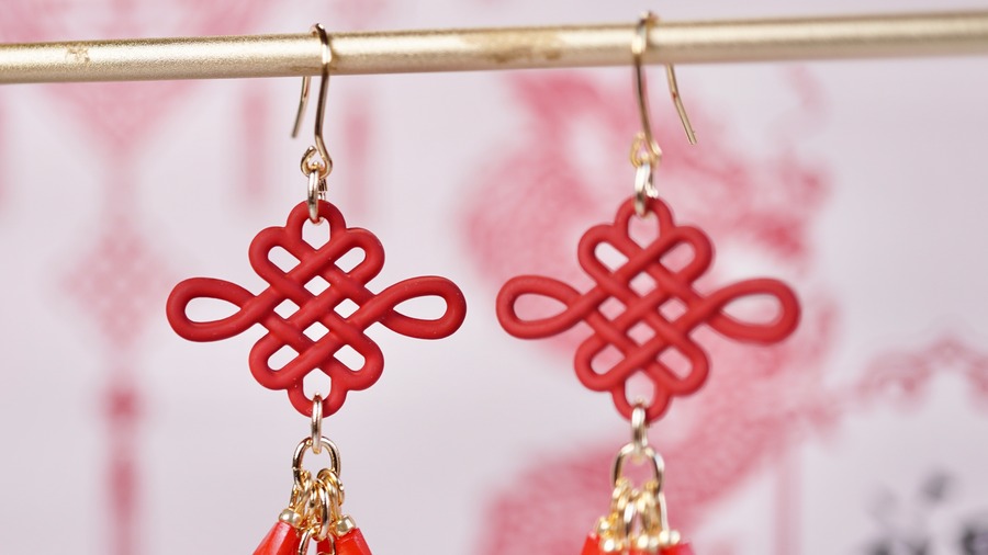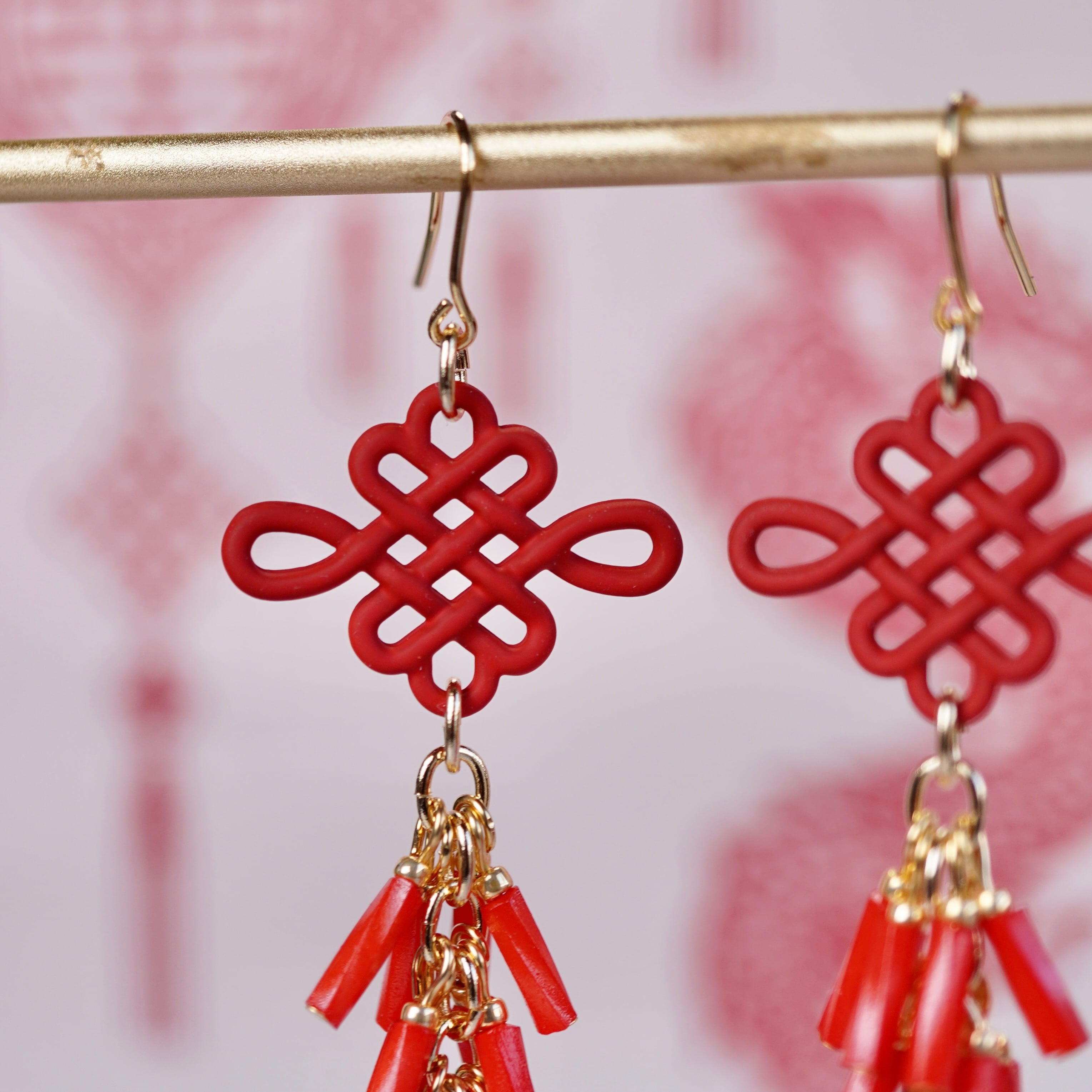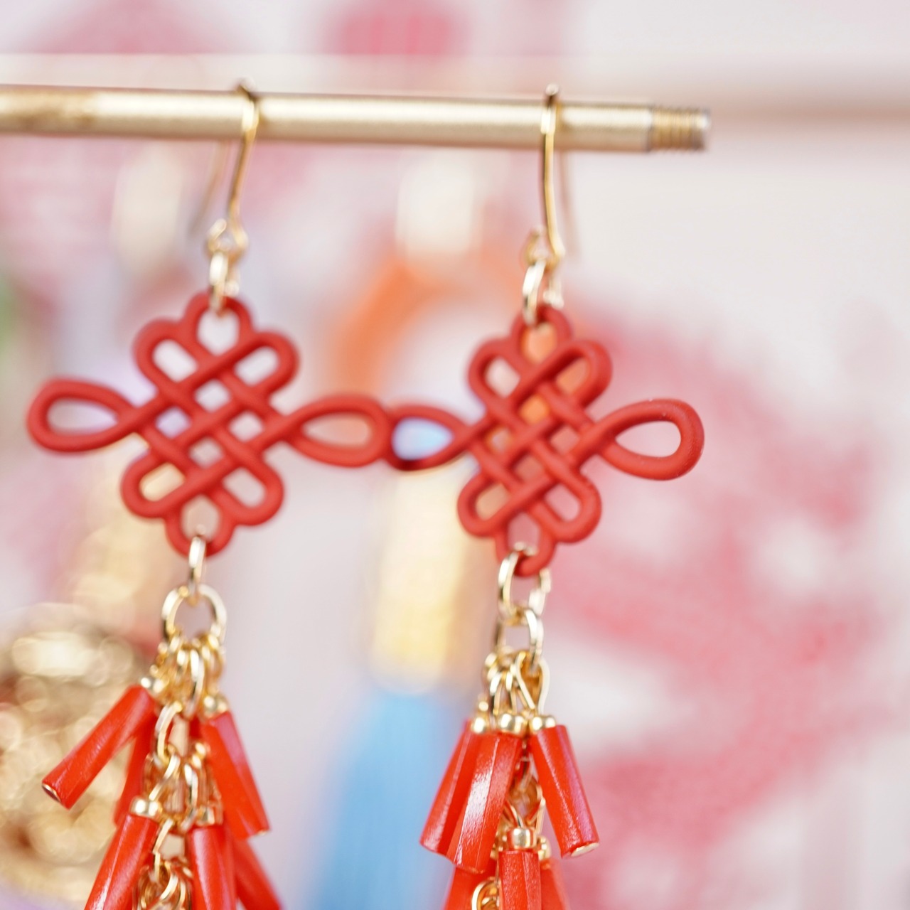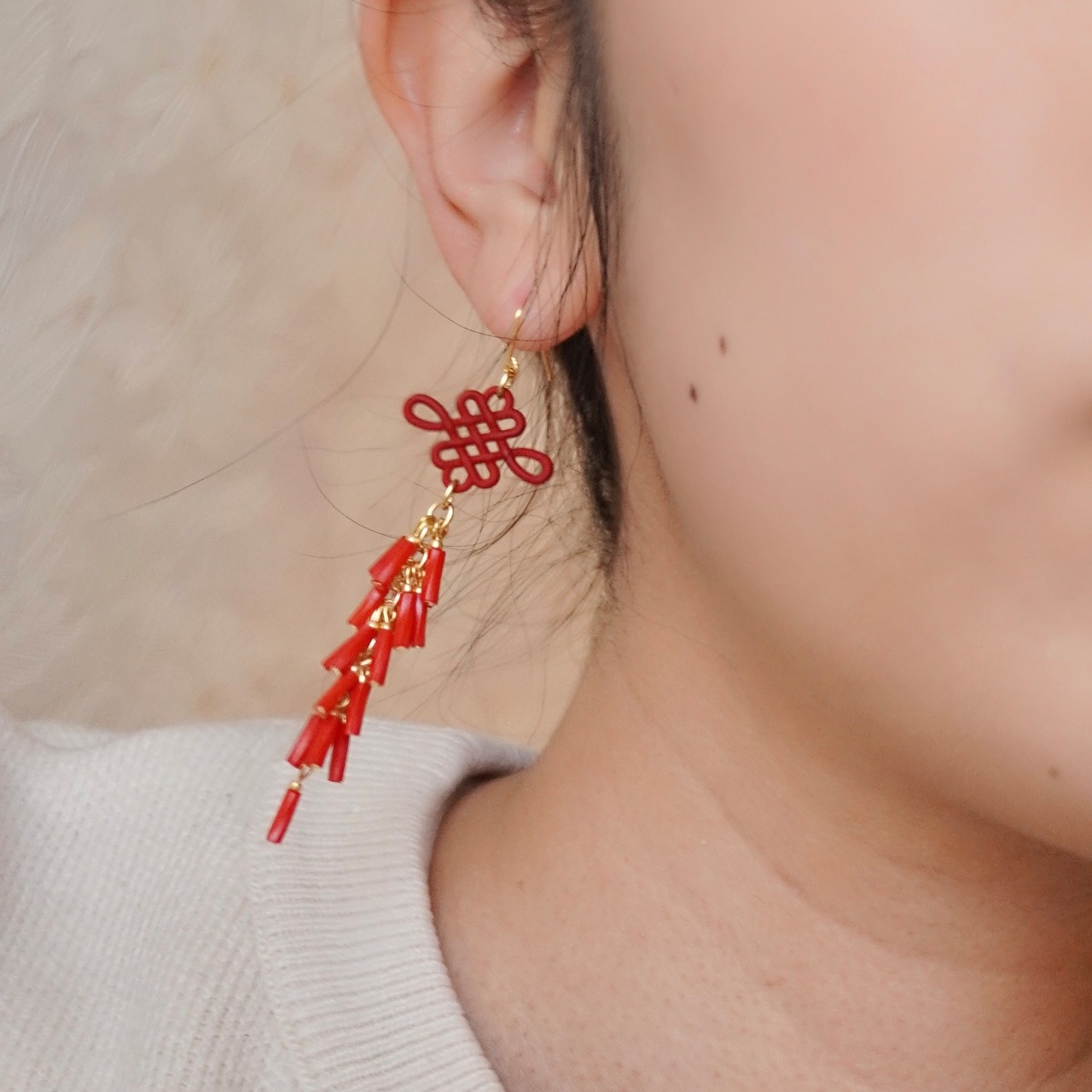 チャイナ×かわいいをテーマに制作したピアス/イヤリングです。