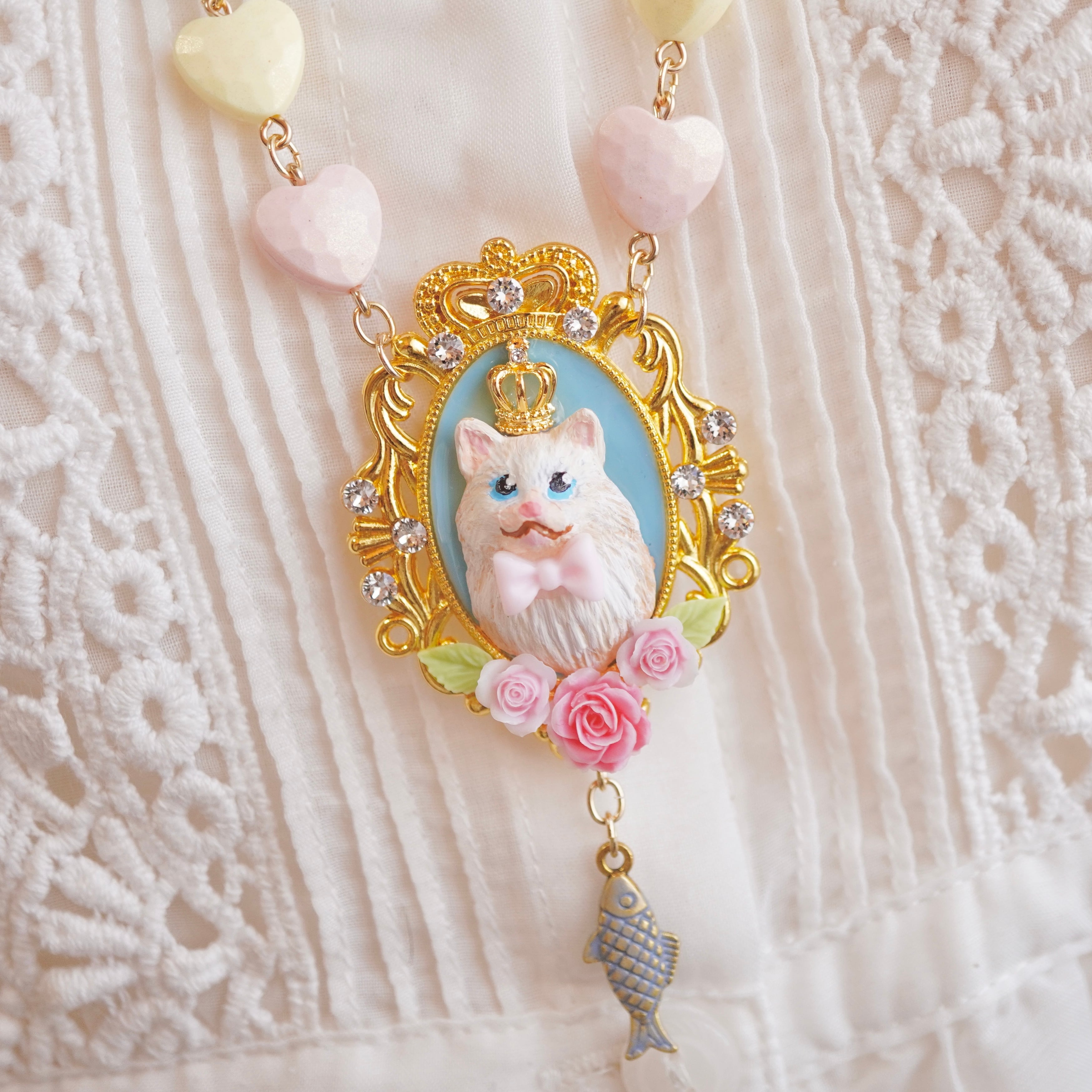 王様猫の肖像画のネックレスです