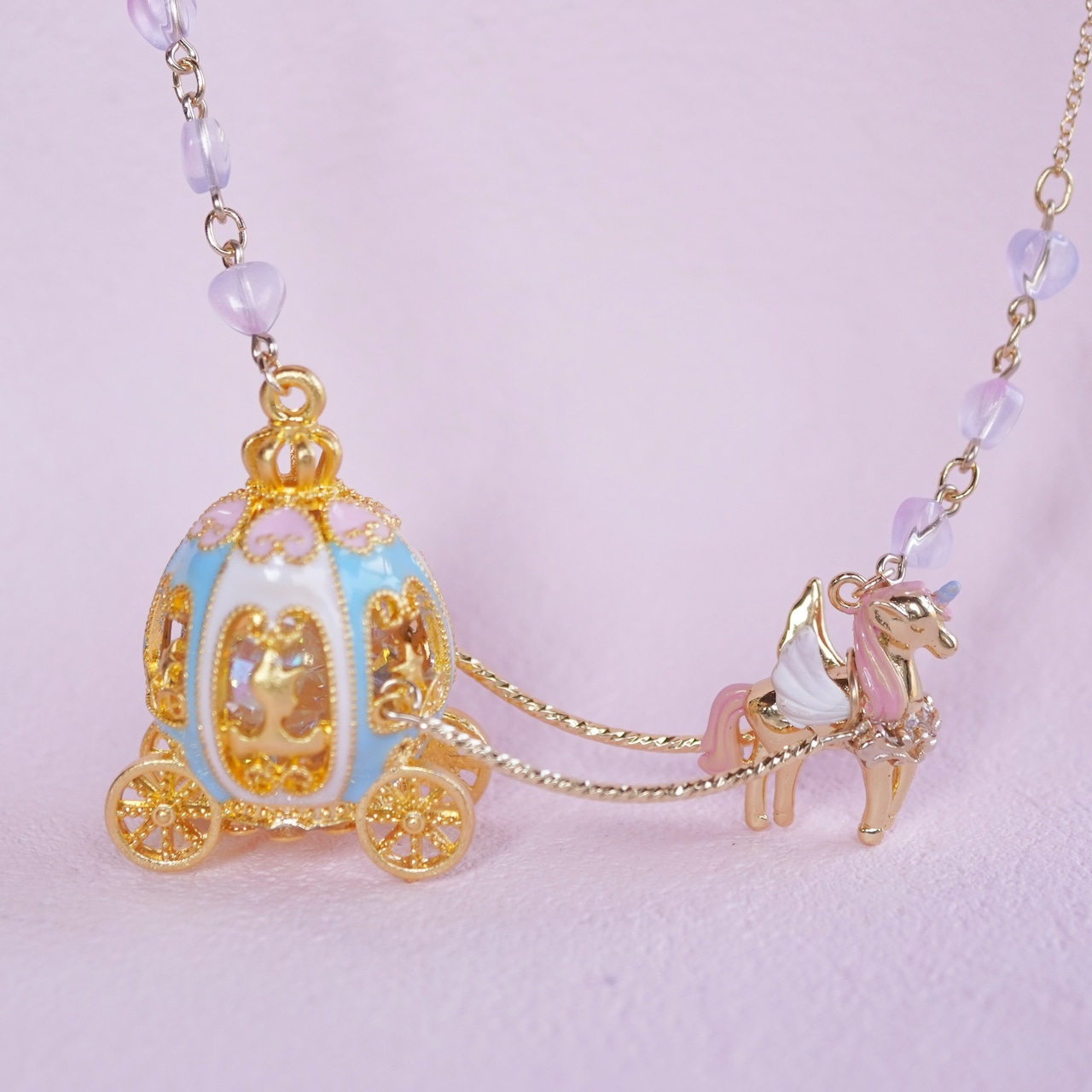 小さいころ好きだった絵本のような色合いを再現したかぼちゃの馬車のネックレスです