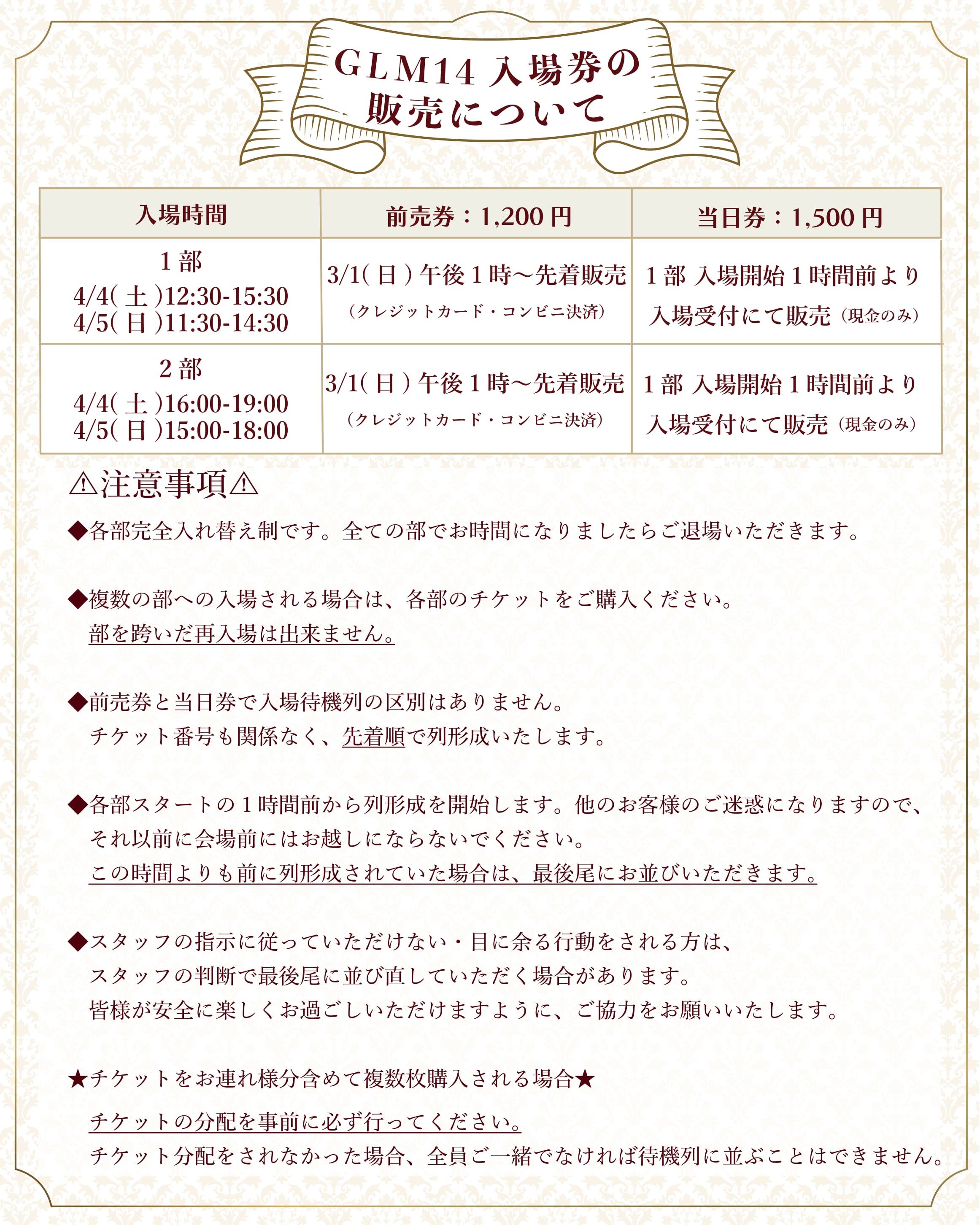 前売りチケットは3/1(日)(土)より先着順で販売。